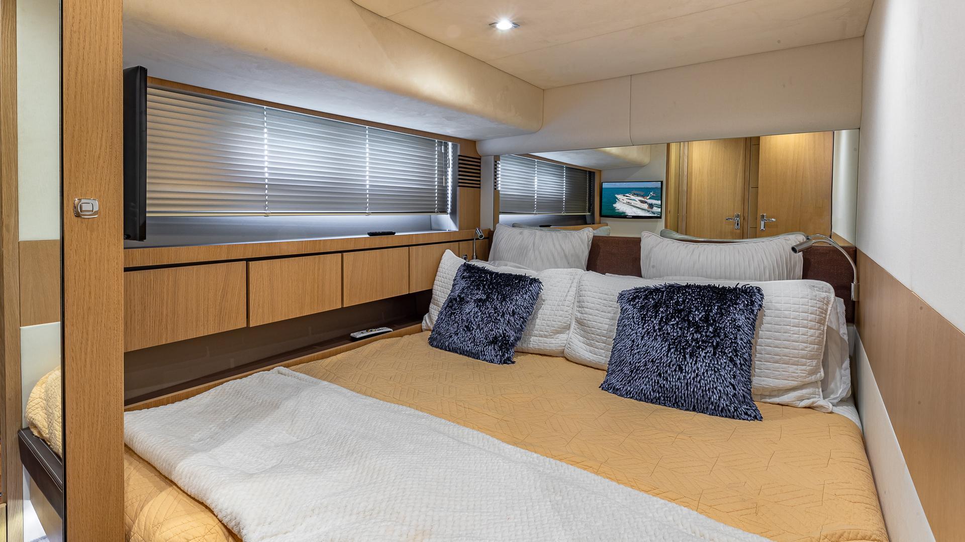 - Large hatch with flyscreen and concealed blinds to foredeck