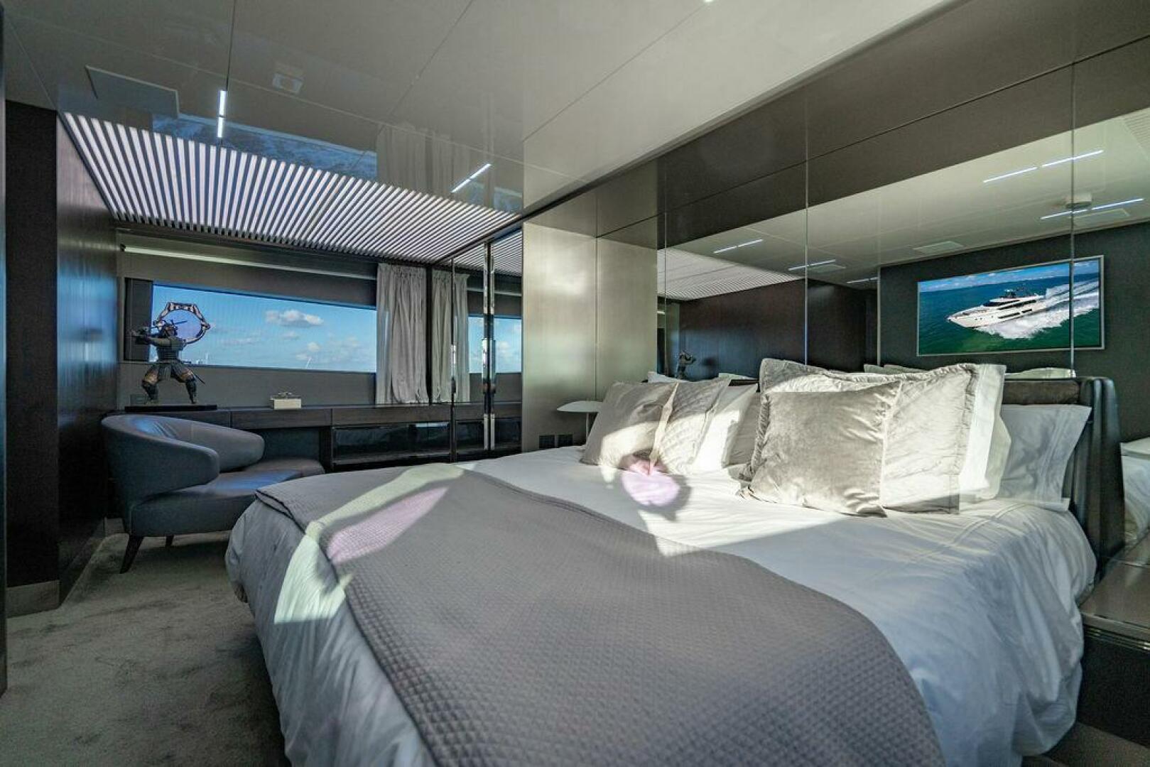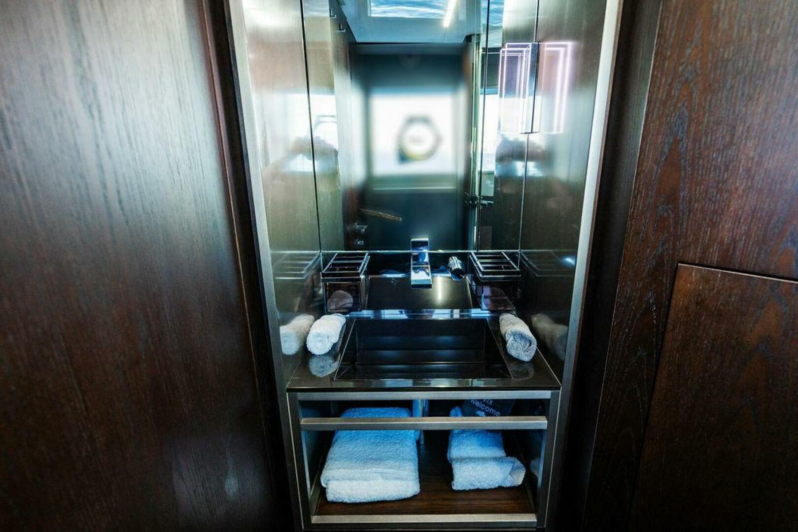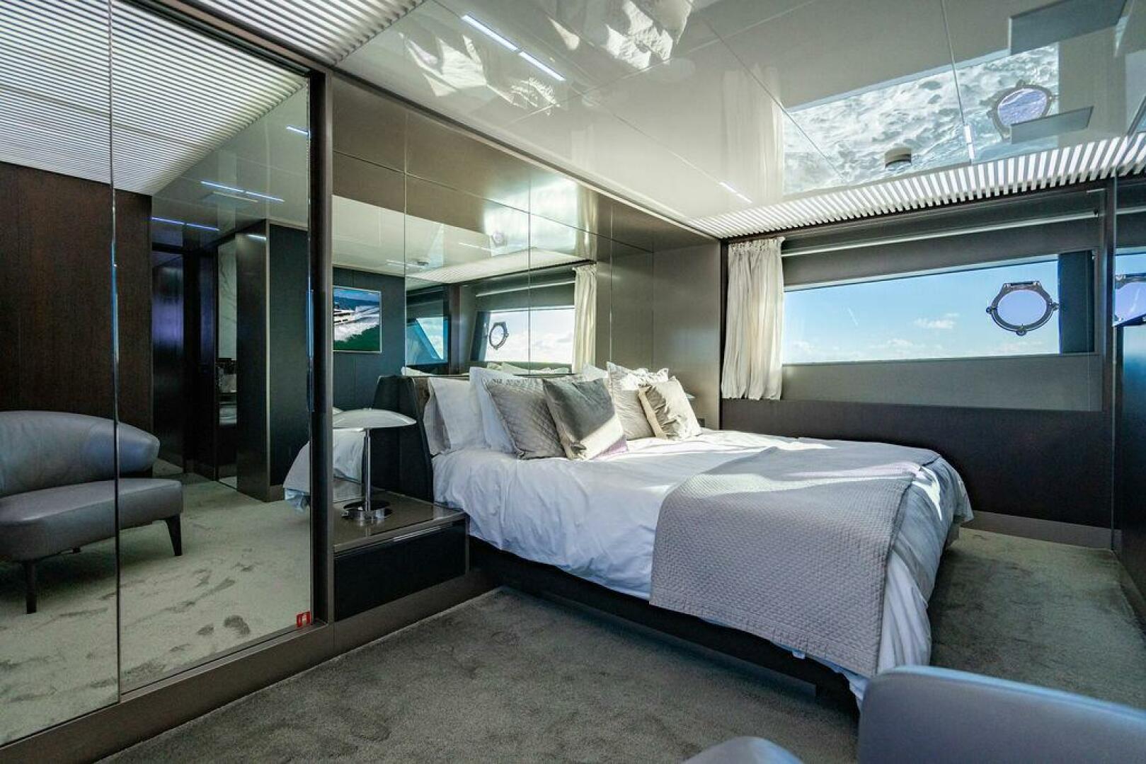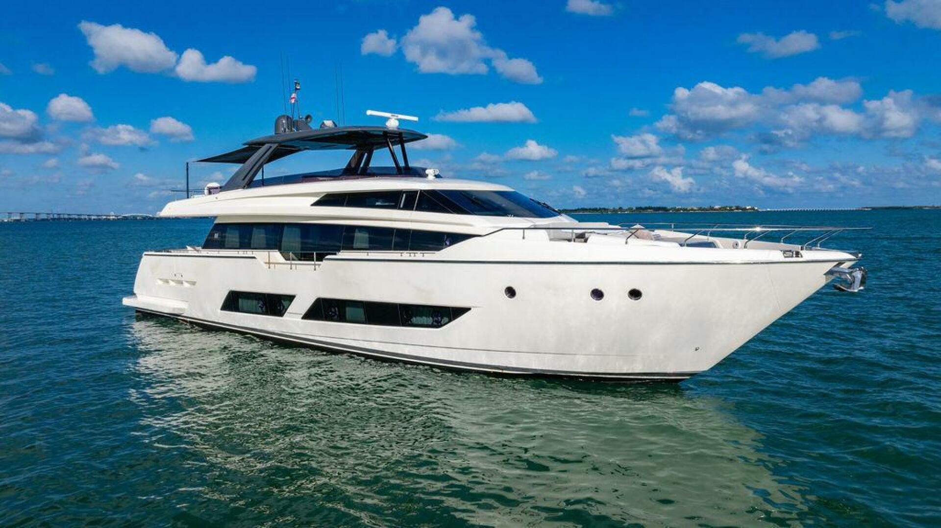The 2018 Ferretti Yachts 85' 850 Motor Yacht combines dynamic design with refined elegance. Like a floating penthouse, its expansive flybridge and airy interiors offer seamless indoor-outdoor living. With striking lines and grand windows, the Ferretti 850 is bathed in natural light, enhancing its sophisticated, open feel. A unique garage door mechanism creates a submerged swim platform, transforming the stern into a private beach club. At 26 meters in length with a hull under 24 meters, this 2018 Ferretti Yachts 85' 850 Motor Yacht can be registered as a pleasure boat—offering exclusivity without compromise. *This vessel is not for sale to U.S. residents while in U.S. waters.