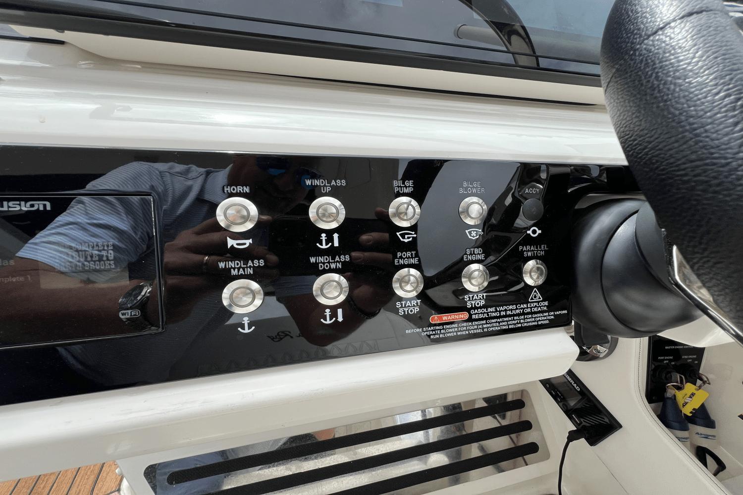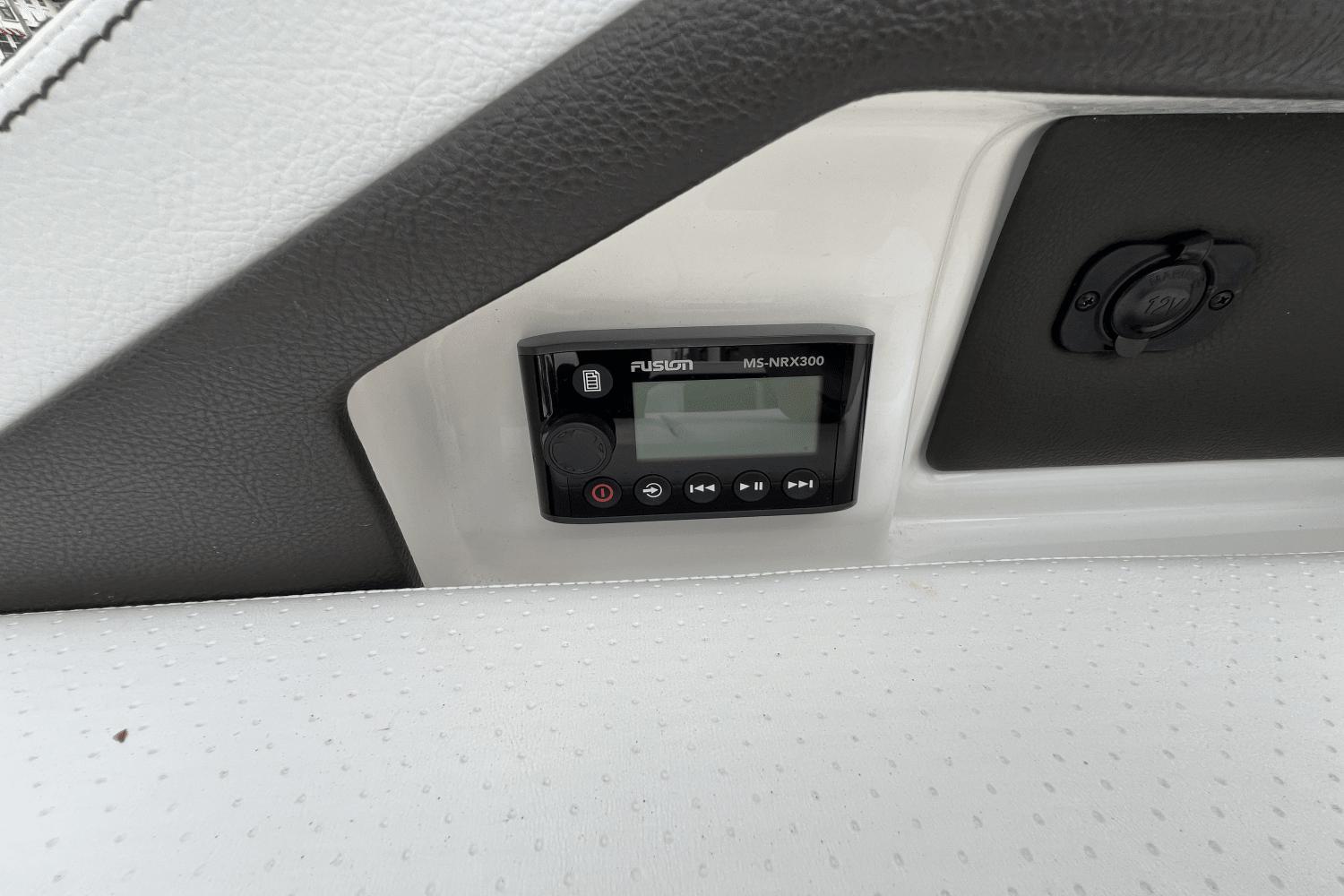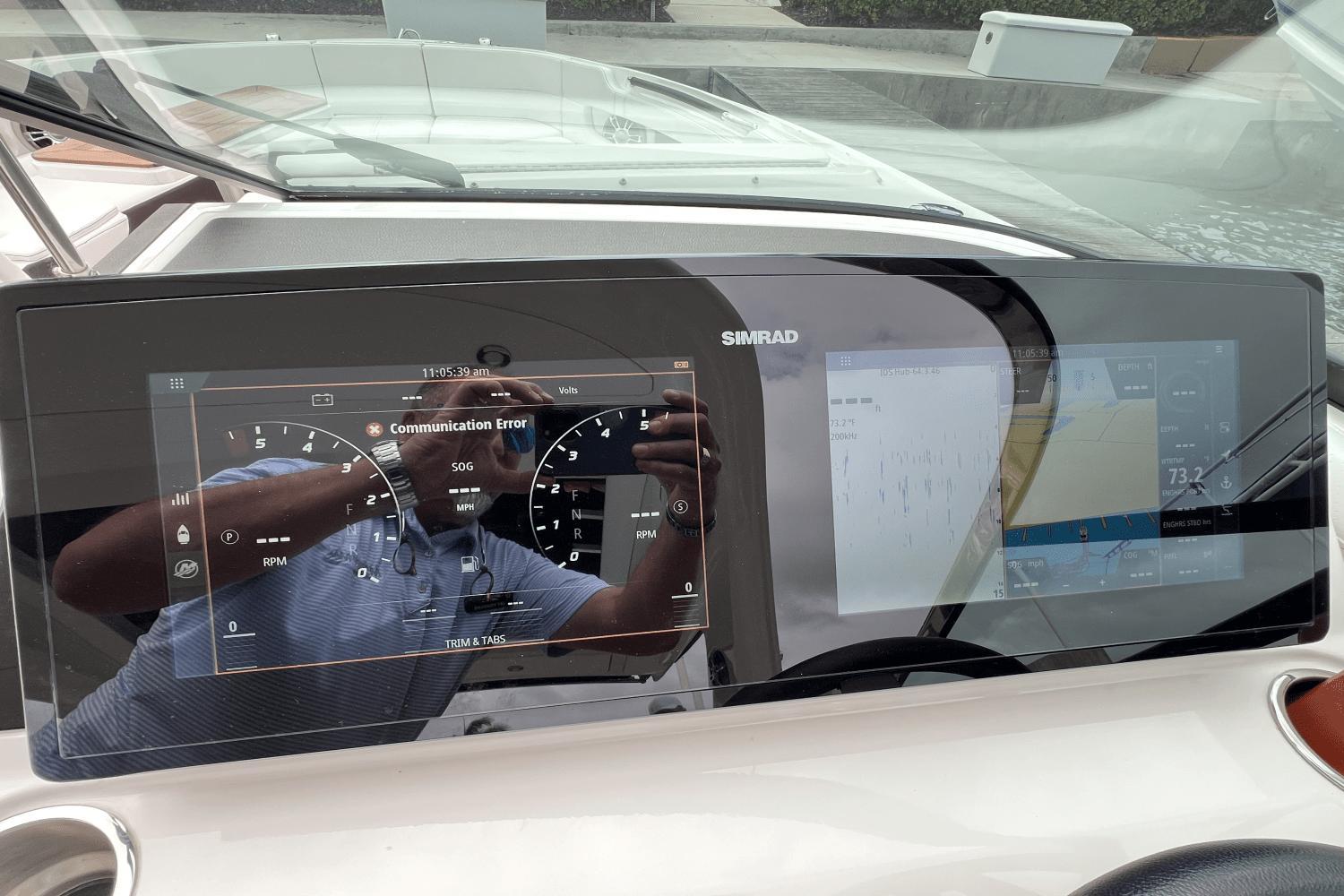 - Elite Plus Package: Stainless steel anchor, Dynamic Running Surface, Fender clips, Hardtop, fiberglass with lights & anchor light, and with opening canvas section, Lighting package, RGB-W LED color-changing, Simrad® SelectResponse™ 12″ dual displays, Stereo upgrade, premier (spkr/subwoofer/amp), Intetrated Power Sunshade extend and retract, Swim platform with automated submersible step, Windlass (rope/chain with galvanized anchor)