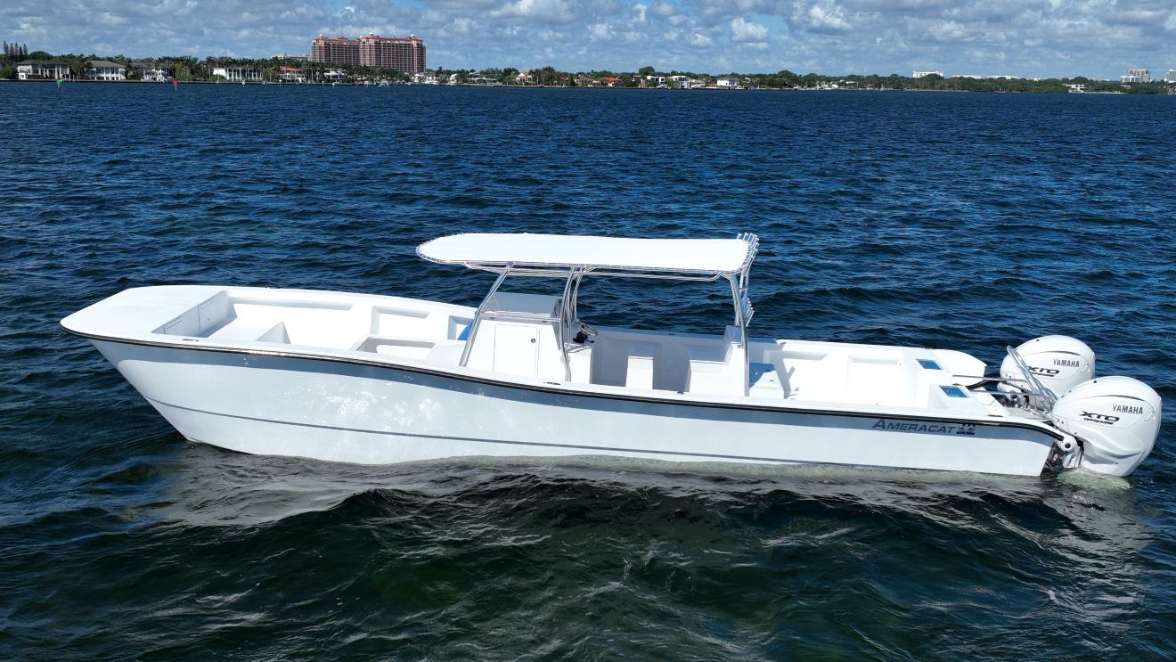 Here is your chance at purchasing a new Ameracat 395! Twin Yamaha 425 on Jack plates! only 25 hrs. This is a semi custom tri hull and turns like a mono hull, watch the video so you can see for yourself. Call me for more details.