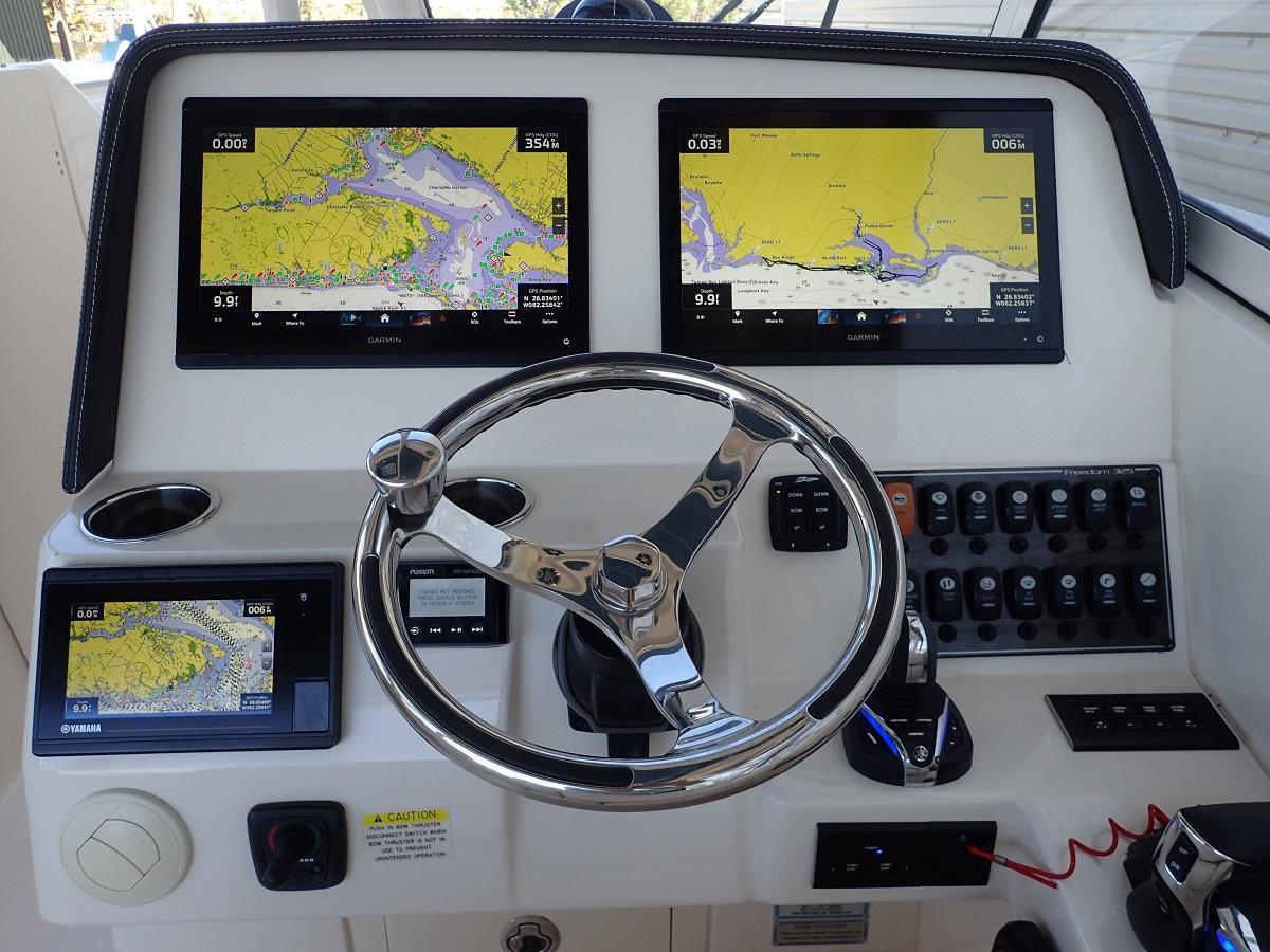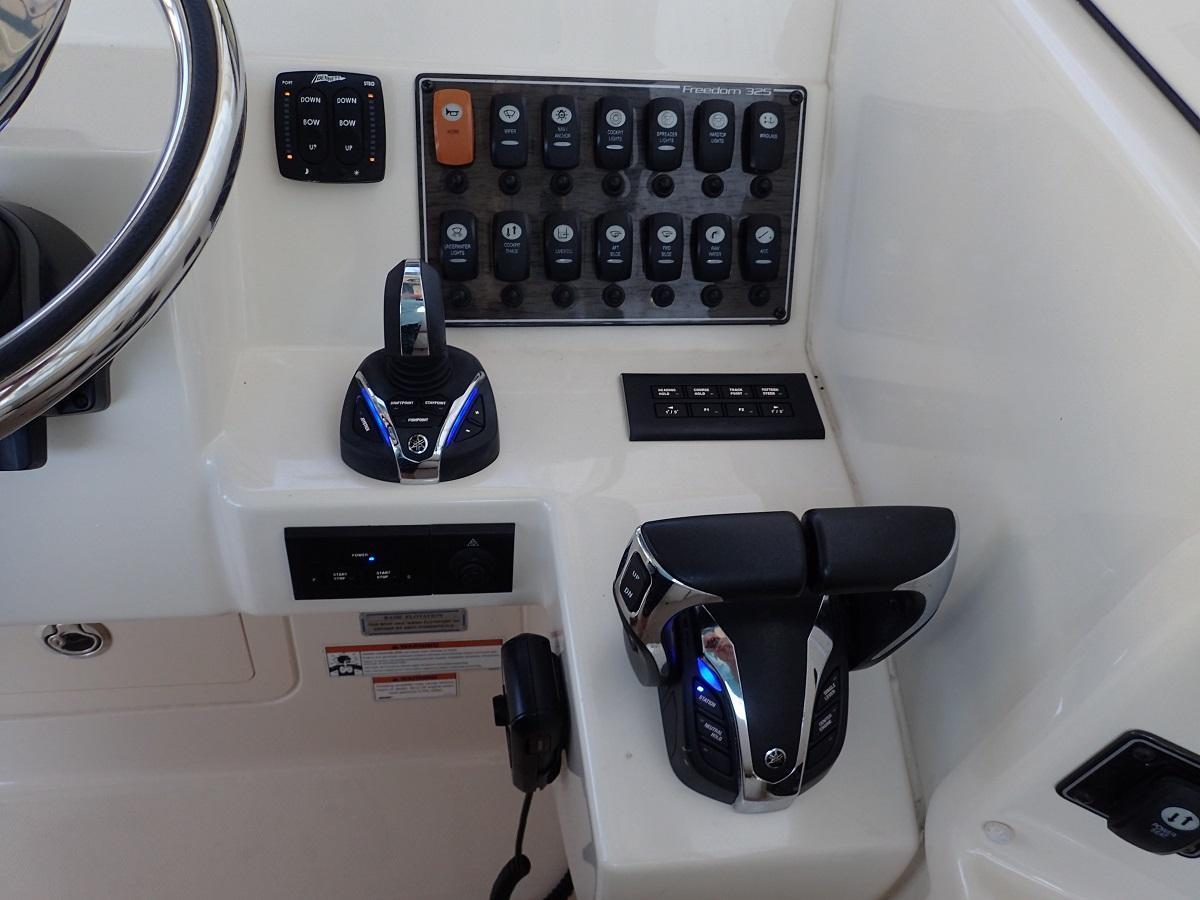 2021 Grady White 325 Freedom 2021 Twin Yamaha F300's with 311 hours & warranty till 02/13/2026 Yamaha Helm Master Joystick docking Yamaha Auto pilot Seaport Blue hull color & matching hardtop Bow thruster Diesel generator with 21 hours Air conditioning at helm & cabin Deluxe wetbar with Electric stove & 12V Refrigerator Hot water heater with transom shower Led underwater lights Bow cover Aft Drop curtain Dual Garmin 8616's 16" color combos Garmin B175 1Kw thru hull transducer Garmin 215 Vhf radio Gost 1.0 Gps tracking system for Insurance safety Inside stored and very clean !! Recent Survey in hand !! Asking $314,900 OBO Call John Ferrara The 32-foot Freedom 325, an incredibly versatile favorite for offshore fishing and all-around coastal cruising and entertaining. This beamy, spacious, super high quality dual console boat features roomy consoles with a very easy-to-access head, shower and berth, plus a standard hardtop, livewell, and standard side access and transom doors. Optional generator, air conditioning, and wet bar with refrigerator. Luxurious seating, port and starboard swim platforms—the Freedom 325 combines the incomparable SeaV2® ride with all-day, all-play comfort and function.