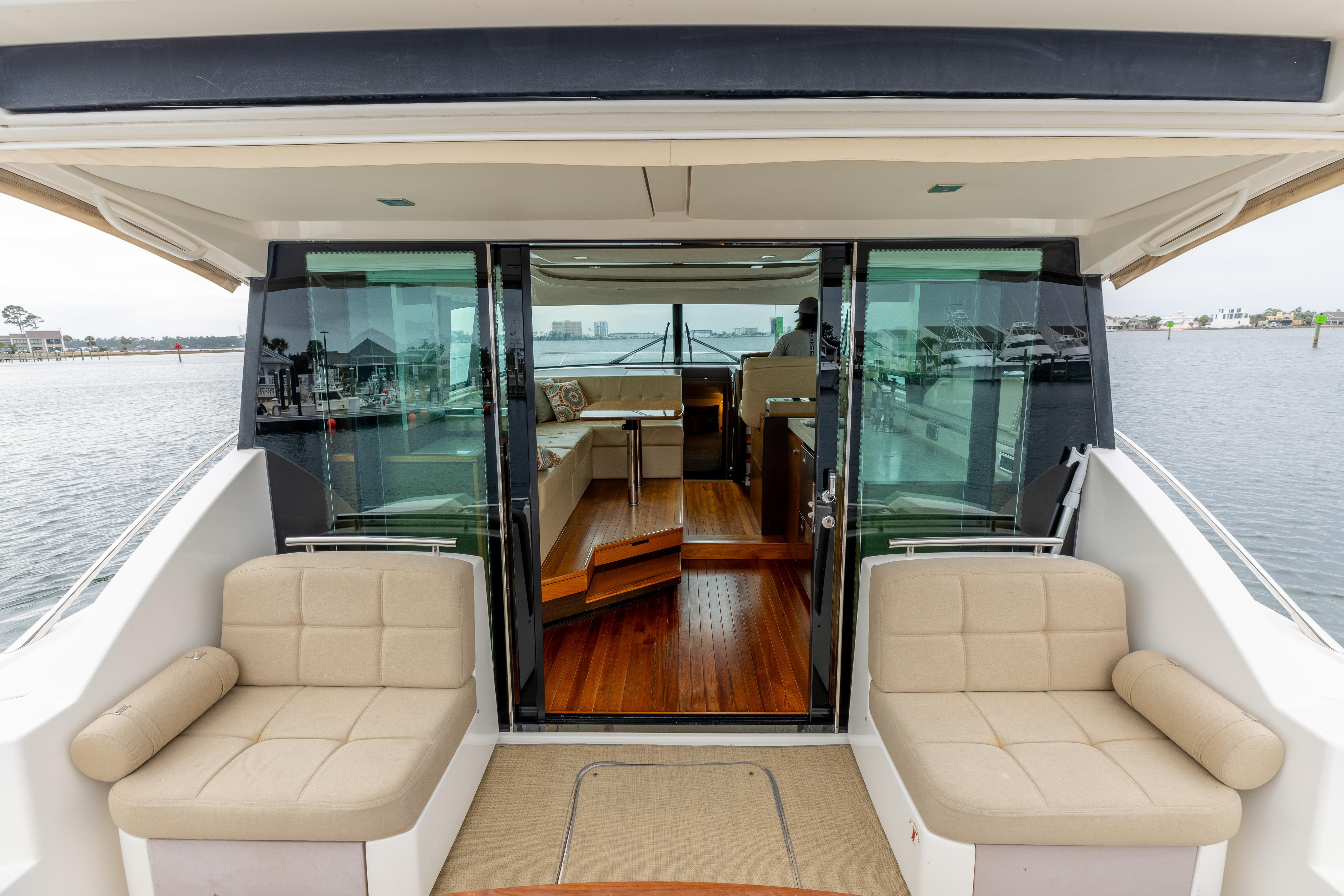 - Port and starboard cockpit aft facing seats, one with cooler below and one with storage below