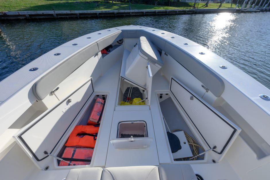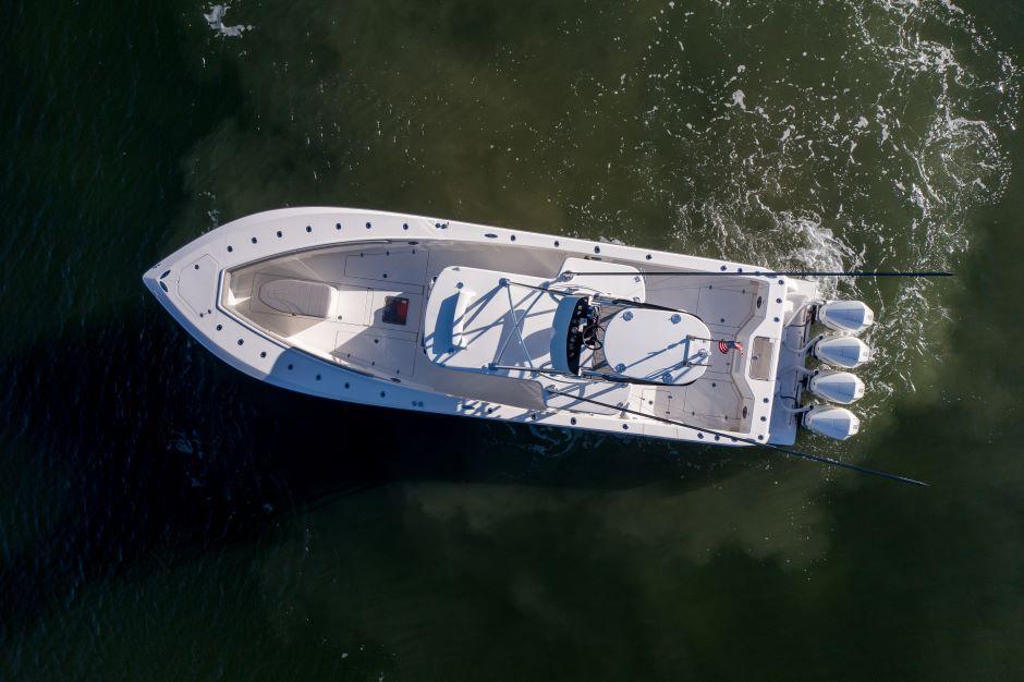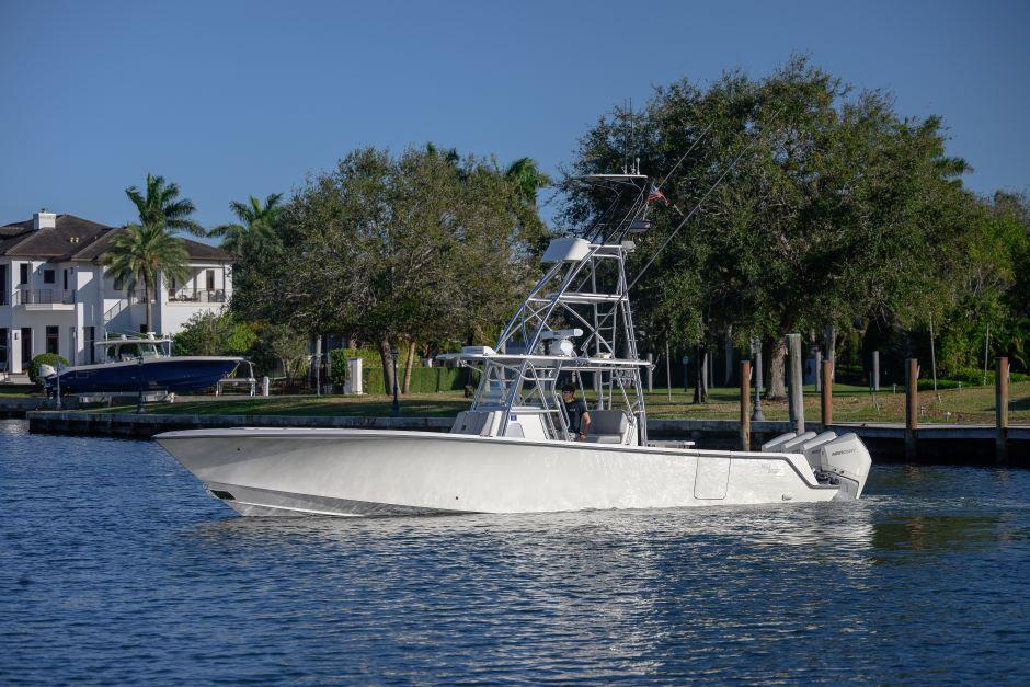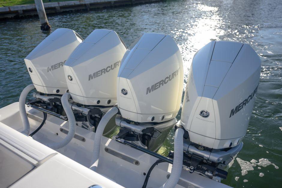 Quad 300 V8 Verados – Fully LoadedEngines & Warranty:Quad 300 V8 Verados – 820 hoursPlatinum Warranty through 7/24/27Optimus 360 Joystick with Sea StationEngine Flush SystemTower & Controls:Key West Tuna Tower with full controlsElectronics Package:(2) Simrad 19" NSO EVO3 MFDSimrad Halo 4 RadarSimrad S5100 SounderSimrad 2 KW CM599LH-W Transducer(2) Simrad NEP Network SoundersSimrad AP 44 Auto PilotSimrad OP 50 Remote Control(2) ICOM 510 VHF RadiosTower: 9" Simrad NSS EVO3 & VHFHelm:Hull & Exterior:Custom Hull Color: Kingston GreyCustom Hull Side Dive DoorLighting & Power:30" Rigid Light BarUnder-Gunnel Blue Lighting(3) Underwater Lights (Blue & White)Shore Power with Onboard ChargerFishing & Tackle Features:Gemlux Blue Water Outrigger Bases with Gemlux Carbon Fiber 22’ PolesCaptain Edition Tackle StationCoffin Box with Seat CushionRocket LauncherRod Holders:(18) Console Rod Holders(28) Gunnel Rod Holders(2) Swivel Rod Holders(3) Electric Reel OutletsGaff Holders: (4)Forward & Aft Floor Wells with (2) 3-Pump Sea ChestsComfort & Additional Features:Fresh & Raw Water OutletsCooler with Track SystemCustom JL Audio Sound SystemFor more details, call Eric at 3057733624