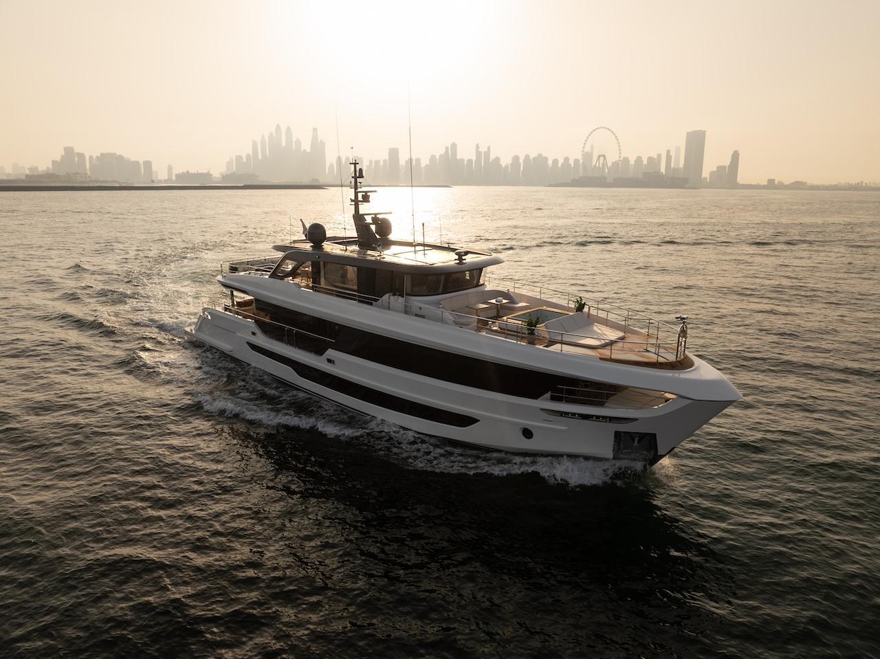 The upper deck is home to a sophisticated sky lounge and a well-equipped wheelhouse, offering both relaxation and functionality. Below deck, spacious ensuite-equipped cabins provide luxurious accommodations for guests, ensuring comfort and privacy throughout their journey. The sundeck is designed for indulgence, featuring a jacuzzi, sunbeds, and multiple dining spaces, catering to those who seek the ultimate yachting lifestyle.