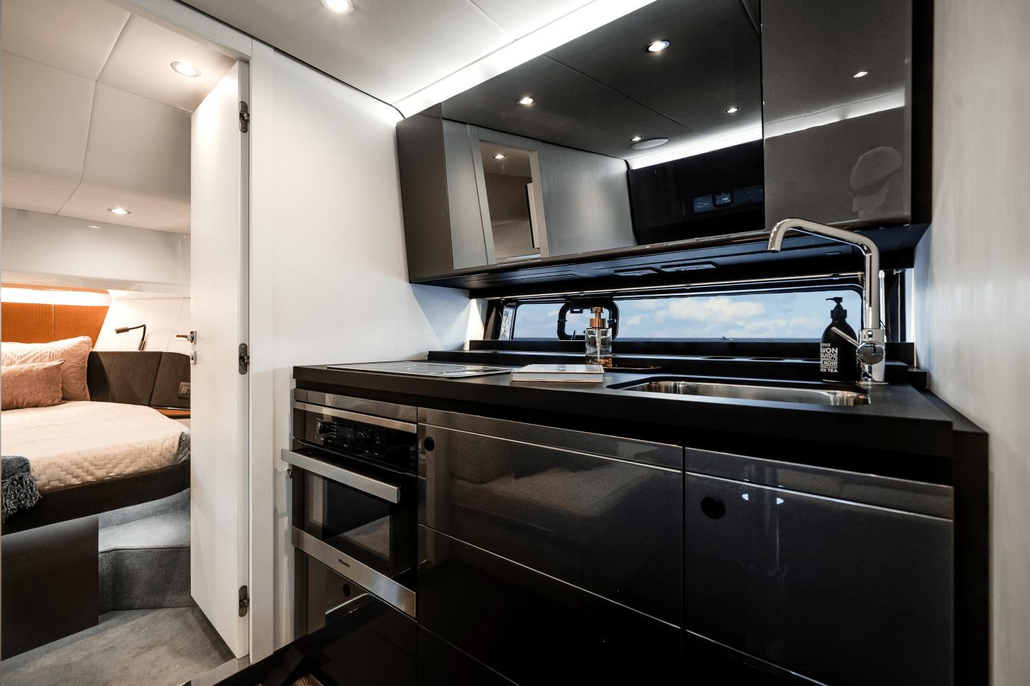 - 300 l (79.3 US.liq.gal.) plastic fresh water tank in technical locker, under the galley dinette floor