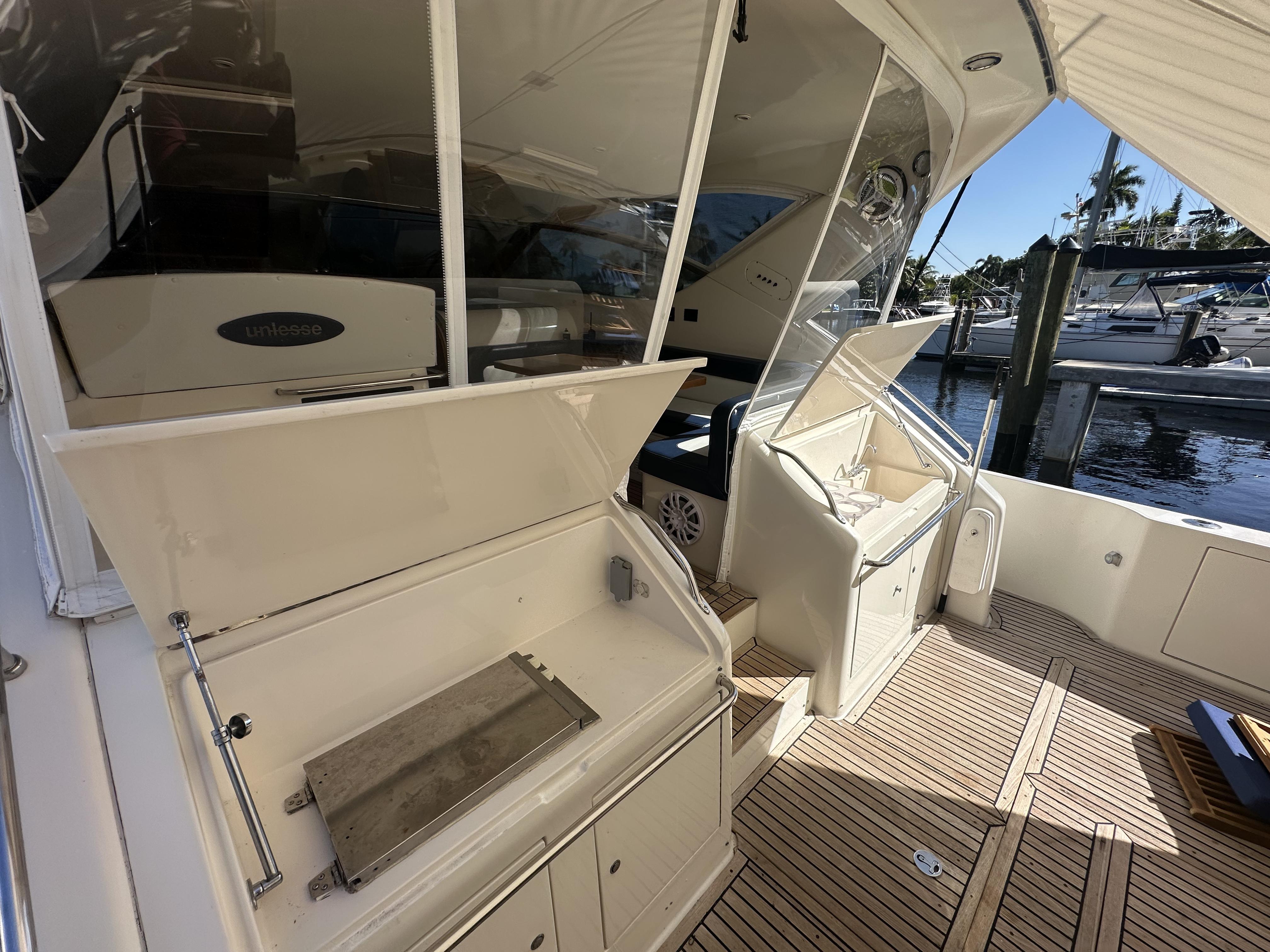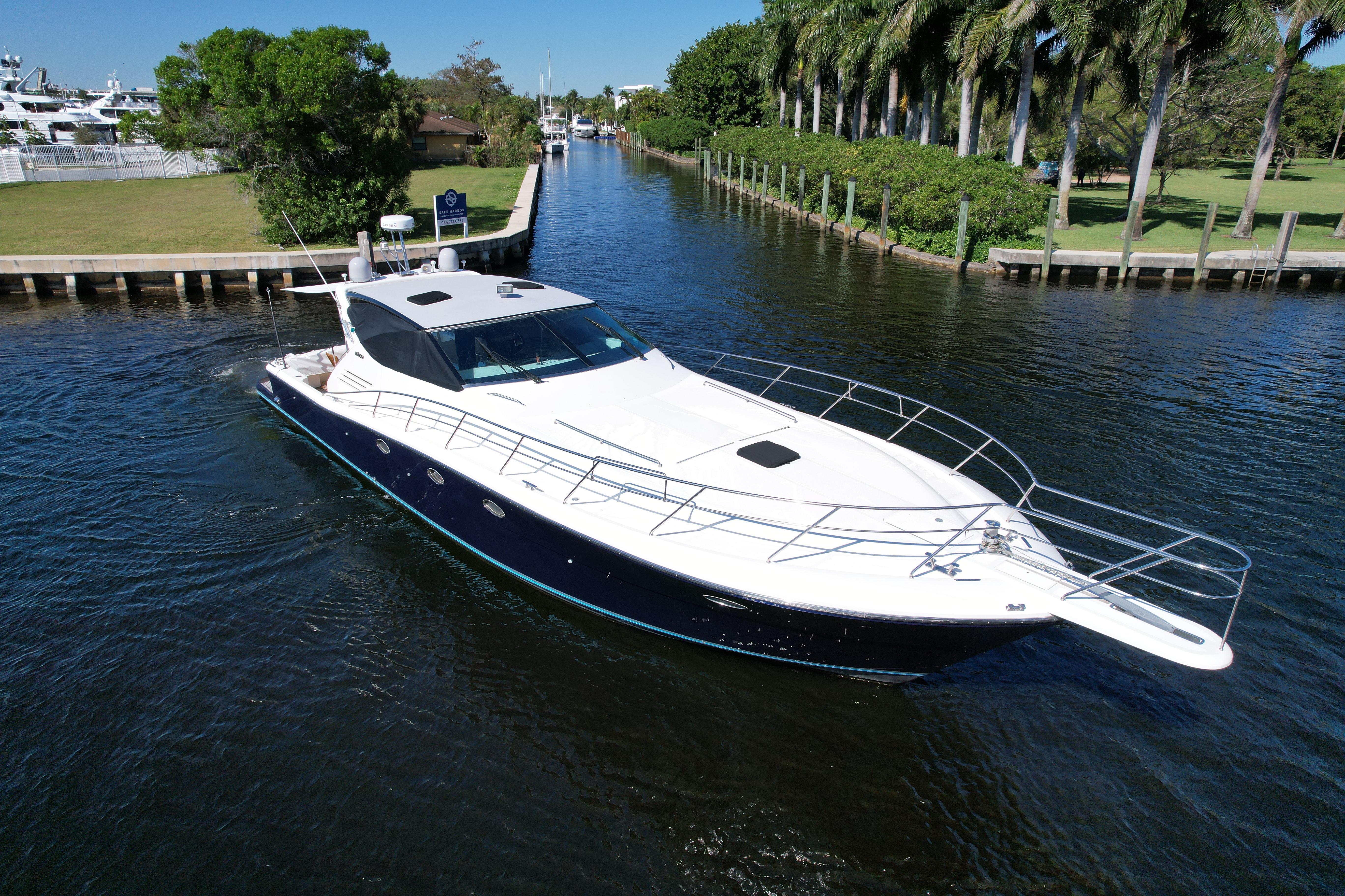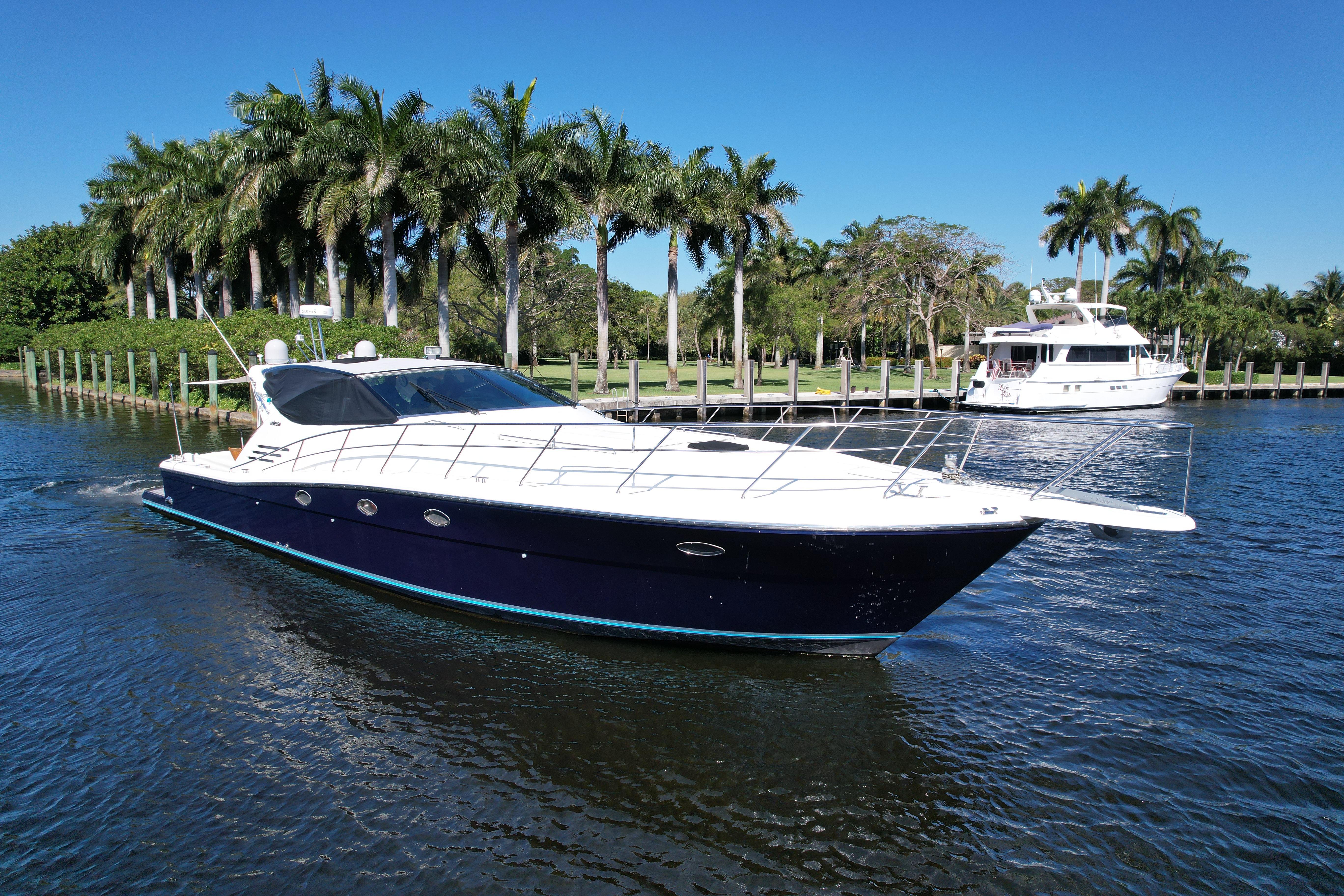 This 1999 Uniesse 57 Open is a beautifully maintained yacht, featuring a 3-stateroom, 3-head layout with numerous upgrades. She offers both performance and luxury, making her perfect for cruising or entertaining. Recent Upgrades & Features:New upholsteryNew ice makersNew chillers (CW60C Mabru60K 410A 230 – installed 11/10/2022)MPS 12,000 BTUs 230VNew Scot 2100 GPH raw water pump (installed 5/19/2023)New bottom paint – August 2023Updated Kohler 15kW generatorCruising speed: 26 knots / WOT: 32.1 knotsFully documented maintenance historySpecifications:LOA: 61'4" (18.69m)Beam: 16'4"Draft (Max): 4'9"Hull Material: FiberglassFuel Capacity: 845 gallons (3,198.67 liters)Fresh Water Capacity: 150 gallons (567.81 liters)Holding Tank: 66 gallons (249.84 liters)Engines:Make: MAN D 2848 LE 403 (Twin)Type: InboardPower: 800 HP each (596.56 kW)Fuel: DieselHours: 2000 eachGenerator:Make: KohlerOutput: 15 kWElectronics & Navigation:Garmin GPS 5412 (x2)ZF Transmissions (2.077:1 ratio)Act now, she is a rare opportunity to own a well-maintained and upgraded Uniesse 57 Open with an excellent performance record. Contact us today for more details or to schedule a viewing.