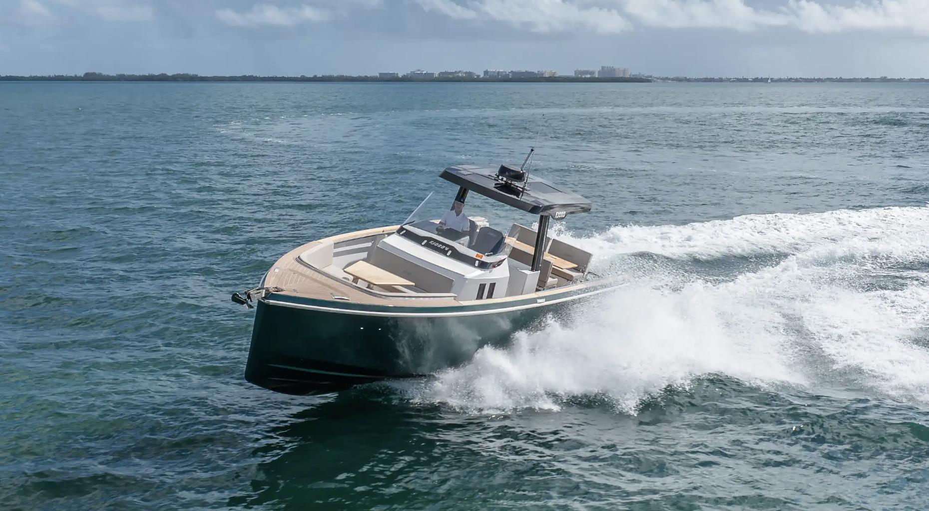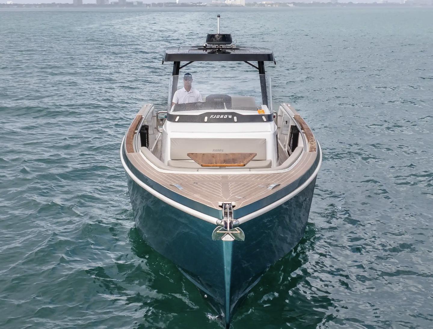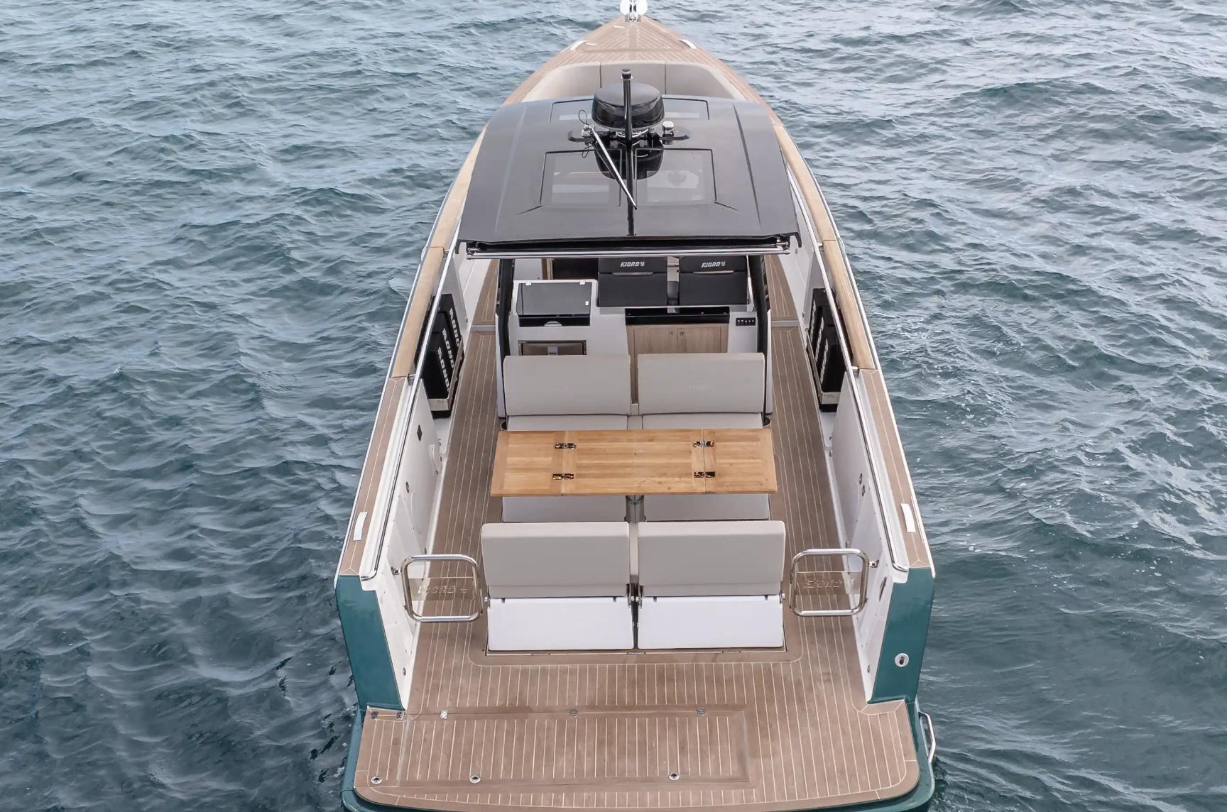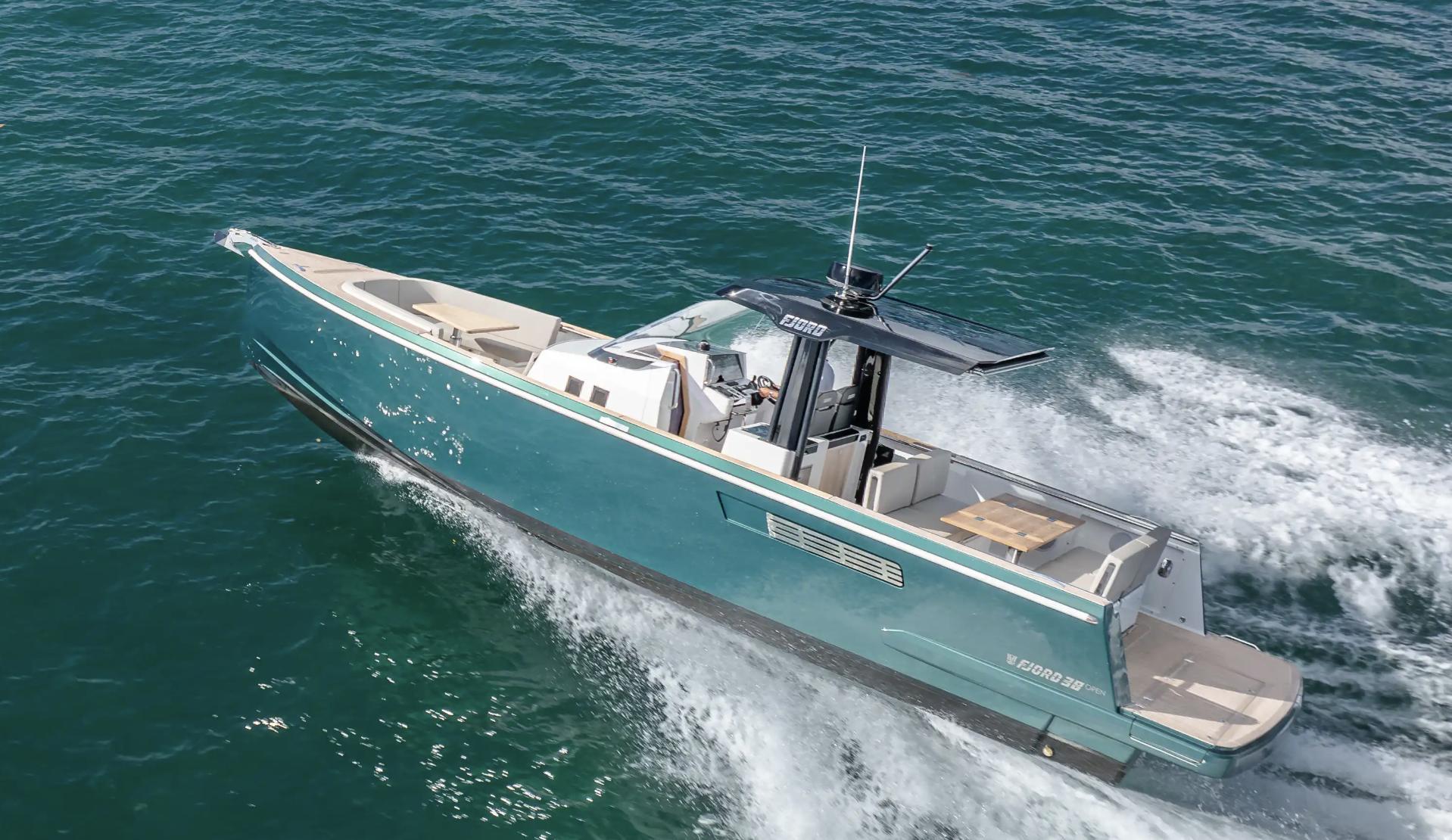 Country of Origin: GermanyVessel Designer: Patrick BanfieldHull Material: FiberglassBoat Type: Motor YachtDimensions & Capacities:Fuel Tank Capacity: 158.5 gallons (Stainless Steel)Fresh Water Tank: 52.8 gallonsBlack Water Tank: 16 gallonsEngine Specifications:Engine Type: InboardEngine Model: 2 x Volvo Penta D4Horsepower per Engine: 320 HPFuel Type: DieselEngine Hours: 160 hoursTop Speed: 40 knotsDesign & Comfort:The FJORD 38 open redefines the sport cabriolet concept on water, melding exhilarating performance with cutting-edge design. The extended T-top, an iconic style feature, now provides unprecedented sunshade thanks to an electric bimini, setting new standards in its class.Inside, the sophistication continues with an innovative glass bridge instrumentation, enhancing both the aesthetic and functional appeal. The sporty helm seat ensures optimum balance and comfort even at high speeds.The front window's design adds a glamorous touch to the yacht's exterior, while the interior boasts a unique composition of materials that elevate both the tactile and visual experience.Performance & Innovation:With a foundation in German engineering and designed by the esteemed Patrick Banfield, the FJORD 38 open does not just adhere to the rules—it establishes them. From its robust fiberglass hull to its advanced inboard engines, this yacht promises durability and dynamic performance.Always ahead of its time, the FJORD 38 open takes the fascination of floating sport cabriolets to new heights with its confident, innovative design and supreme driving comfort. It's not just a yacht; it's a statement of style and power on the water.
