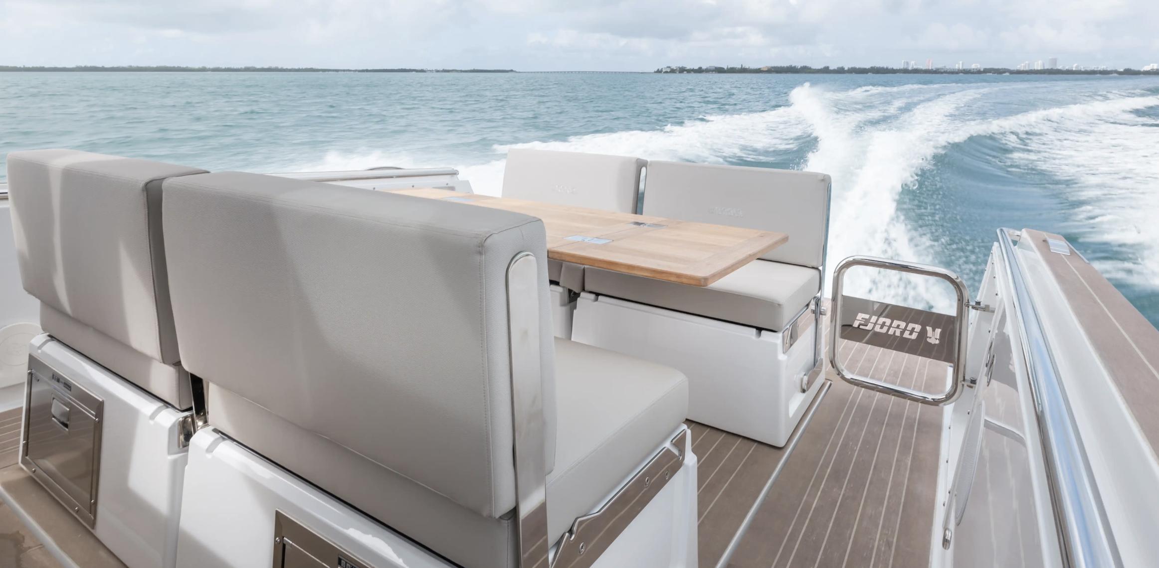 Country of Origin: GermanyVessel Designer: Patrick BanfieldHull Material: FiberglassBoat Type: Motor YachtDimensions & Capacities:Fuel Tank Capacity: 158.5 gallons (Stainless Steel)Fresh Water Tank: 52.8 gallonsBlack Water Tank: 16 gallonsEngine Specifications:Engine Type: InboardEngine Model: 2 x Volvo Penta D4Horsepower per Engine: 320 HPFuel Type: DieselEngine Hours: 160 hoursTop Speed: 40 knotsDesign & Comfort:The FJORD 38 open redefines the sport cabriolet concept on water, melding exhilarating performance with cutting-edge design. The extended T-top, an iconic style feature, now provides unprecedented sunshade thanks to an electric bimini, setting new standards in its class.Inside, the sophistication continues with an innovative glass bridge instrumentation, enhancing both the aesthetic and functional appeal. The sporty helm seat ensures optimum balance and comfort even at high speeds.The front window's design adds a glamorous touch to the yacht's exterior, while the interior boasts a unique composition of materials that elevate both the tactile and visual experience.Performance & Innovation:With a foundation in German engineering and designed by the esteemed Patrick Banfield, the FJORD 38 open does not just adhere to the rules—it establishes them. From its robust fiberglass hull to its advanced inboard engines, this yacht promises durability and dynamic performance.Always ahead of its time, the FJORD 38 open takes the fascination of floating sport cabriolets to new heights with its confident, innovative design and supreme driving comfort. It's not just a yacht; it's a statement of style and power on the water.