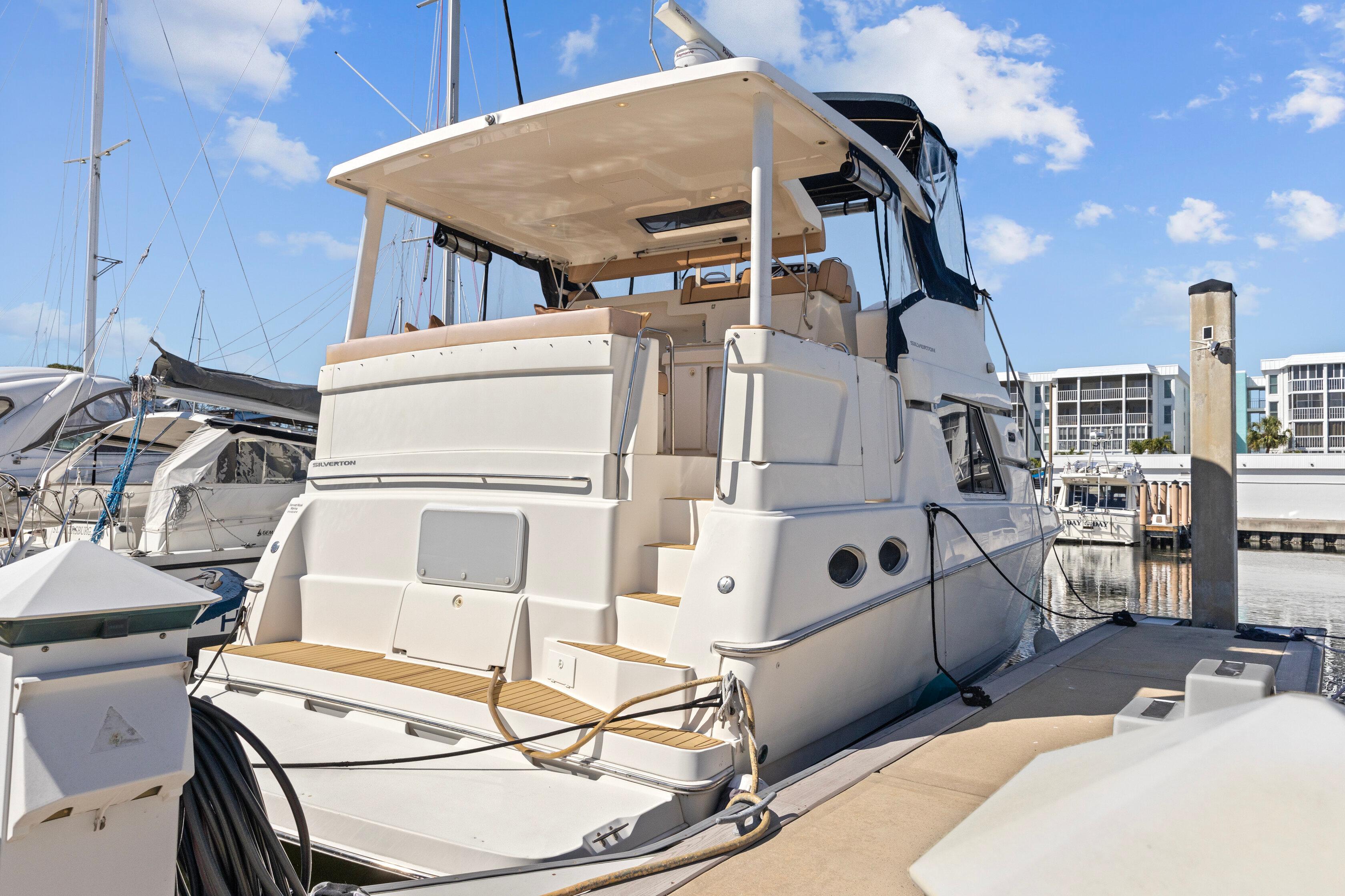 Experience luxury and relaxation on the spacious aft deck of our 2000 Silverton 392 Motor Yacht Aft Cabin. It seamlessly blends comfort and entertainment, making it the perfect retreat for enjoying the open water. Highlights of the aft deck include: