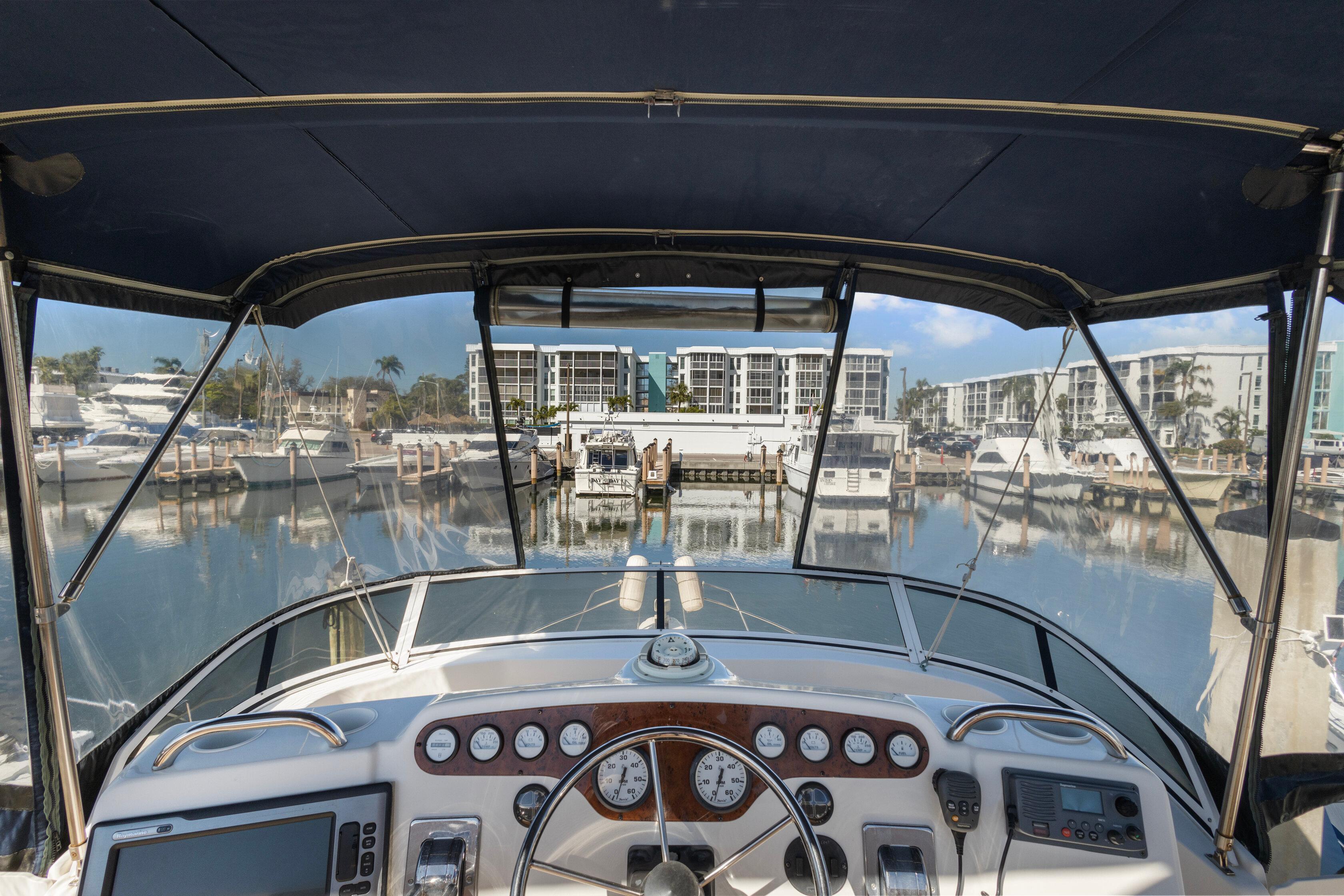 The 2000 Silverton 392 Motor Yacht features a sleek, Modified V fiberglass hull for smooth and stable performance in various sea conditions. The well-designed deck includes a spacious bow, stainless steel handrails, and a robust anchor windlass system. Non-slip surfaces ensure safety, while integrated storage keeps equipment organized. The flybridge and enclosed aft deck offer panoramic views and comfortable seating for socializing and relaxation, combining practicality with luxurious comfort for an enjoyable journey.