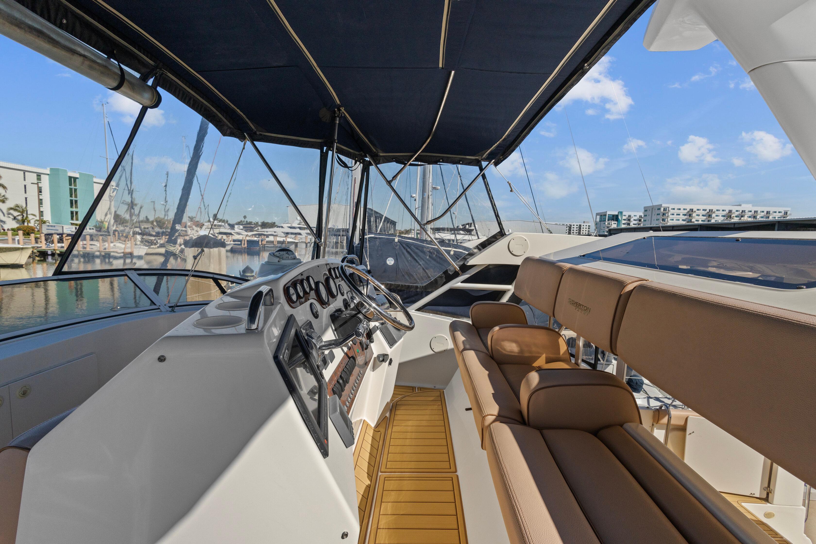 Ascend three steps from the aft deck to the Upper Helm Area, a commanding space designed for both the captain's control and the enjoyment of family and guests.