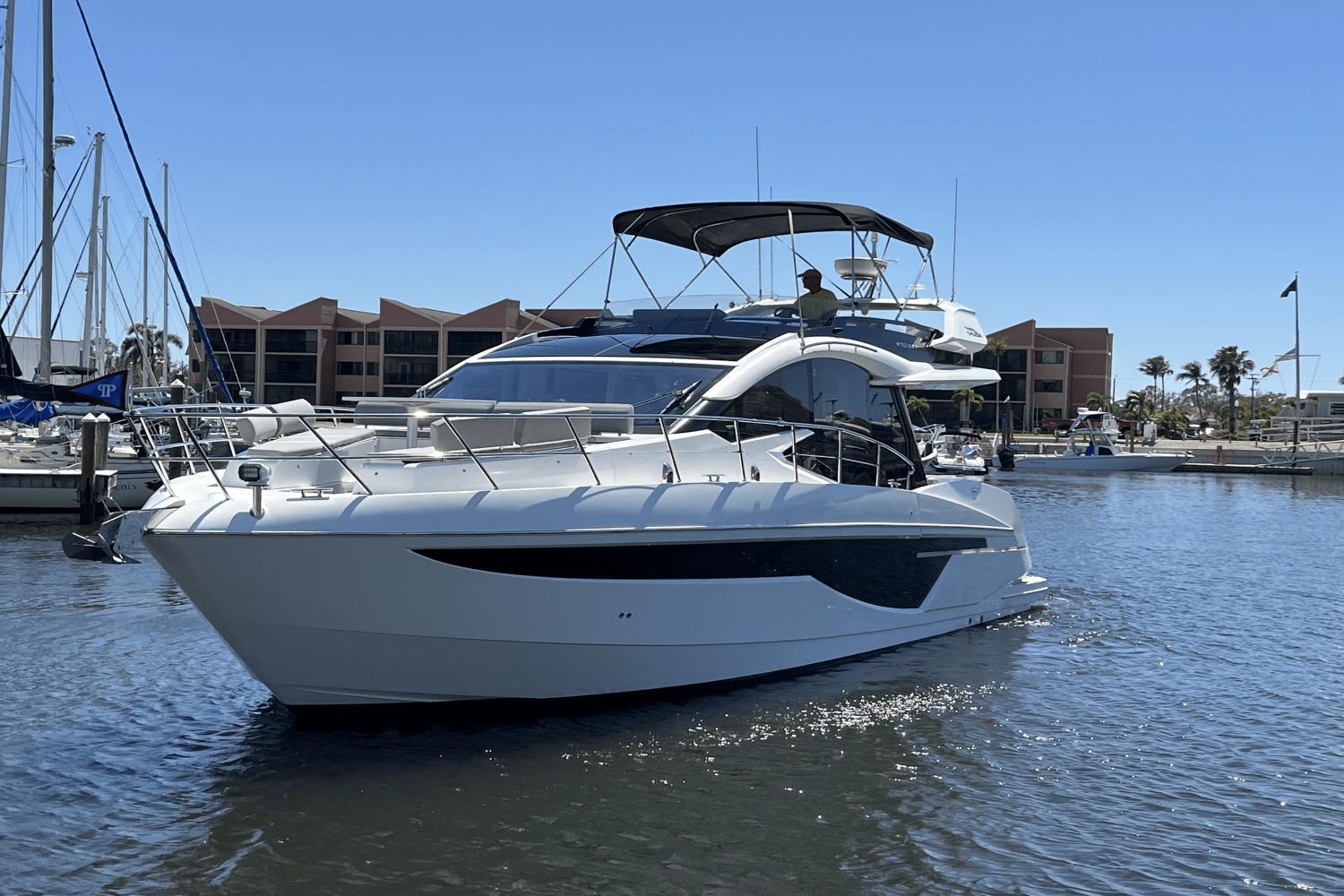 Trades considered!This Vessel is exceptionally clean and has a lot of additional options and equipment. Volvo Penta D8 600 HP with shafts have 365 hours and were just serviced March 2025. Full Wax and Detail March 2025. Upgraded Exclusive Eukalyptus Gloss Cabinetry, Upgraded Vita Interior and Exterior Upholstery, Stern Thruster as well as Bow Thruster. The Owner has added Yacht controller,Bimini Top, underwater lighting, transom deck lighting, Bow seating lighting.Please call the listing Broker for your personal viewing a pointment.The Owner has added the following equipment:Six underwater lightsLED Bow lighting at the seatingTransom deck lightingYacht Controller for easy dockingBimini TopTender ChauksOptional Equipment:Twin Volvo Penta D8 600 HP with Shafts. 365 HoursExclusive Eukalyptus Gloss wood CabinetryPalazzo wood floor in Galley and SalonPolished Master Shower TileAvi Marmo Saturio Master Head FloorVita Grey Exterior CushionsFull ControlPackage-Bow Thruster-Stern Thruster-Shore power cable master-Entrance Door Curtain-Mesh Covers for Front and side windows-Twin 12 inch Axium Raymarine Chartplotters lower helm-12 inch Axium Raymarine Chartplotter upper helm-Raymarine VHF's Ray91 AIS-Raymarine Autopilots-Electric sliding TV40 inch in salon-TV LED 32 inch in Master stateroom-Upgraded Fusion Sound SystemLuxury Package-Wooden Floor in Galley and Salon-TV LED 24 inch in Forward Stateroom-Interior Carpet Runners-Small Freezer Drawer in Galley-Electric Grill on aft deck-Covers for cockpit seating-Beach Mode - Electric Balcony sides that lower-Windows in galley that slide open-Hydraulic Swim Platform