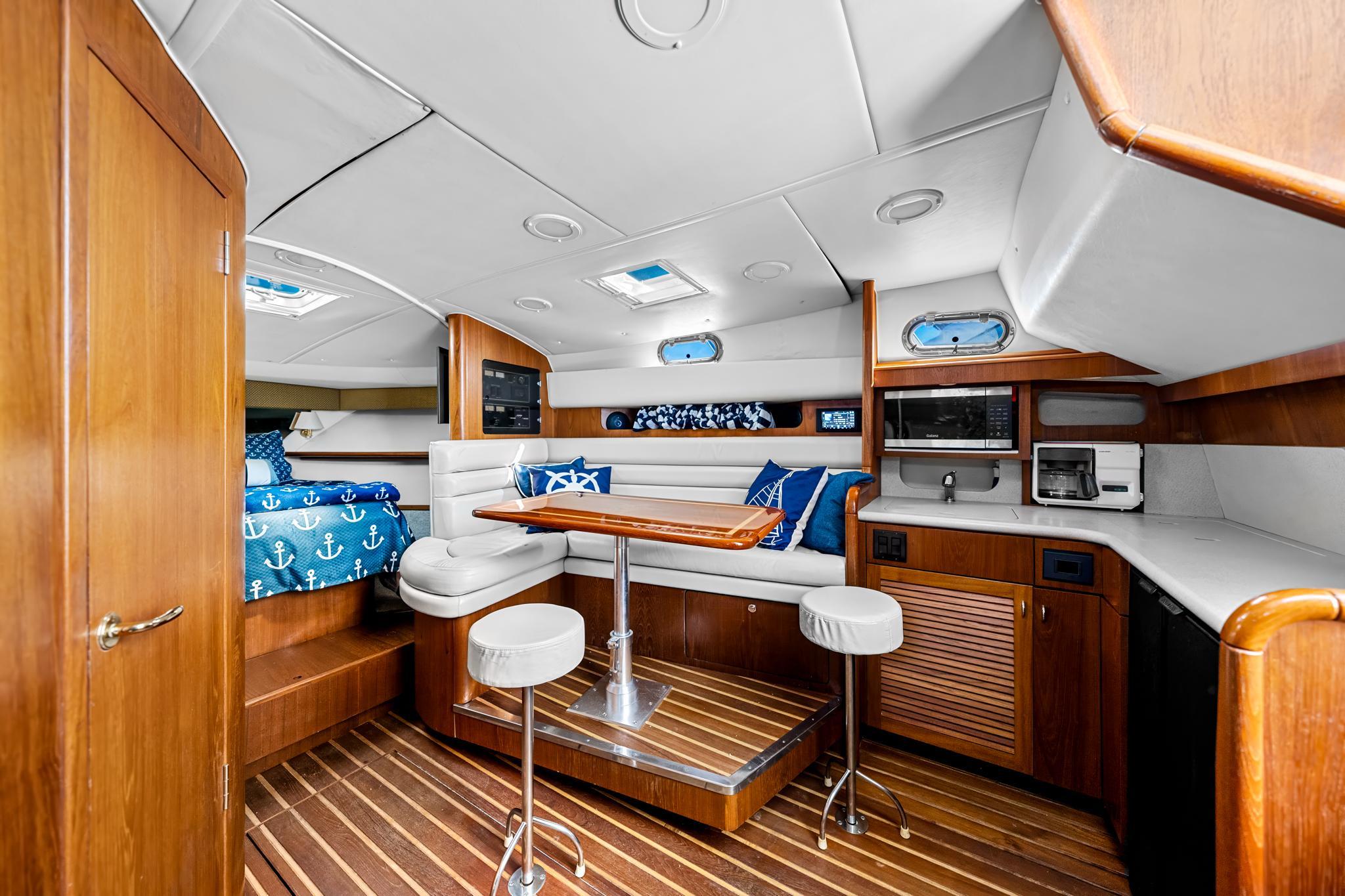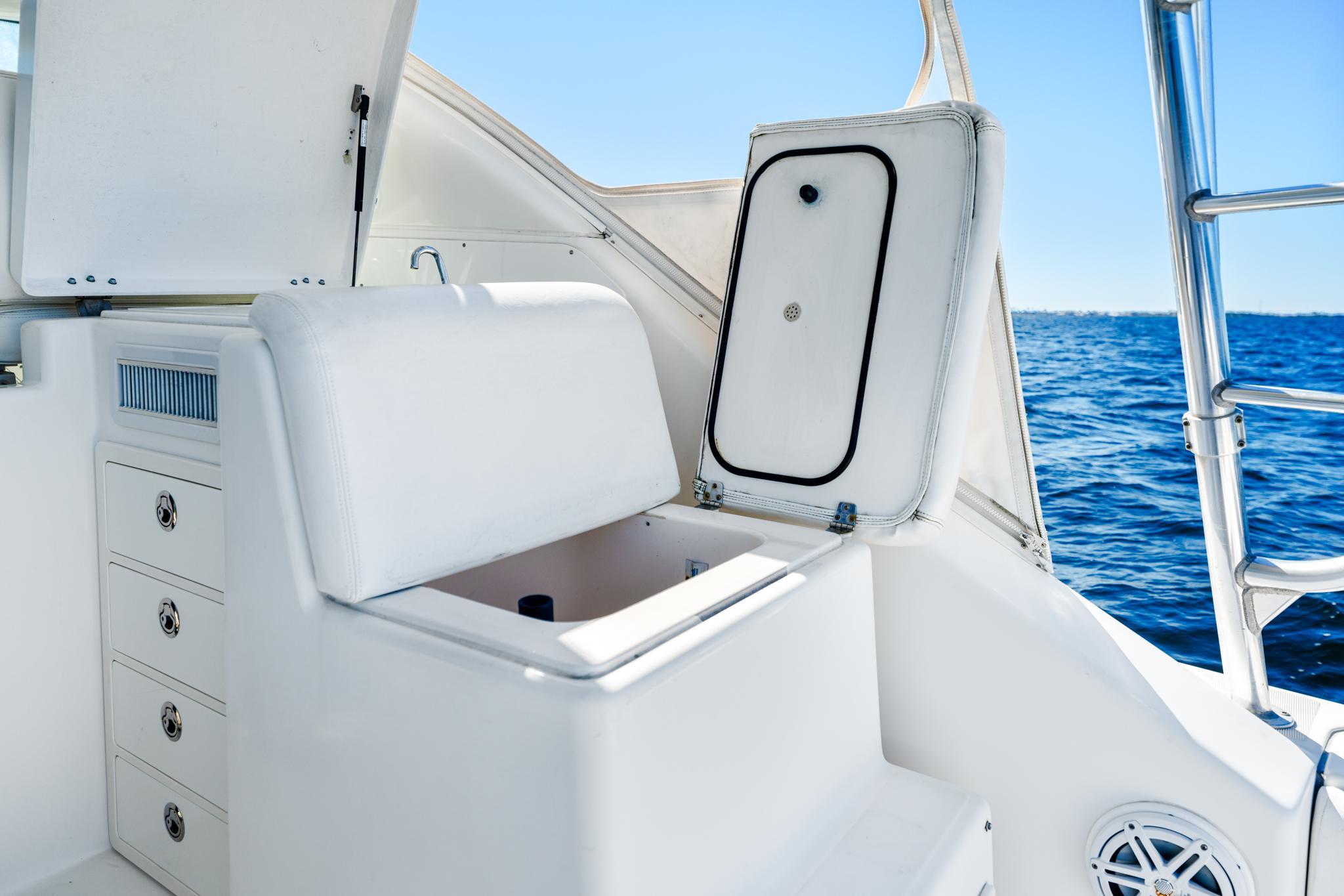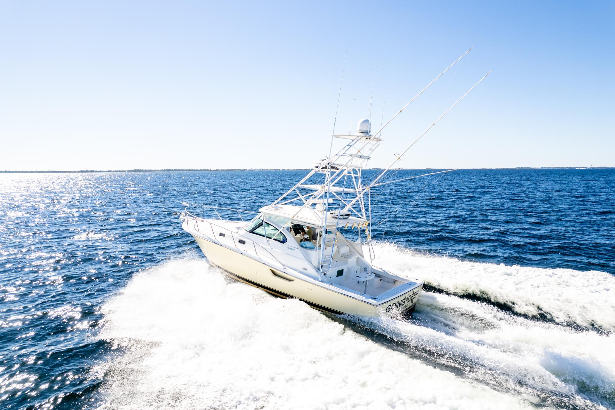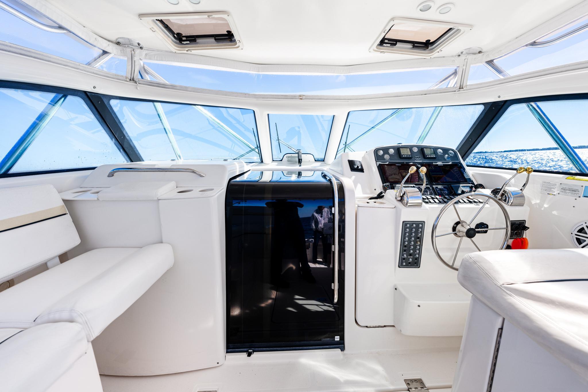 Welcome Aboard!Come see this meticulously maintained 2002 Pursuit 3800 Express ready for its next owner!This Pursuit 3800 Express is a versatile and meticulously maintained boat known for its combination of fishing prowessand comfortable cruising capabilities. The modified V hull with a solid fiberglass bottom provides a stable and smoothride even in rough waters. The spacious cockpit is well-equipped for the serious angler, including coaming bolsters, atransom door, and a large fish box. This Pursuit is also equipped with 10x rocket launchers on the tower, a 50-gallonaquarium live well, a bait prep station, a bait freezer with a removable bait box, a removable fish box, and custom tackledrawers. Equipped with a Simrad Electronics package, radar and autopilot. The interior cabin is designed for comfortwith plush seating, a well-appointed galley, and sleeping accommodations that make it suitable for extended trips. It is inimpeccable condition. The galley contains a brand-new microwave, two burners, refrigeration, and a freezer. The cabinincludes a queen-sized berth and a combination twin berth/settee. The head consists of a stand-up separate showerstall. This Pursuit also has an impressive glassed-in rod locker with ambient lighting. Thoughtfully designed to balanceboth fishing and leisure activities, ensuring a comfortable experience whether you're out for a day trip or a more extendedvoyage.