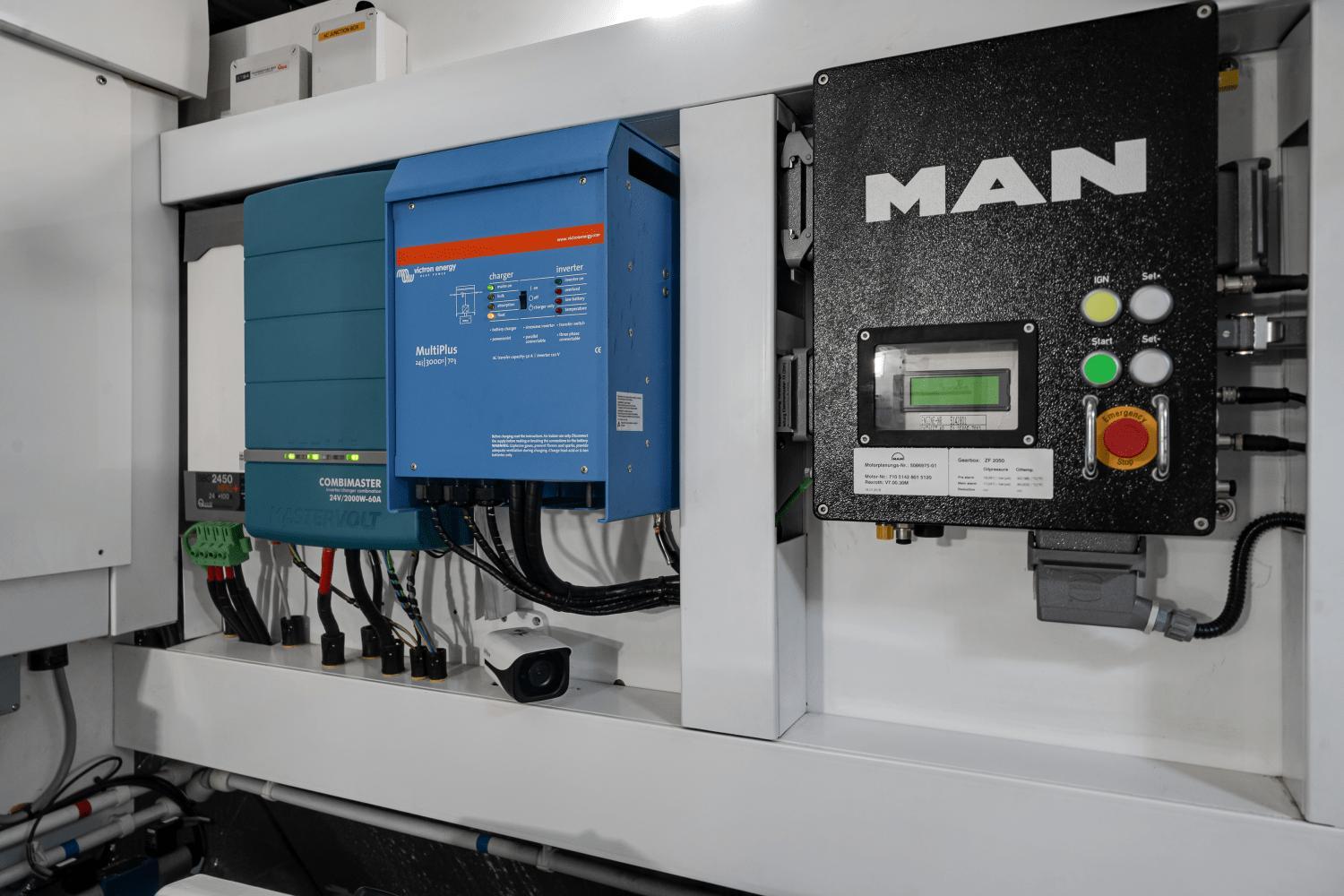 - 2kW Victron Inverter system to run the boats refrigeration goods including ice maker and optional wine cooler from the boats DC batteries. Two additional dedicated Trojan 100Ah AMG batteries are added.