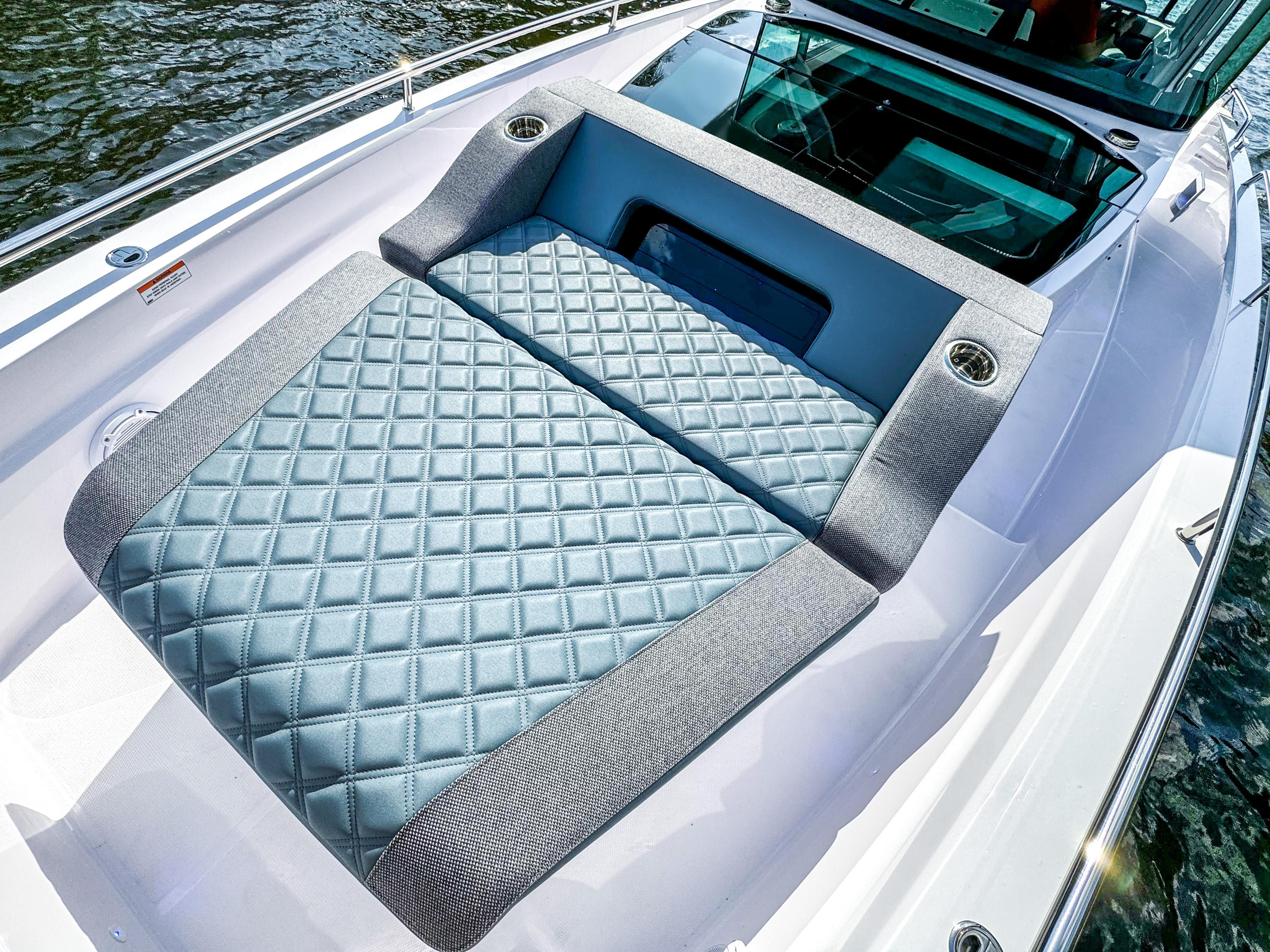 - Fixed sunbed on front deck with storage, Silvertex