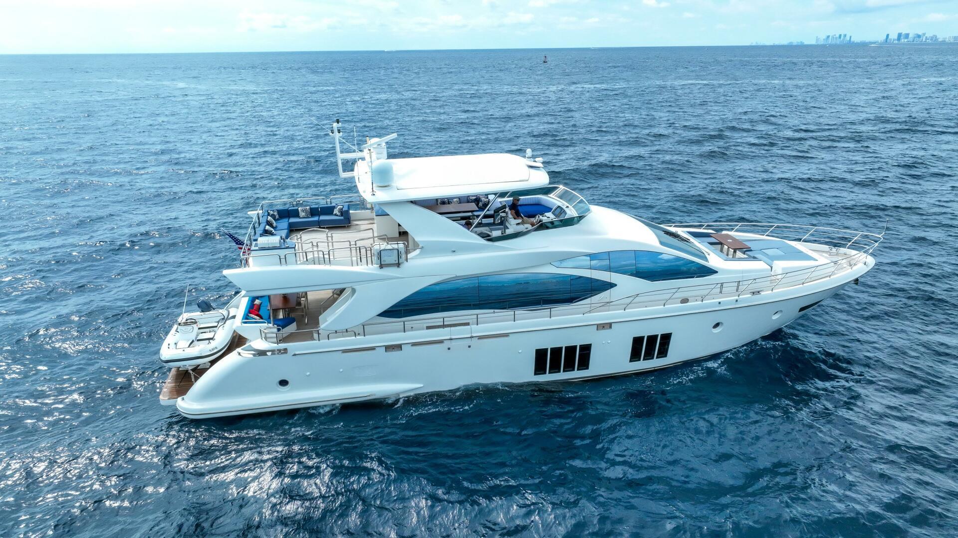 Satisfaction is a beautiful 2017 84’ Azimut Flybridge Motor Yacht. Her pristine condition is sure to impress the most experienced of yachtsmen. Satisfaction has 4 large staterooms and crew quarters aft for three (1 captain cabin and 1 crew cabin with bunks). A unique feature of this 84’ Azimut is a separate entrance to the master stateroom ensuring the ultimate privacy for the owner while the guest staterooms forward utilize the spacious area in the forward part of the vessel.This 2017 84' Azimut's large flybridge is very impressive and makes for the perfect entertaining area with a magnificent view. Additional entertaining areas on the aft deck for dining and the bow seating truly maximize the exterior spaces on the vessel. This 84' Azimut was originally built by a very experienced owner and the equipment list reflects that! Please see below some of the equipment highlights on Satisfaction.Highlights:MAN V12-1800HP motorsCNC “zero speed” Stabilizer systemTwin Onan 29kw generatorsIdromar Water makerRaymarine GS navigational packageHydraulic bow thrusterHydraulic swim platformUpgraded Rudder size for improved maneuverabilityUnderwater lightsPassarelle boarding ladderExterior Teak TablesUpgraded Audio/Visual components throughout(larger TVs)Treben leather Helm Chairs(lower helm station)FLIR night vision cameraExterior Teak package on the decks 8mmNew bedding and linens throughout vessel (07/24)Flybridge barstools recovered (07/24)New upholstery on Flybridge (07/24)New carpet runners in staterooms and the salonSteering Rams serviced (08/24)New TV aft deck (07/24)New TV in the salon (07/24)Reupholstered exterior cushions (08/24)Passarelle serviced (09/24)Hydraulic swim platform serviced (08/24)Entire boat buffed/waxed (08/24)Crew settee reupholstered (08/24)Teak flybridge table refinished (09/24)