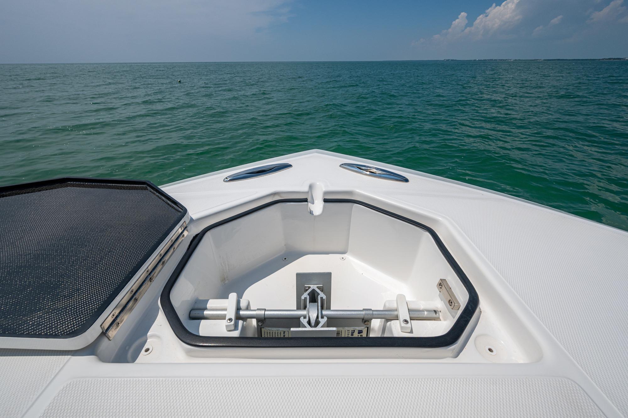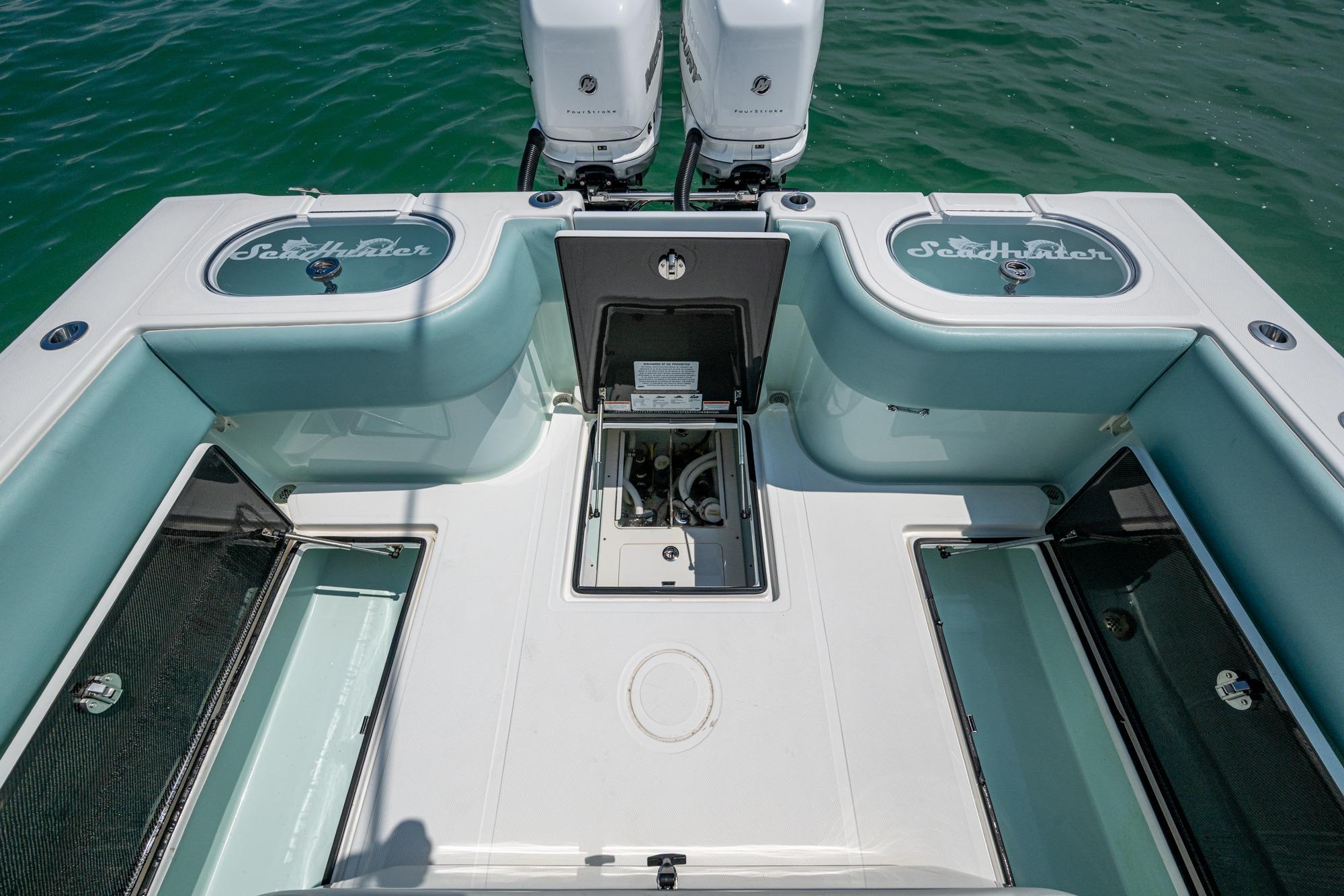 This 2023 31 SeaHunter was custom built by the owner with extreme thought to detail. Being a multi time Seahunter owner as well as numerous other high end center consoles, he knew exactly what he wanted and how he wanted it layed out. From its custom matching Aqua Mist hull colors in the fish box's and interior gunnels to the well thought out and highly functional collapsible tower with full controls and electronics, this vessel was built to do it all with a emphasis on live baiting in South Florida. 3 livewells with separate pumps ensure you can always carry enough bait with you and Her 49 Rod holders scattered thru out the boat means you always have someplace to put a rod.Dual Garmin 8616's on the dash and 12 kw open array radar and autopilot gives you the ability to make long runs in confidence and find the birds to Tuna fish! Her 9" Garmin in the tower and separate VHF lets the captain spend as much time as he wants up there comfortably without sacrificing any comfort or technology.