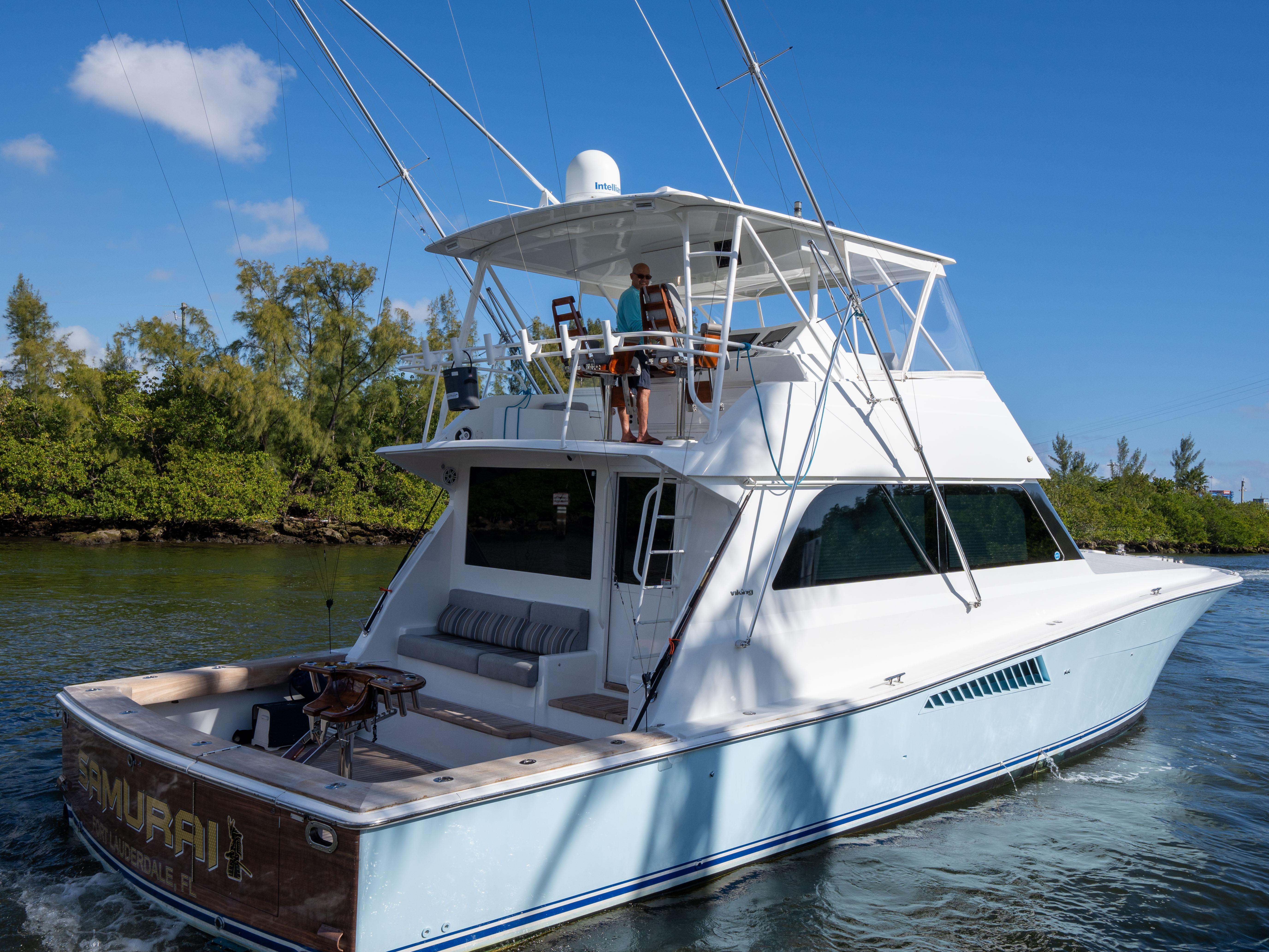 The level of upgrades and customizations on board the 1998 58 Viking Convertible “SAMURAI” cannot be understated! In the last two years alone she has had her main engines rebuilt, a brand new custom teak deck added, custom high gloss teak helm pod, custom mezzanine and interior refit. She is owned and operated by an extremely knowledgeable captain. The 58 Viking has an outstanding reputation in classic Viking circles as an extremely well laid out, spacious model with great seakeeping characteristics. “SAMURAI” offers a three stateroom, three head layout inside thanks in part to a wide 18' beam. Her massive 168 sq ft cockpit is all business and rigged to chase down the largest gamefish in the world. She does so in the style, comfort and safety you have come to expect from Viking. When looking for value in today’s current yacht market, look no further than the 1998 58 Viking “SAMURAI”. She represents the unique opportunity to own a classic pedigree Viking yacht, with all the modern updates, at a fraction of the price.