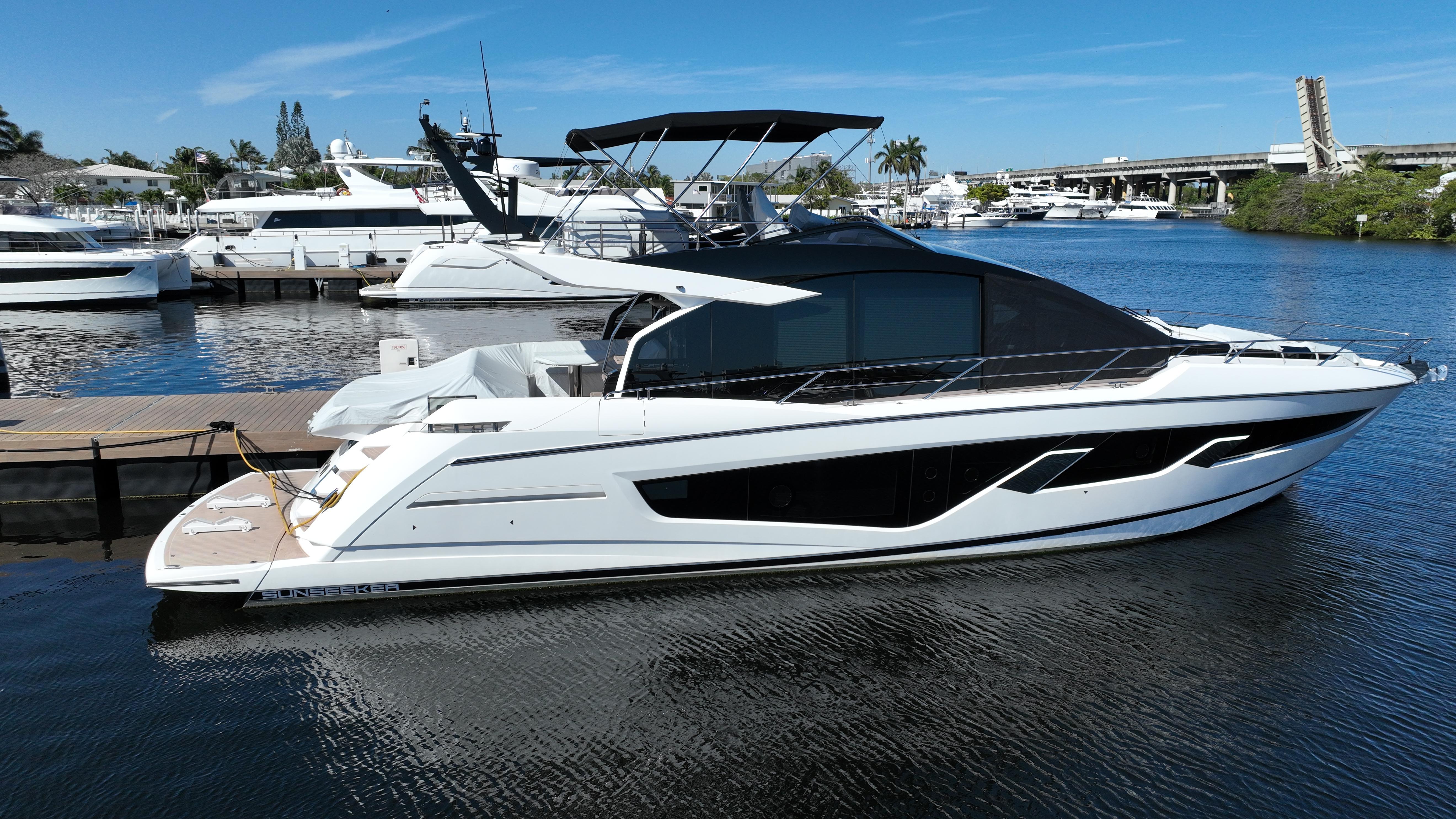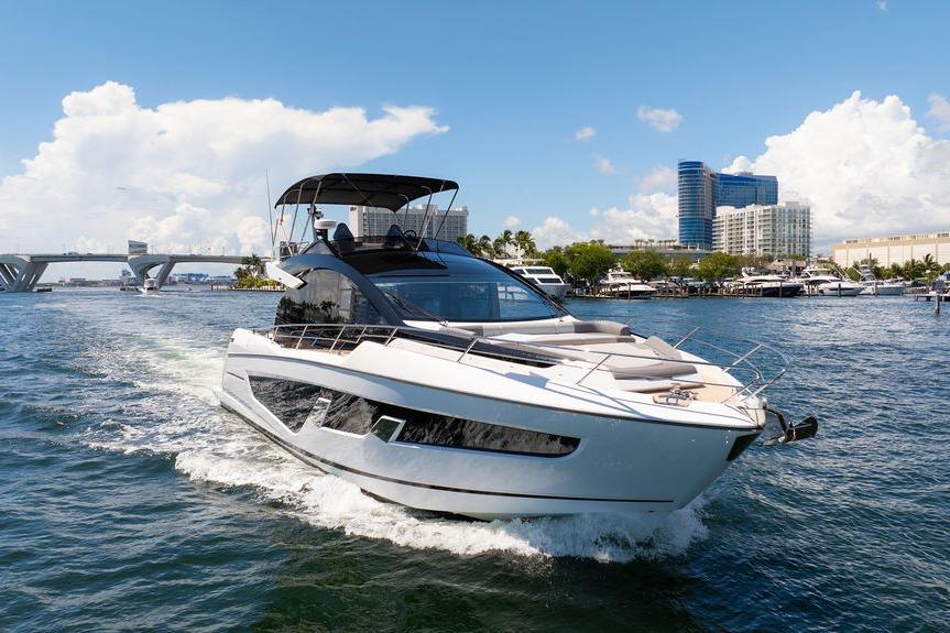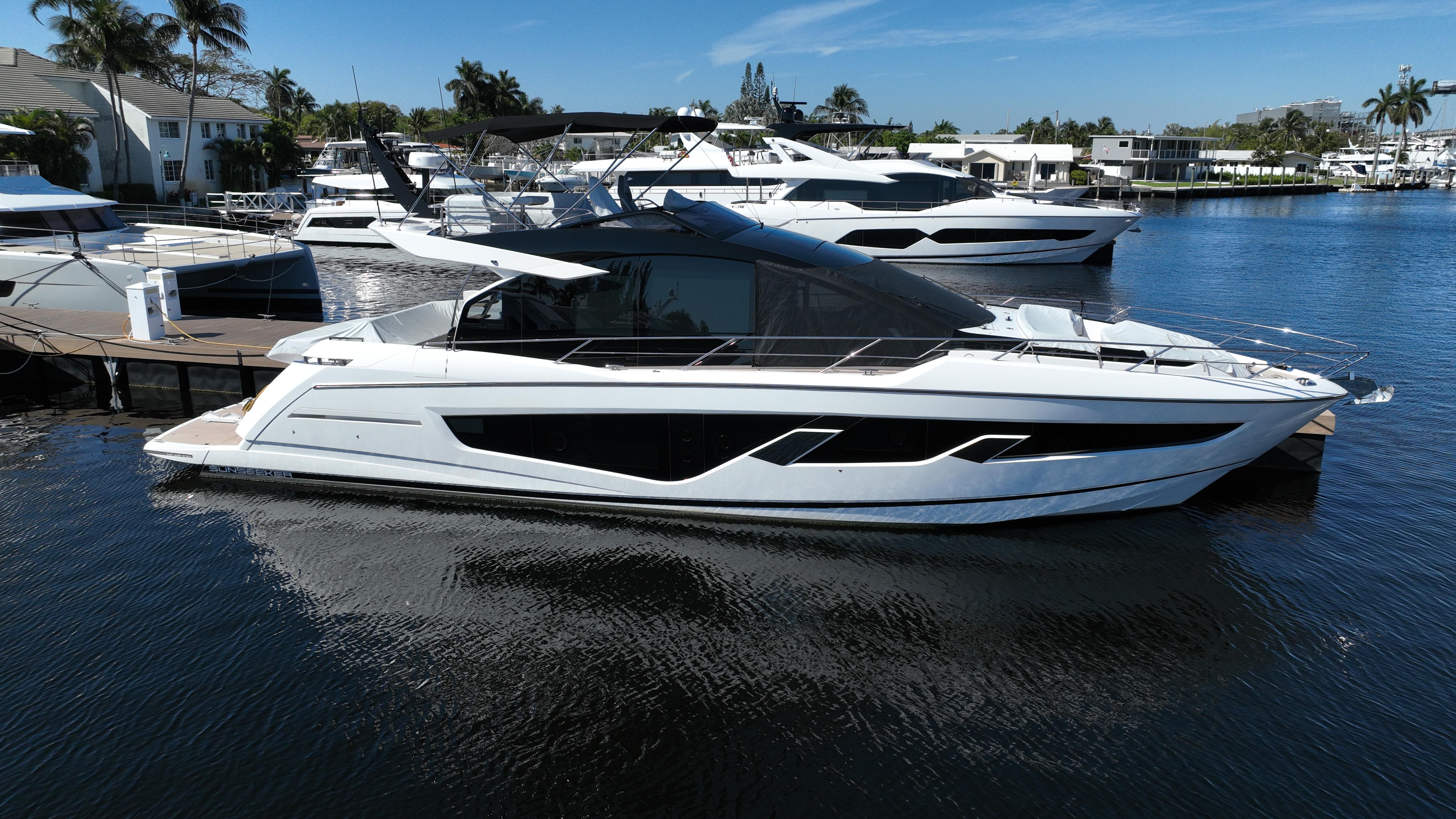 Introducing the 65 Sport Yacht! The SkyHelm™, complete with IPS docking joystick, can be used in an upright position for low-speed maneuvering or lowered to fall perfectly into outstretched arms when sat low in the bespoke helm seats cossetted by carbon fiber backrests and an integrated center console. The modular layout allows for various specifications and enhancements, with space that adapts seamlessly to all kinds of socializing and adrenaline-seeking. Three cabins, including a full-beam master stateroom, can accommodate up to six guests in luxurious comfort, with a fully appointed crew cabin located forward of the garage.Take your Sport Yacht to new heights by carrying the tender on the bathing platform and reconfiguring the vacated space as a dedicated ‘Beach Club’ – with direct sea access, bar, fridge, BBQ and free-standing seating. The perfect area for those happiest close to the water. With speeds of up to 35 knots, the 65 Sport Yacht cuts an equally impressive figure on the open water. Altogether, the experience is one of pure adrenaline, akin to driving a high-performance convertible supercar. Call today to scheule a showing