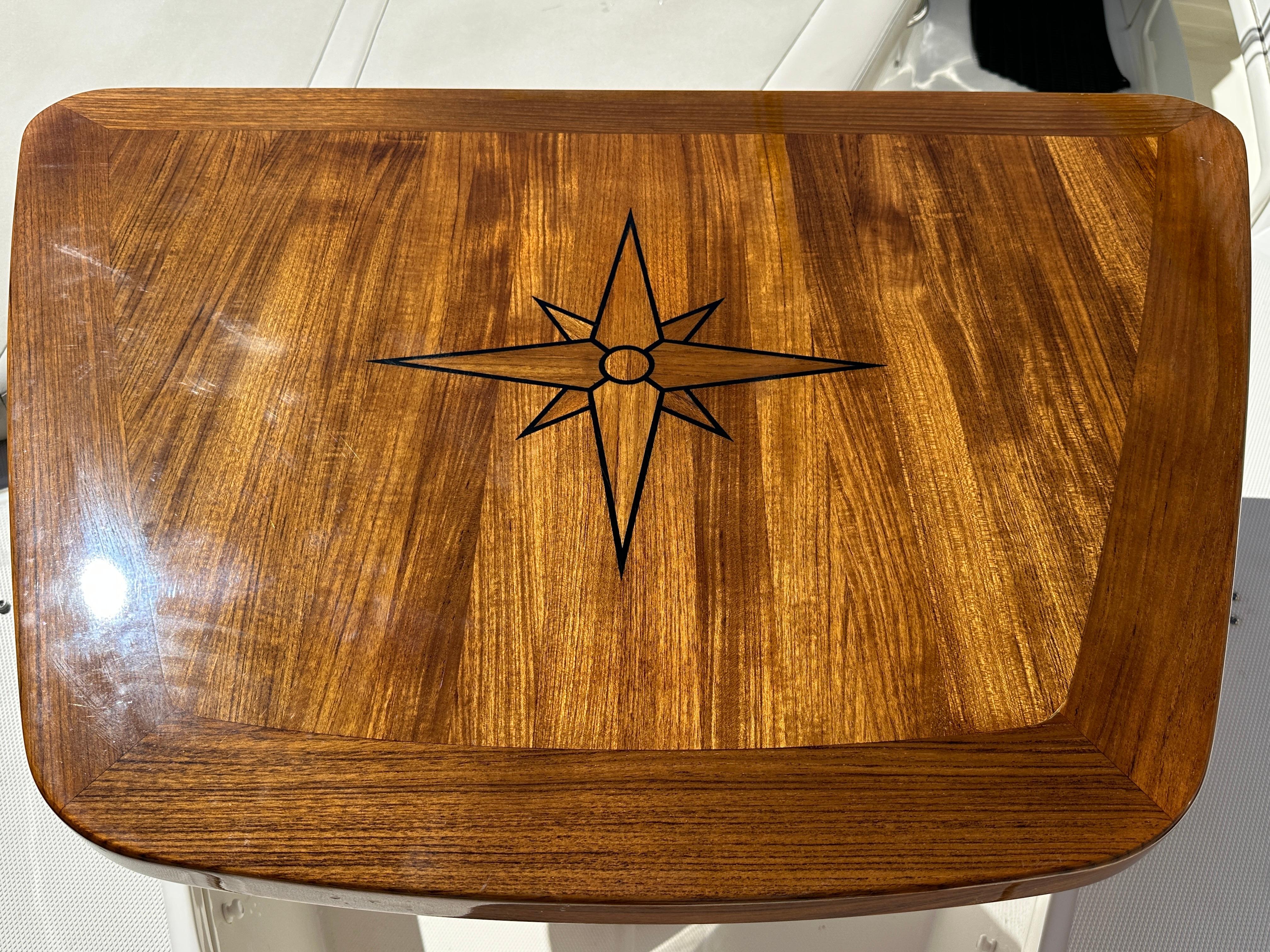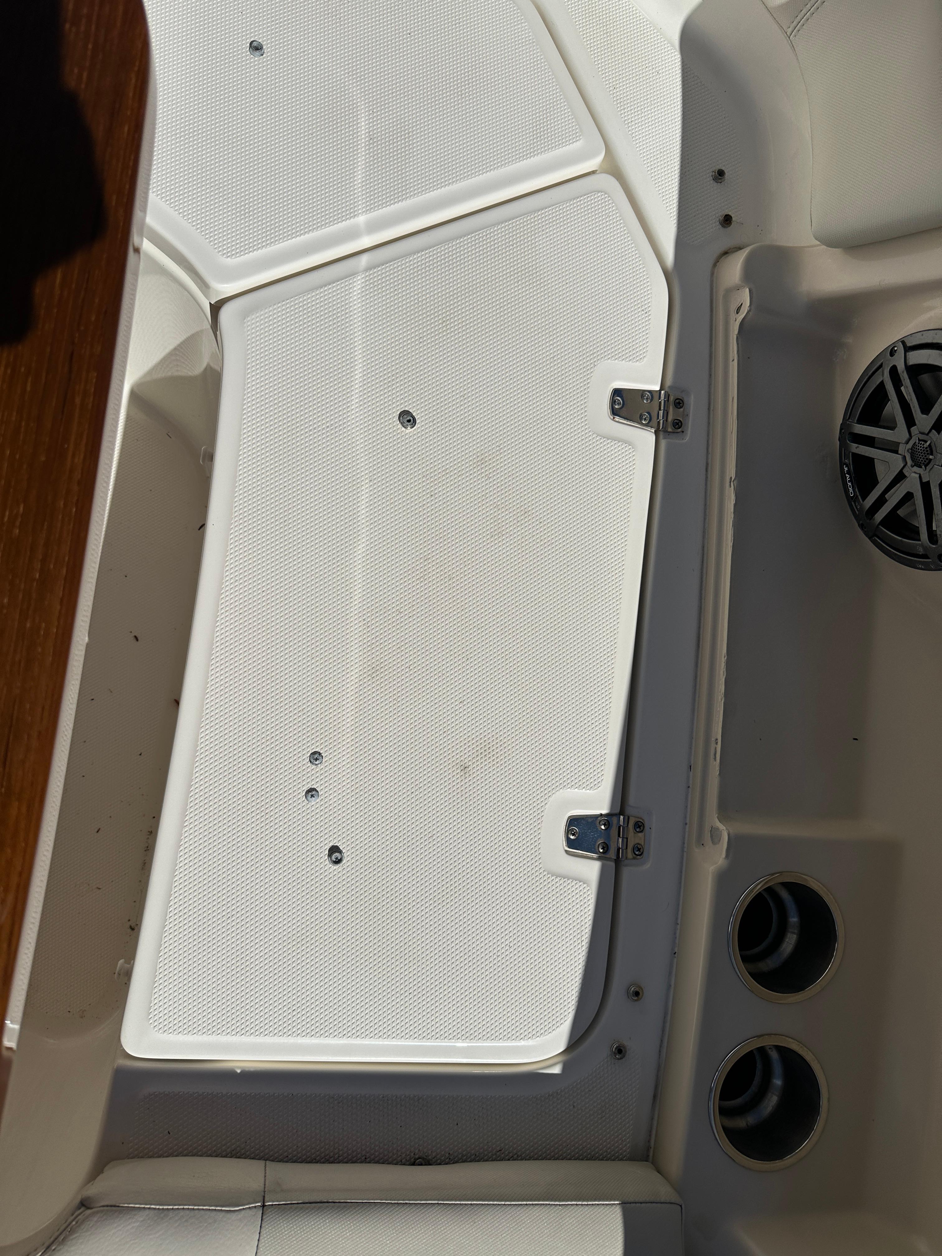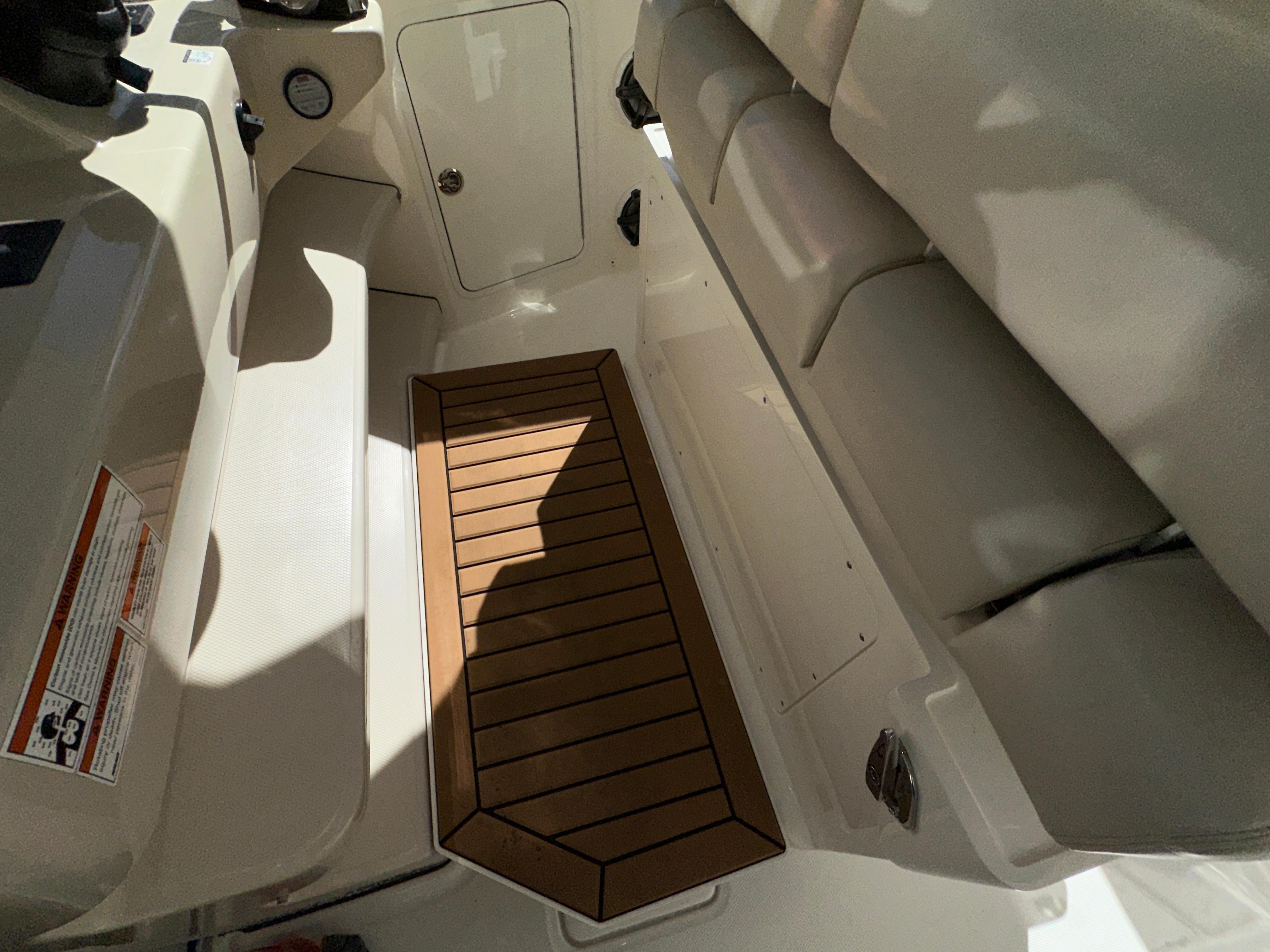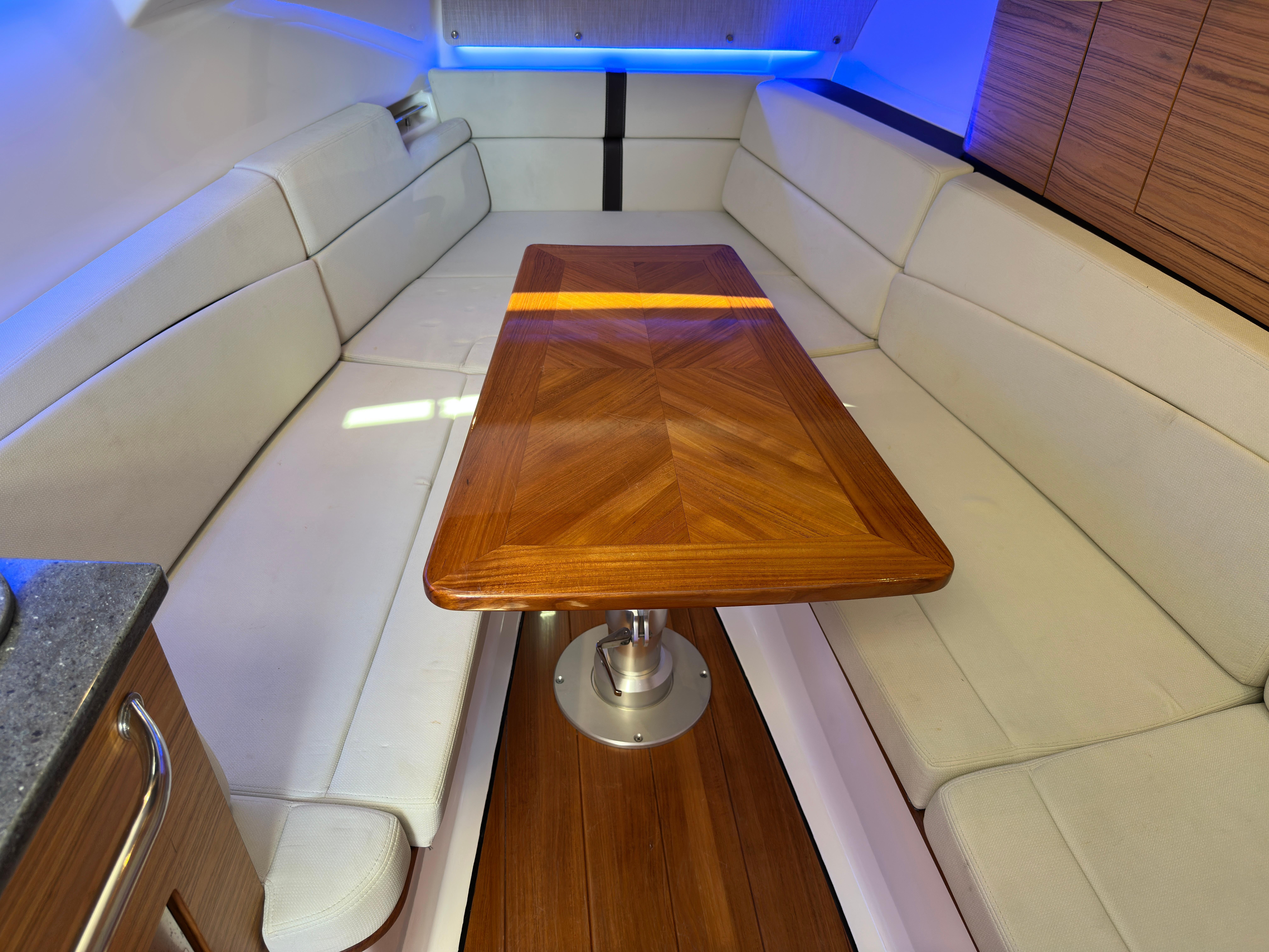 Helm deck second row with 2-person seat with a conversation seatback transforming to