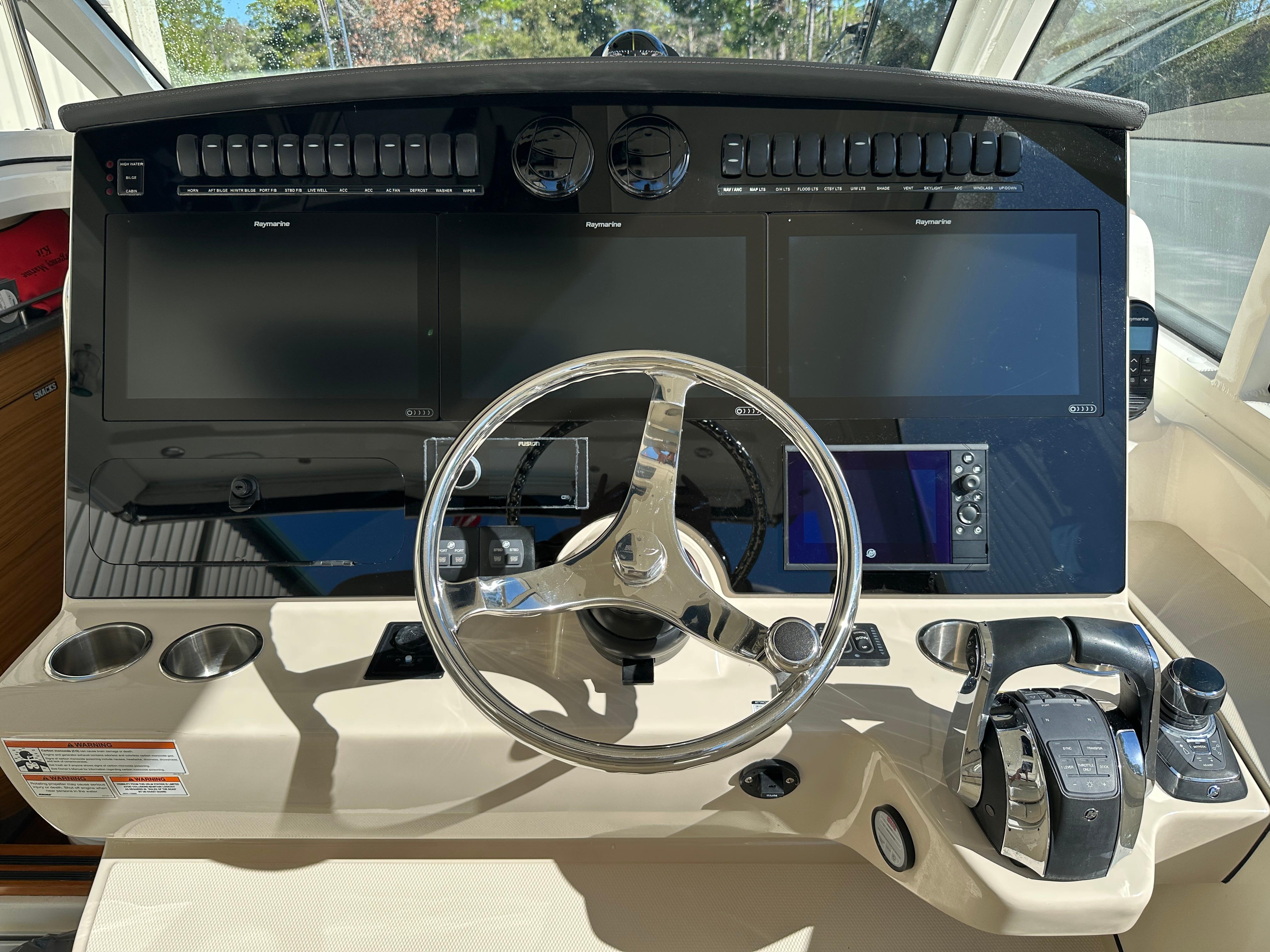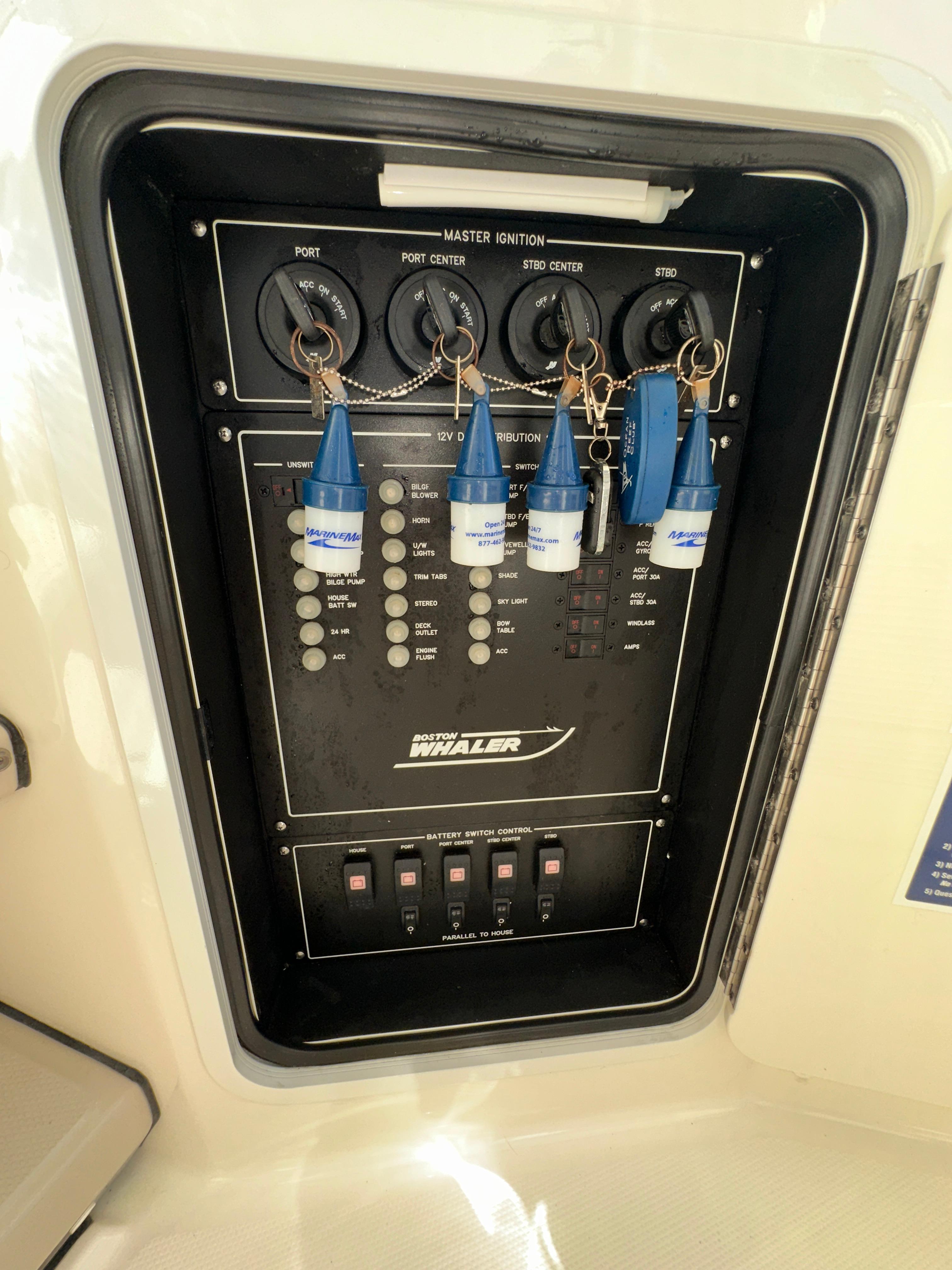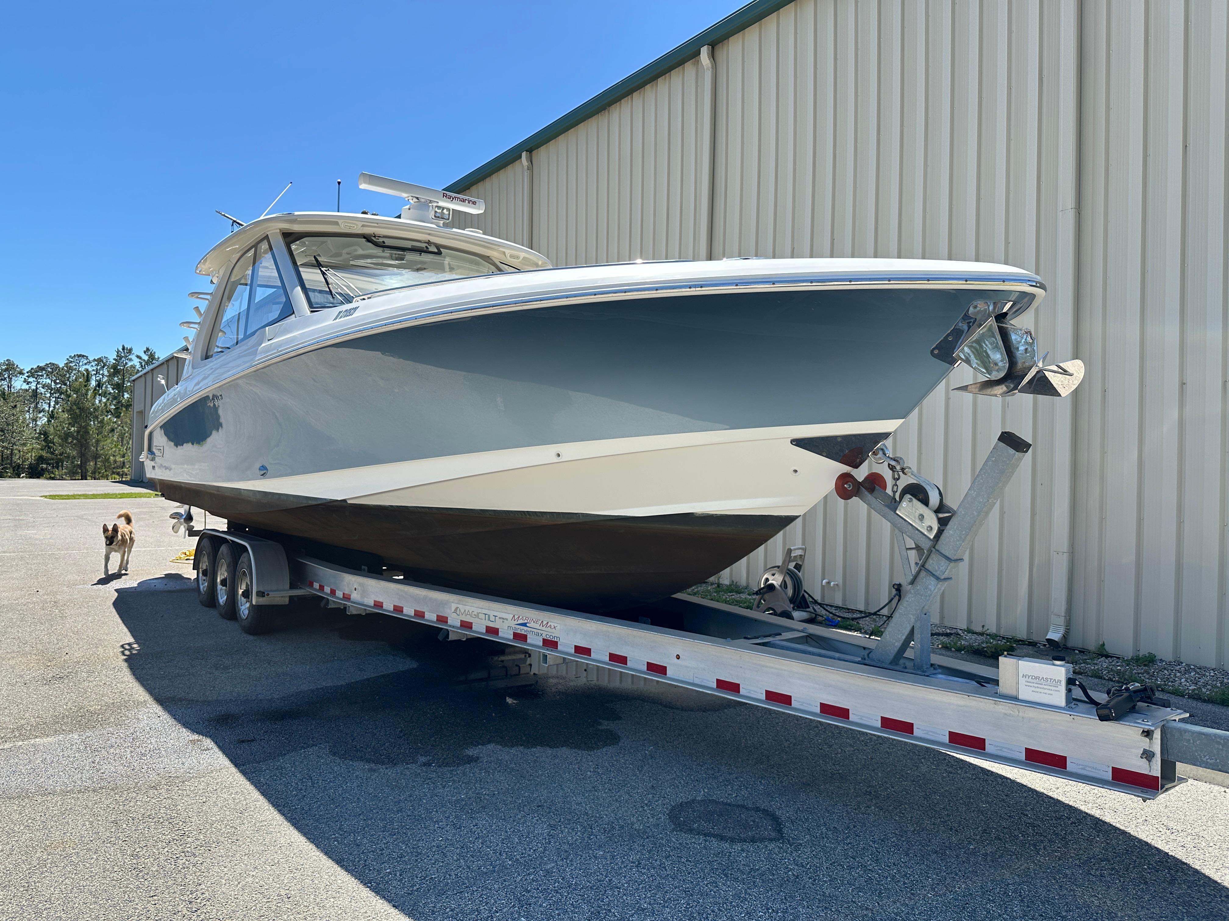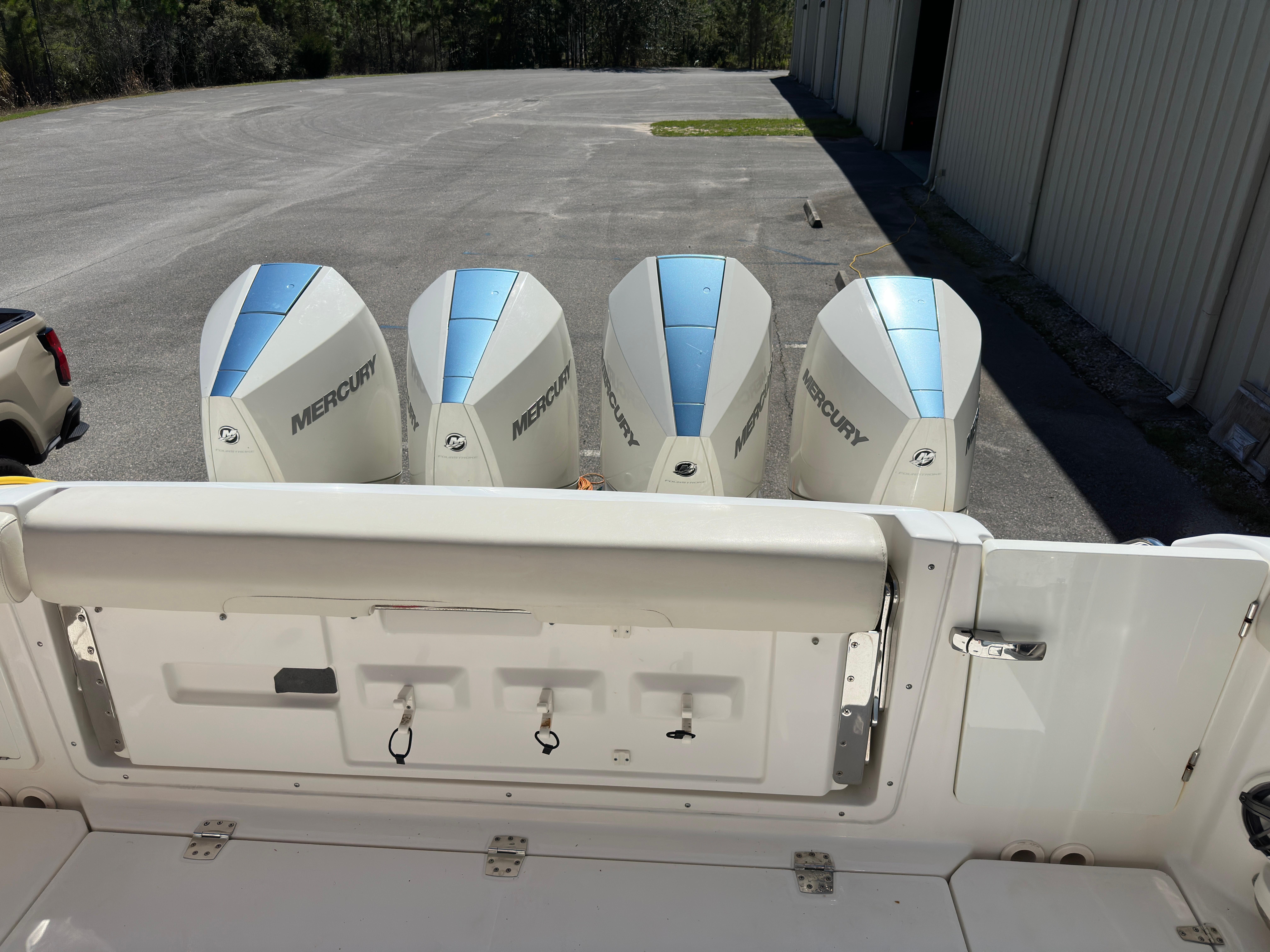 Edwards Yacht Sales is proud to present a fantastic version of the incomparable Boston Whaler Realm 380.This vessel spent a brief period as a tender for a 112' Yacht in the Caribbean. It has been Captain-Maintained and it shows! Trailer-kept in enclosed storage facility for the last couple of years, it has had near-zero wear and tear during that time; essentially a "three-year-used" vessel.- Quad Mercury Verado 300's with Joystick Piloting- Seakeeper for cruising and fishing in comfort - Triple redundant Raymarine Lighthouse 3 displays- Raymarine Magnum Radar - Power sunroof- Kuuma Water Heater- Kenyon Remote Control Electric Grill - Reverso Automatic Onboard Flushing System- Dometic Marine Air Conditioning - Smartcraft Monitoring System with Moving Propeller Alert - Mercury Joystick Piloting System - VesselView 703 Mobile Module - Isotherm Refrigeration- Dual outriggers- Includes Magic Tilt triple axle commercial-level trailer. Too much too list, see 'Standard Features'TOO MANY OPTIONS TO LIST !! SEE Additional descriptions.FULL VESSEL WARRANTY UNTIL NOVEMBER 2028 !!!NOTE: A "Mock Survey" is being performed on this vessel by two experienced Captains to ensure that any minor flaws are corrected BEFORE any sea trial/survey. CONTACT - Capt. Roy Bragg, Edwards Yacht Sales