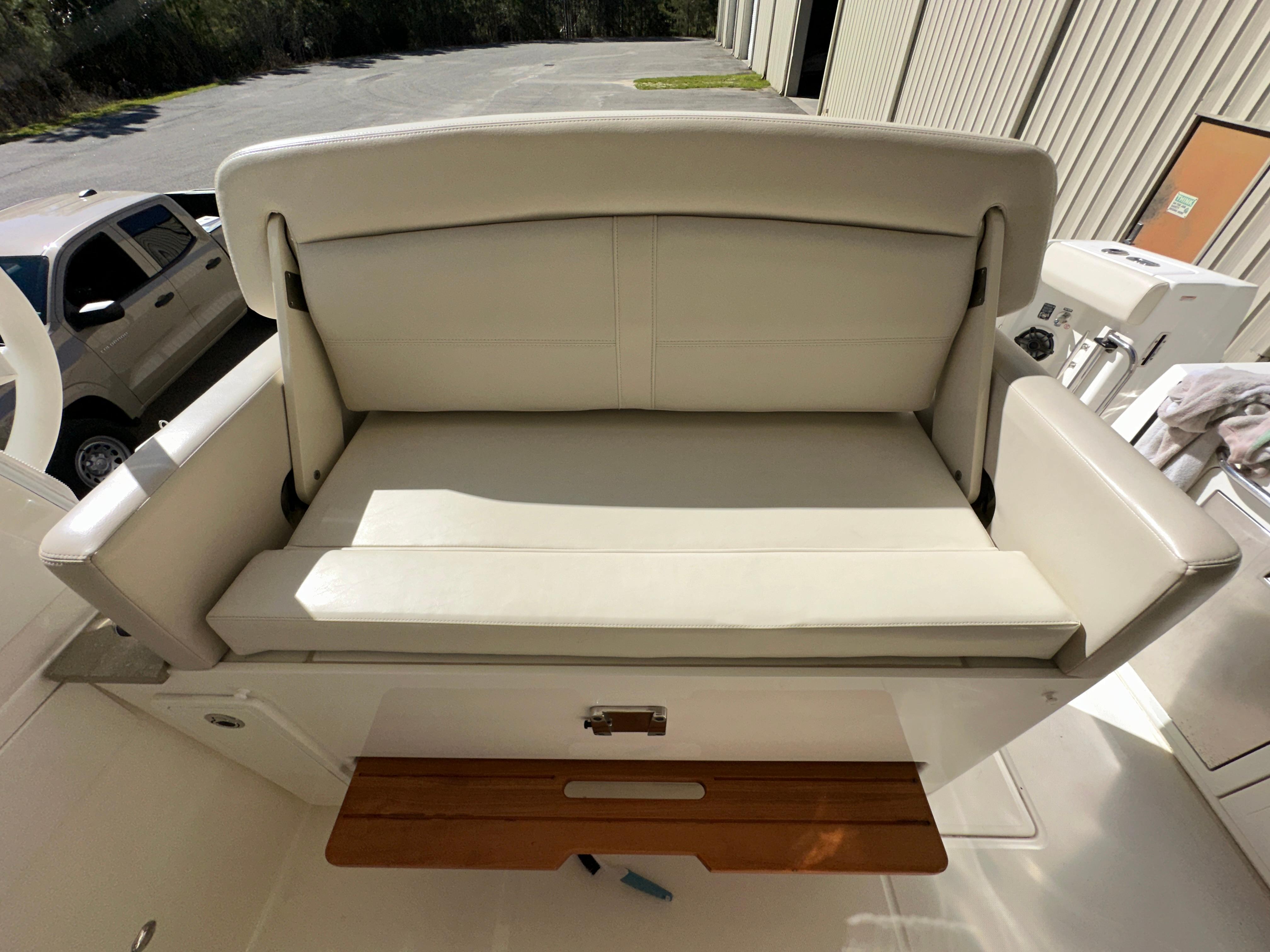 Deluxe port side helm deck seat with armrests (adjustable slide and swivel enabling