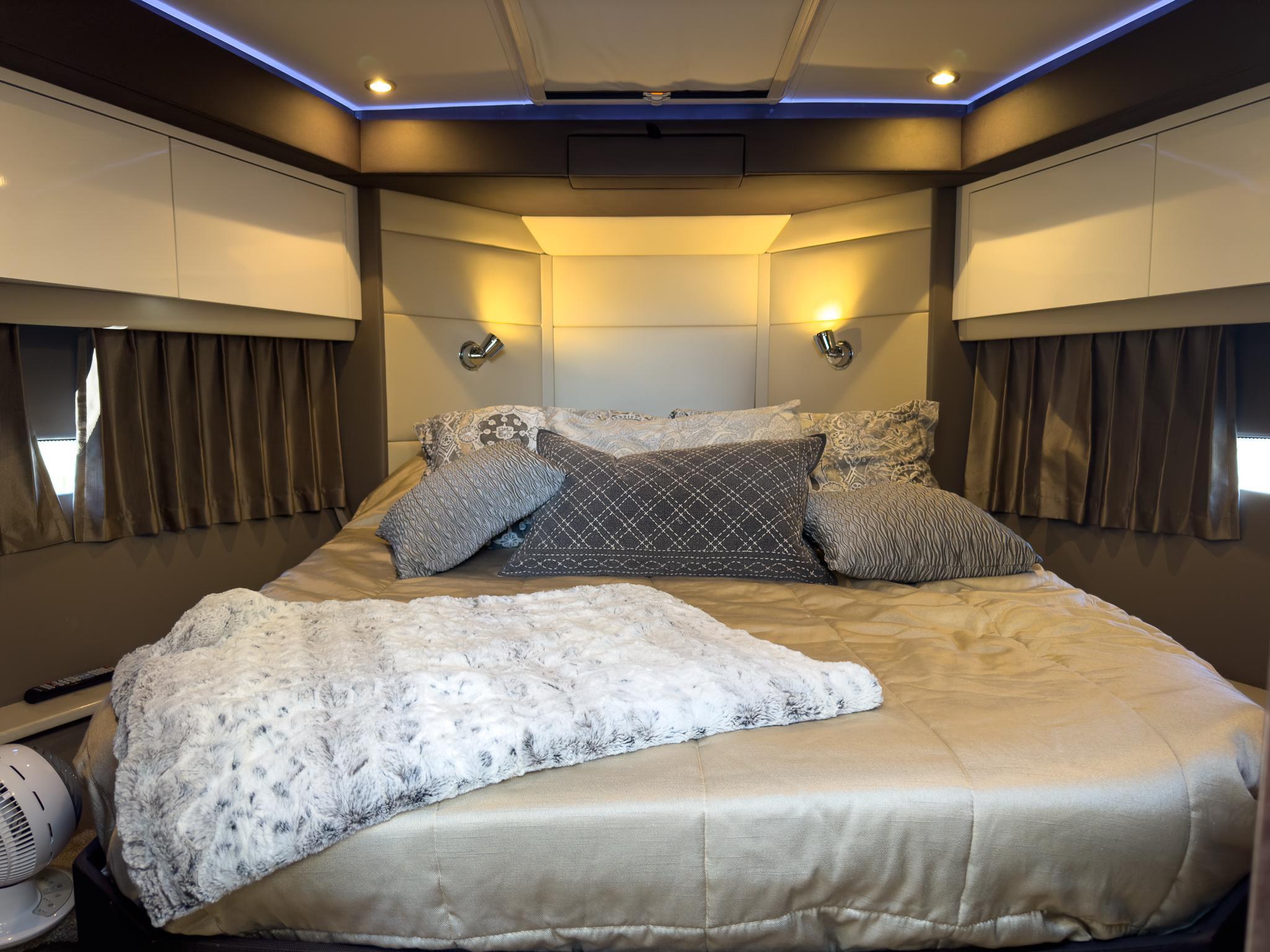 - Lighting: Illumination is provided by recessed overhead LED lights controlled by a rocker switch. Two bedside reading lights. Natural light and ventilation provided by one 11” hull side window with opening portlight.
