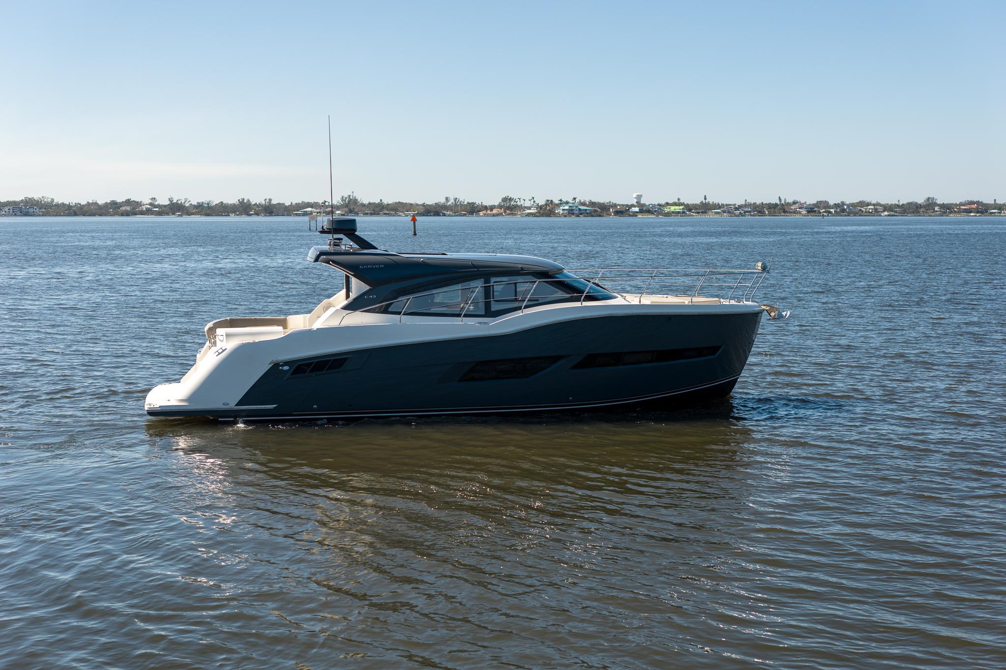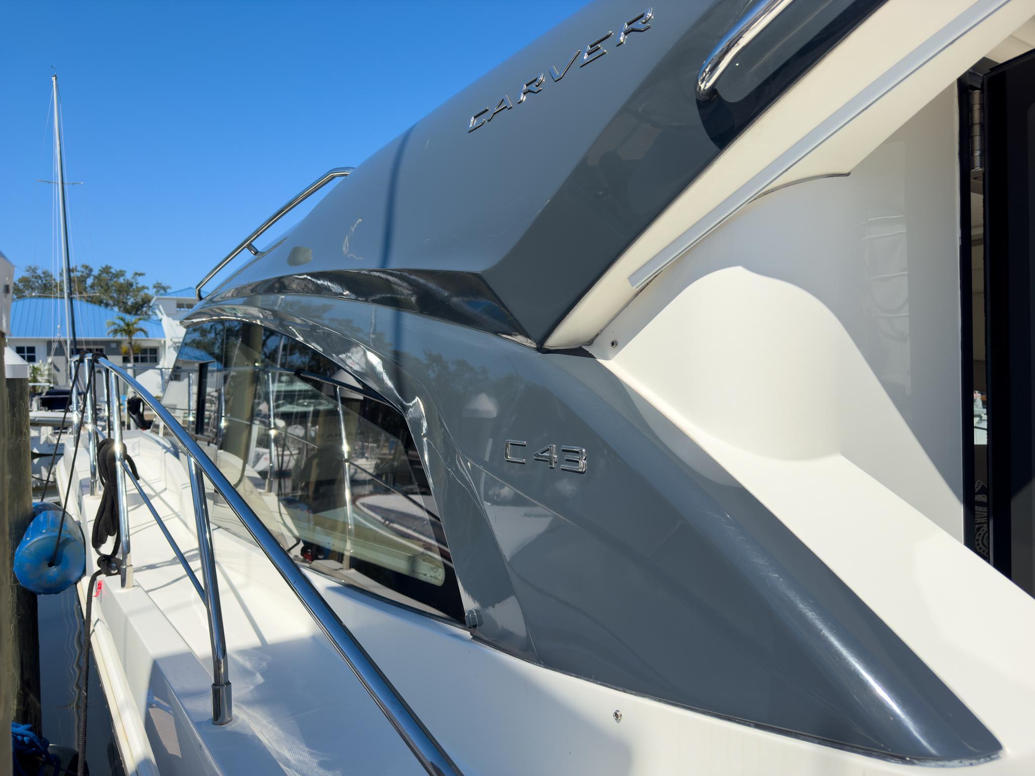 The C43 Coupe boasts a broad, single-level salon with 6-feet, 8-inches of headroom, which becomes part of a seamless indoor/outdoor living space when the glass cockpit doors are open. It also features two spacious staterooms, each with 6-feet, 6-inches of headroom, a well-appointed galley, a private owners' head with separate stall shower, and a separate day-guest head. There's abundant seating throughout the boat, an expansive swim platform, a retractable electric glass sunroof, and an available retractable sunshade. In addition, wide side-decks provide easy access to the foredeck.The C43 is much more than her accommodations and unique design elements; however, her hull and deck feature both hand-laid and vacuum-infused structural and nonstructural fiberglass and core laminates for superior strength. Below the waterline, the hull bottom is bead-blasted to ensure optimal bonding with the sprayed-on, anti-fouling paint, which creates an exceptionally smooth running surface. Carver also incorporates fiberglass stringers for structural integrity and better performance, while its unique vacuum-bagging technology reduces unnecessary weight.Yard work completed 1/2025! New hull paint, new bottom paint, new running gear paint, new underwater lights! Very well maintained.