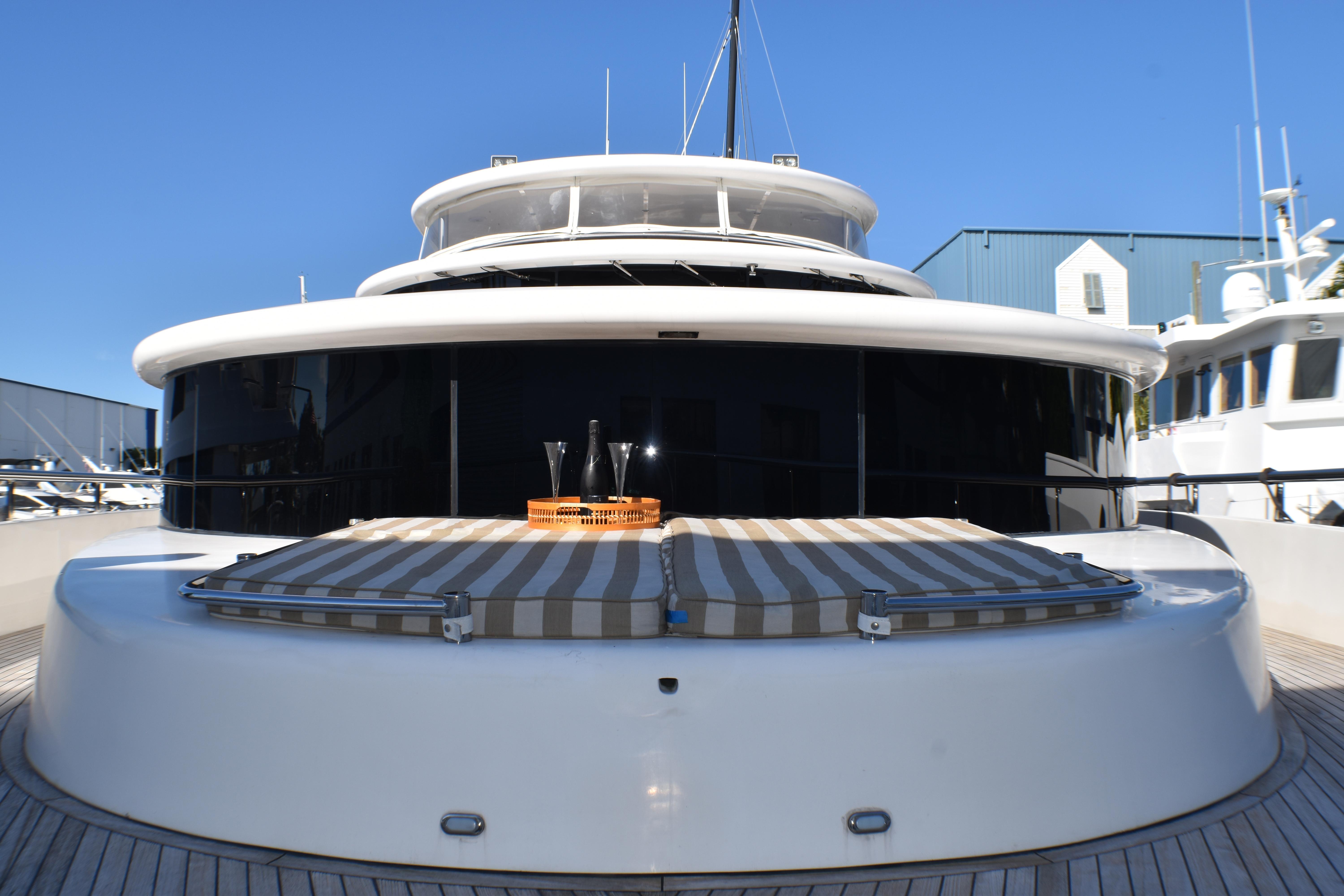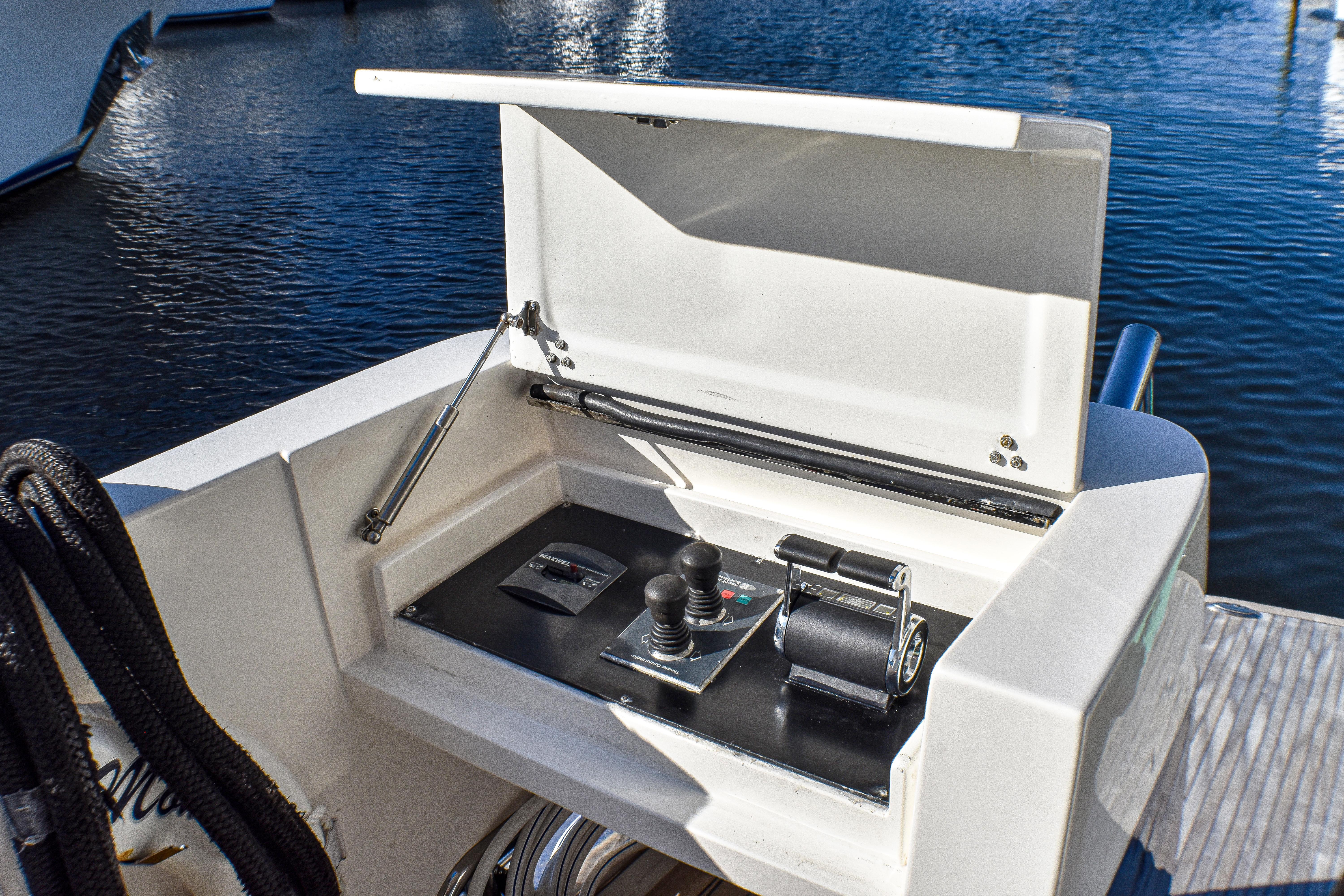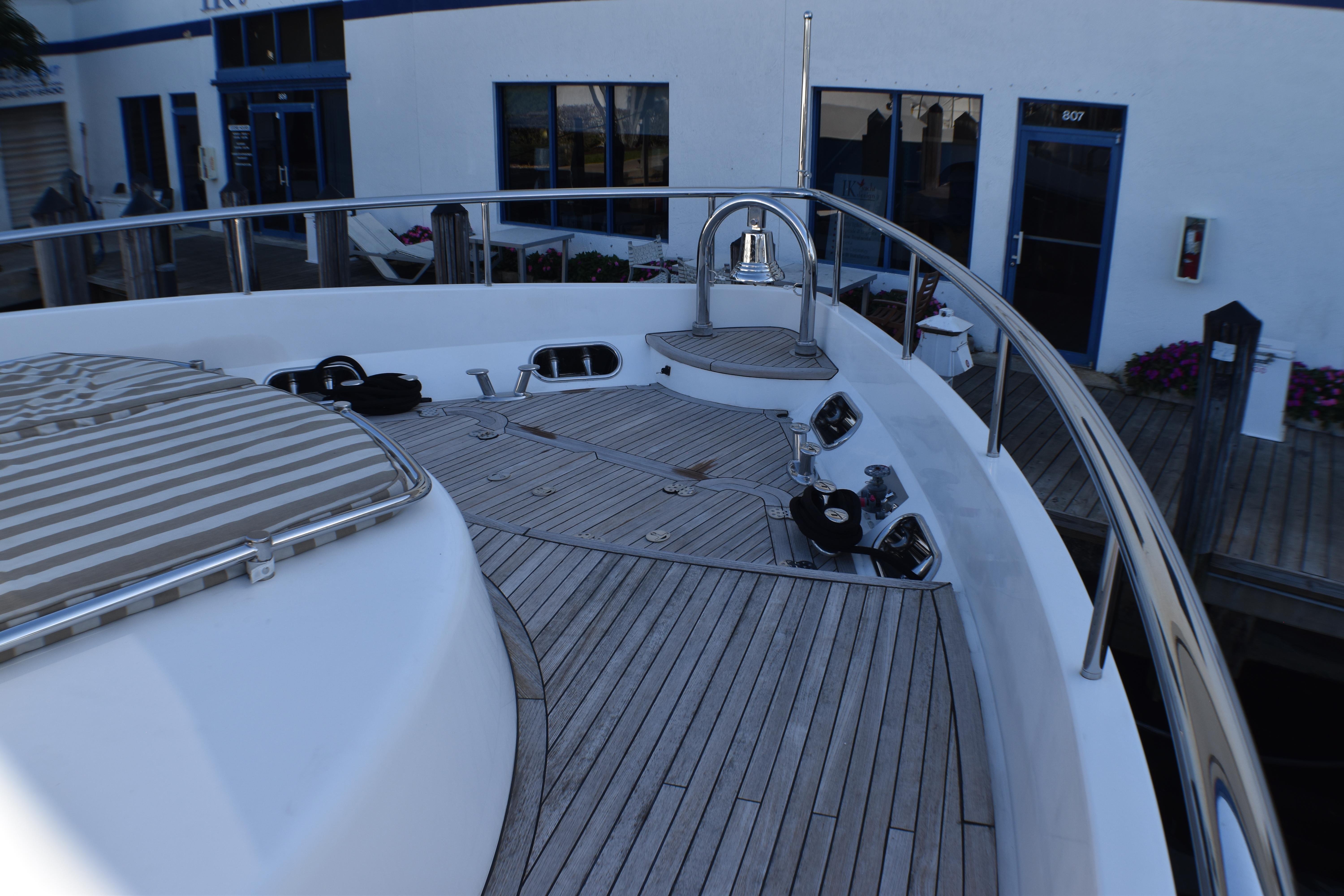 With a wide beam of 23'6'' the main deck has wide safe walkarounds with polished stainless steel mega yacht 3.6'' hand rails. Bow cushions forward and hidden anchor hardware that makes the bow area unobstructed.