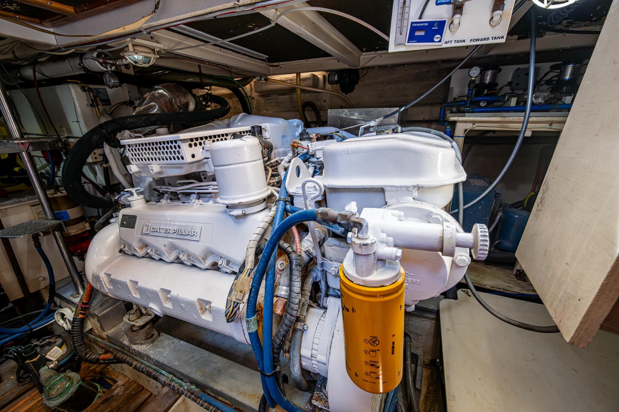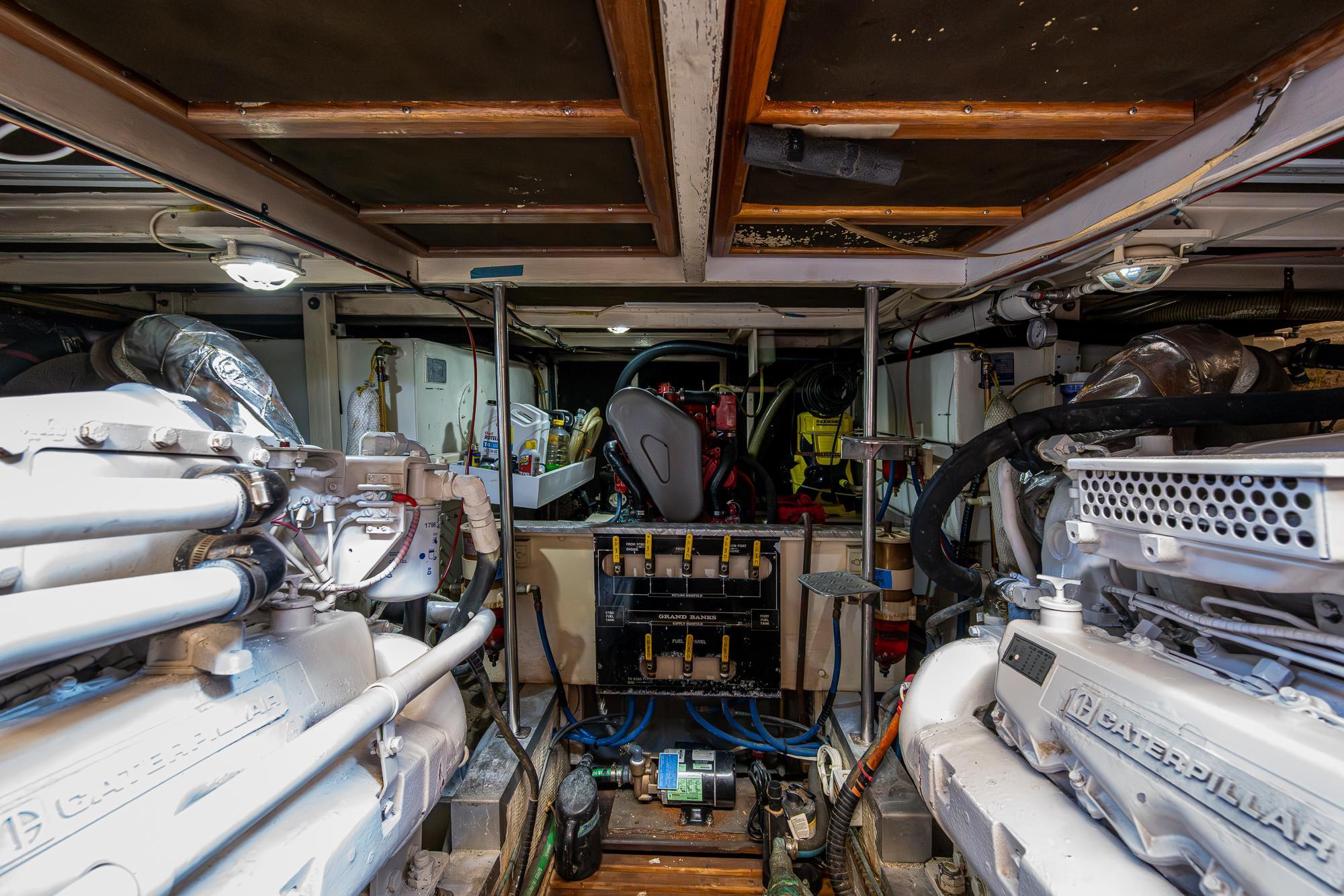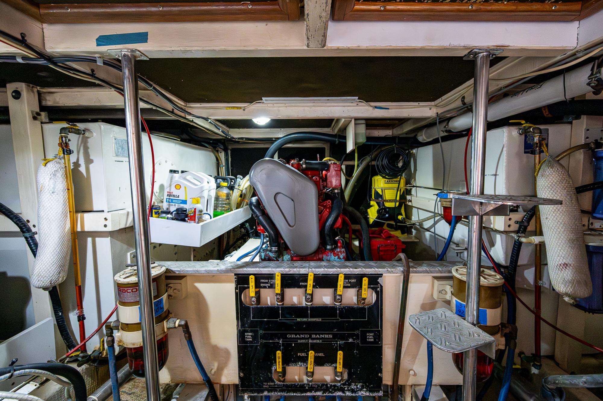 Access into the Engine Room is under the steps down to the forward accommodations. There is additional access via a sole hatch located mid-salon.