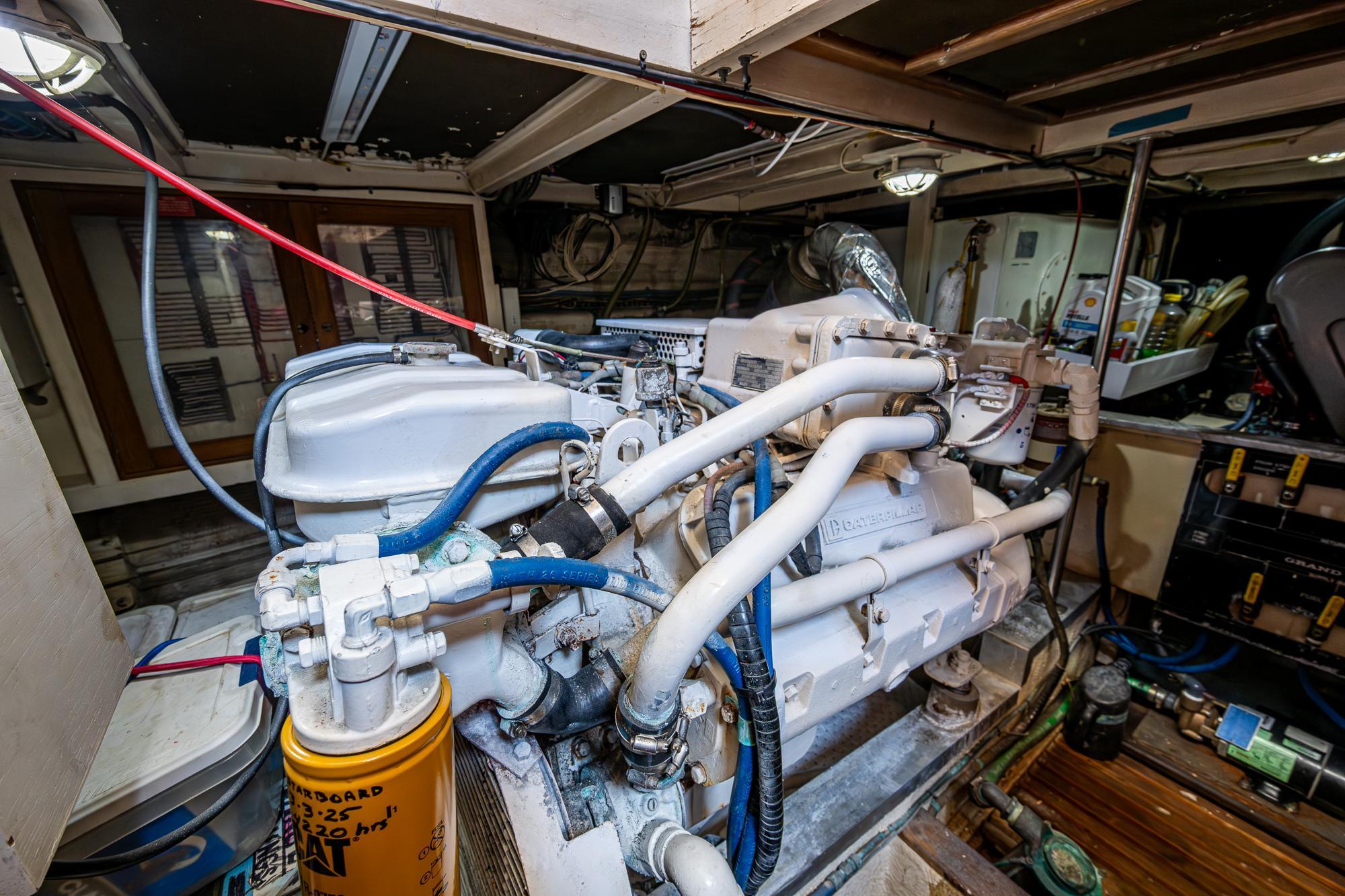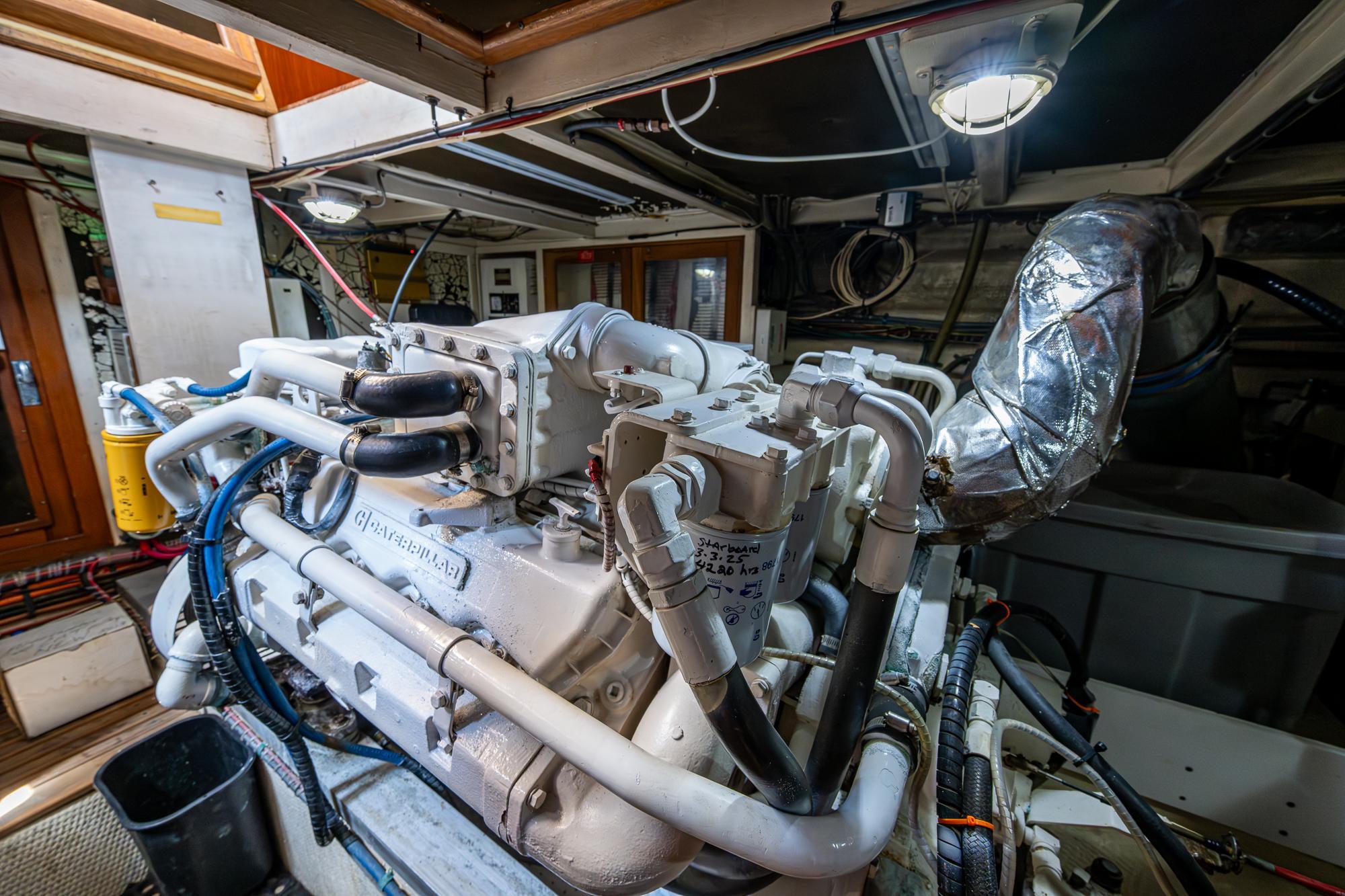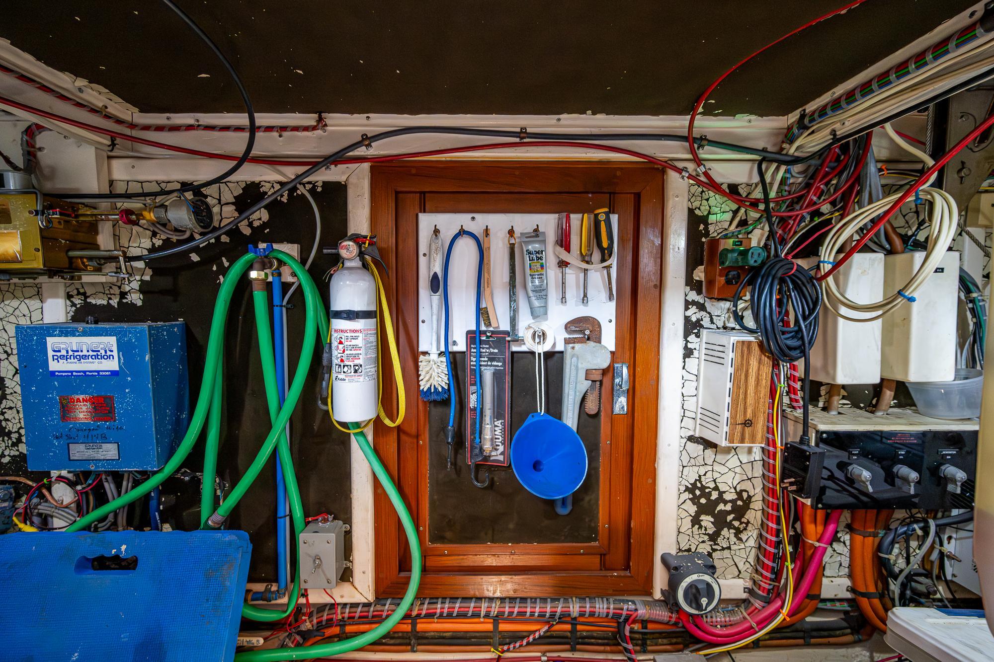 Access into the Engine Room is under the steps down to the forward accommodations. There is additional access via a sole hatch located mid-salon.