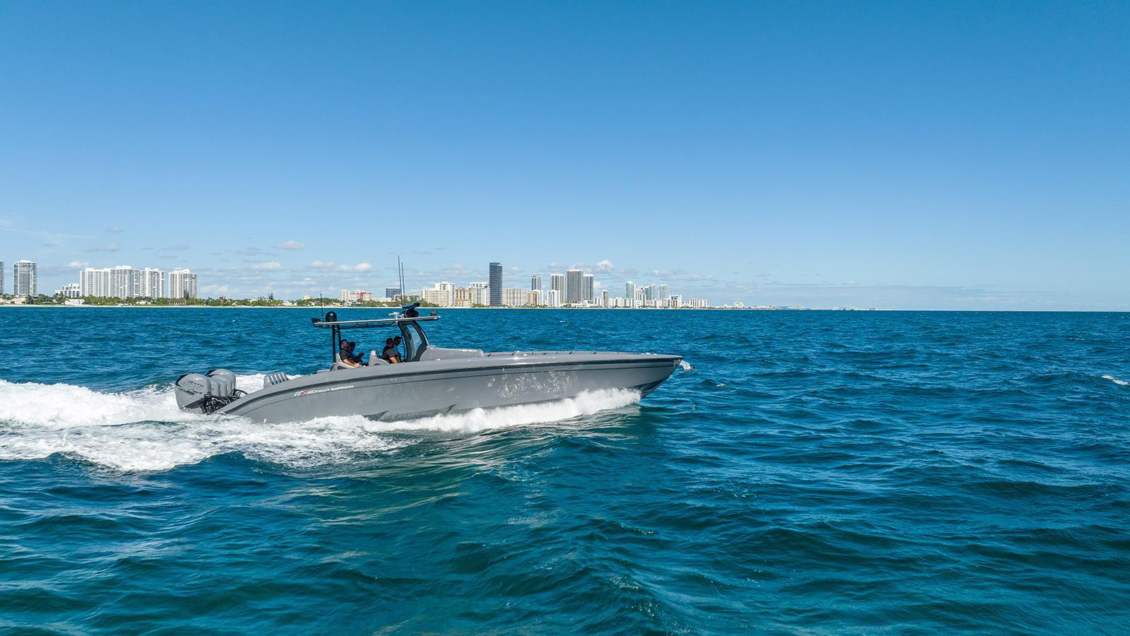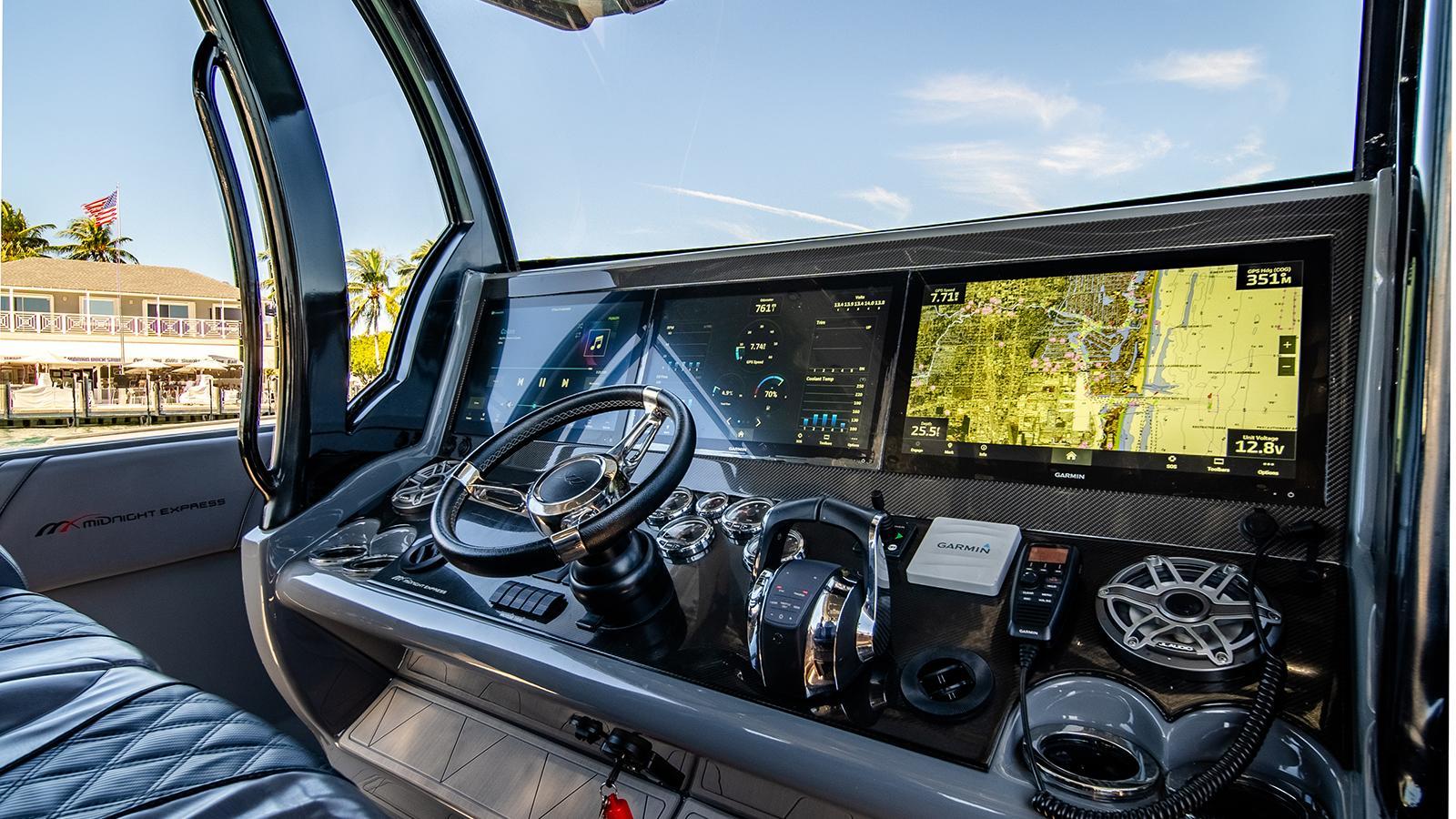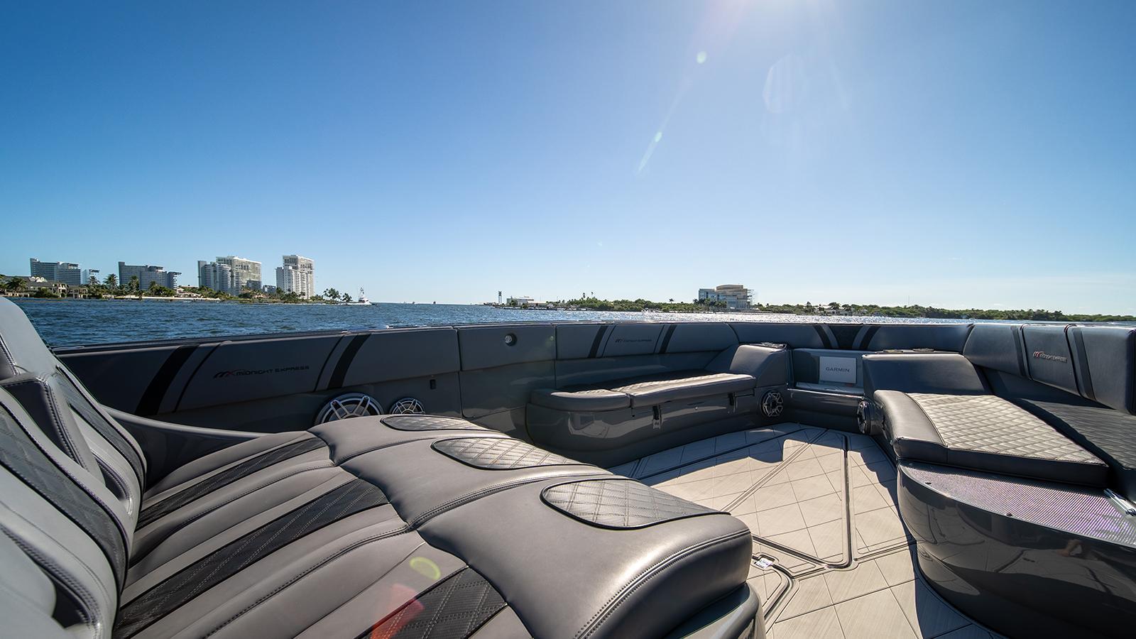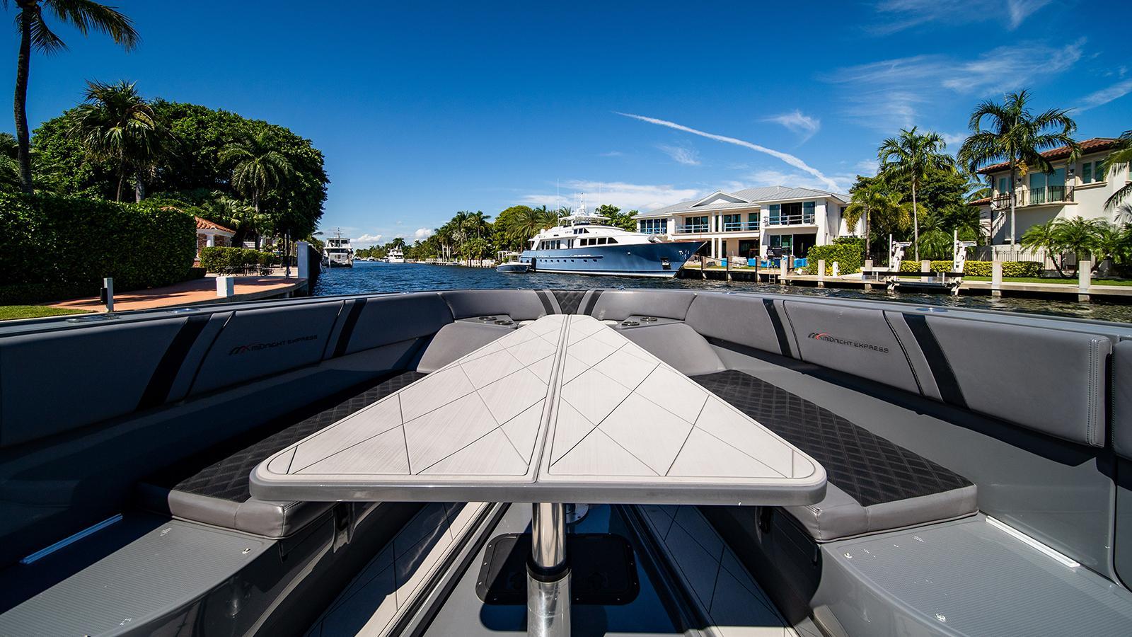 The stunning 43' (13.10m) Midnight Express DUCHESS seamlessly combines luxury and performance on the water. Her striking design and undeniable style immediately captures the eye with a sleek gray hull complemented by black accents, chrome finishes, and high-quality diamond stitching upholstery. The 43' Midnight Express is not only aesthetically pleasing but offers a thoughtfully designed deck layout ideal for entertaining. Her spacious bow area features triple forward-facing loungers, bench seating with built-in storage, and a hi-low table that converts to a sun pad, which can also be stowed away when not in use. The command center on board is equipped with three large 22' Garmin display screens, advanced electronics, and dual helm seating. Aft, you'll find an additional entertainment space in the cockpit with a summer kitchen that includes a sink, two refrigerators, an insulated cooler, and rear bench seating. Crafted with meticulous attention to detail, you'll find finishing touches throughout, such as her premium sound system, designated tackle storage, extra rod holders, and a dive door with a swim ladder for easy access to the water.Forward of the helm through the automatic doors is the interior cabin with u-shaped convertible seating that effortlessly transitions into a cozy sleeping area and a dedicated head that provides added convenience for extended excursions on the water or overnight stays.Her performance is truly exceptional, powered by five Mercury Verado 400hp outboard engines that deliver impressive speed and agility for cruising and water sports, making her a remarkable vessel that combines power, luxury, and versatility.KEY FEATURES:Quad 400RsHighly desired color scheme Air conditioning at the helm High/Low table at the bowNew Batteries and Battery charger 11/2023