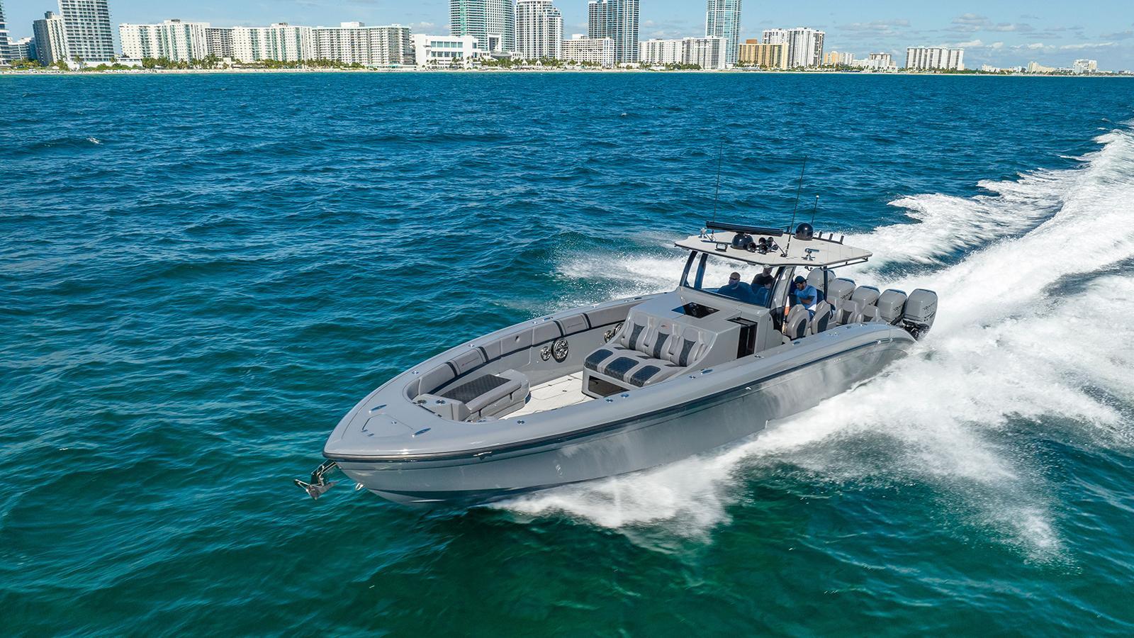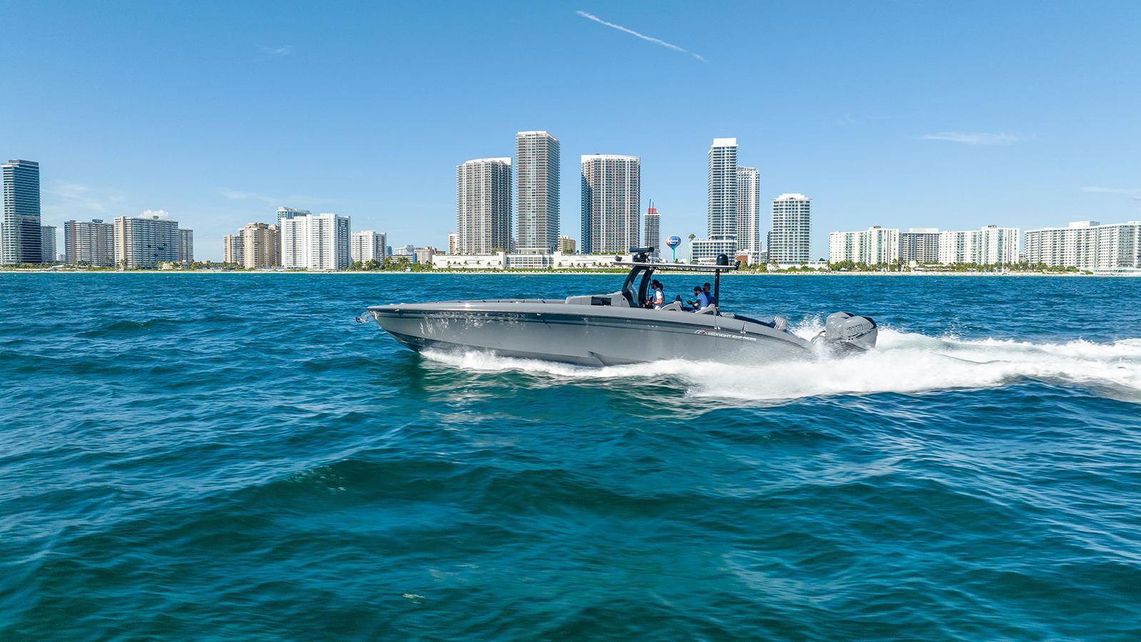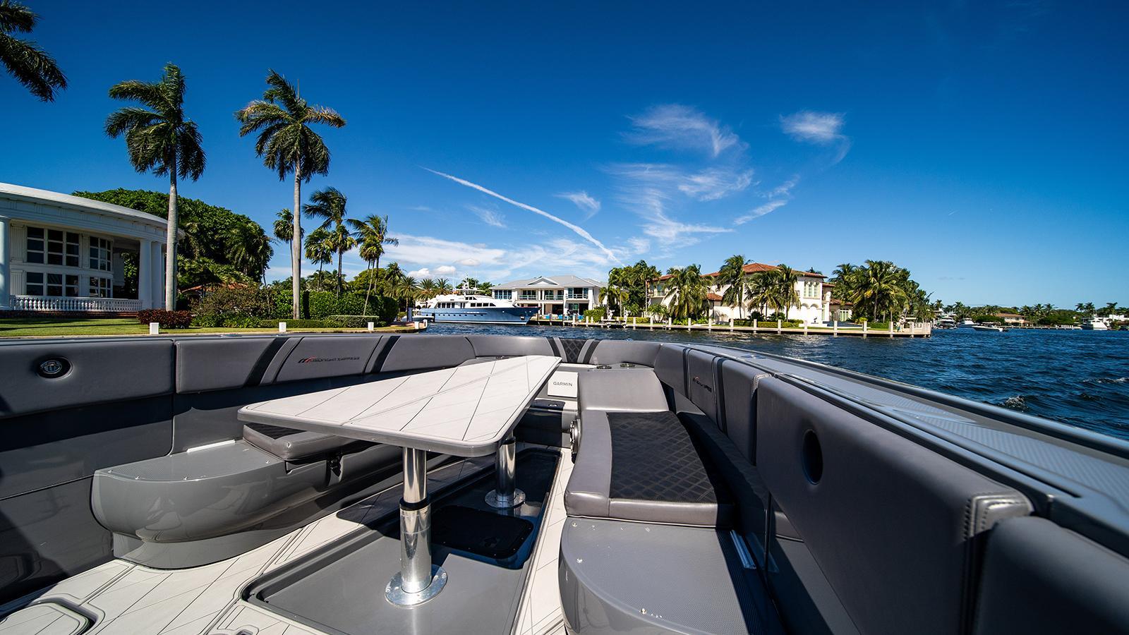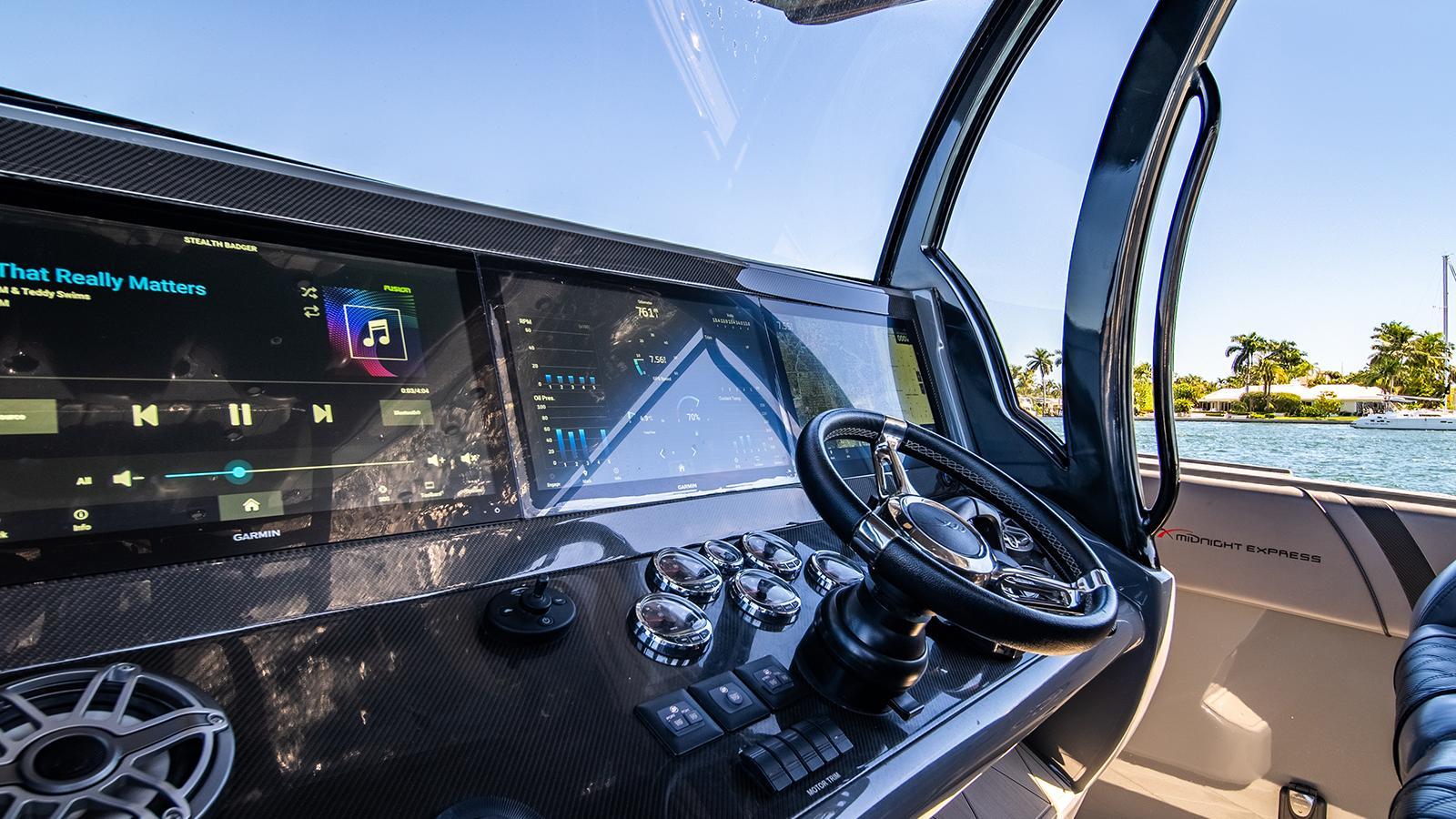 The stunning 43' (13.10m) Midnight Express DUCHESS seamlessly combines luxury and performance on the water. Her striking design and undeniable style immediately captures the eye with a sleek gray hull complemented by black accents, chrome finishes, and high-quality diamond stitching upholstery. The 43' Midnight Express is not only aesthetically pleasing but offers a thoughtfully designed deck layout ideal for entertaining. Her spacious bow area features triple forward-facing loungers, bench seating with built-in storage, and a hi-low table that converts to a sun pad, which can also be stowed away when not in use. The command center on board is equipped with three large 22' Garmin display screens, advanced electronics, and dual helm seating. Aft, you'll find an additional entertainment space in the cockpit with a summer kitchen that includes a sink, two refrigerators, an insulated cooler, and rear bench seating. Crafted with meticulous attention to detail, you'll find finishing touches throughout, such as her premium sound system, designated tackle storage, extra rod holders, and a dive door with a swim ladder for easy access to the water.Forward of the helm through the automatic doors is the interior cabin with u-shaped convertible seating that effortlessly transitions into a cozy sleeping area and a dedicated head that provides added convenience for extended excursions on the water or overnight stays.Her performance is truly exceptional, powered by five Mercury Verado 400hp outboard engines that deliver impressive speed and agility for cruising and water sports, making her a remarkable vessel that combines power, luxury, and versatility.KEY FEATURES:Quad 400RsHighly desired color scheme Air conditioning at the helm High/Low table at the bowNew Batteries and Battery charger 11/2023
