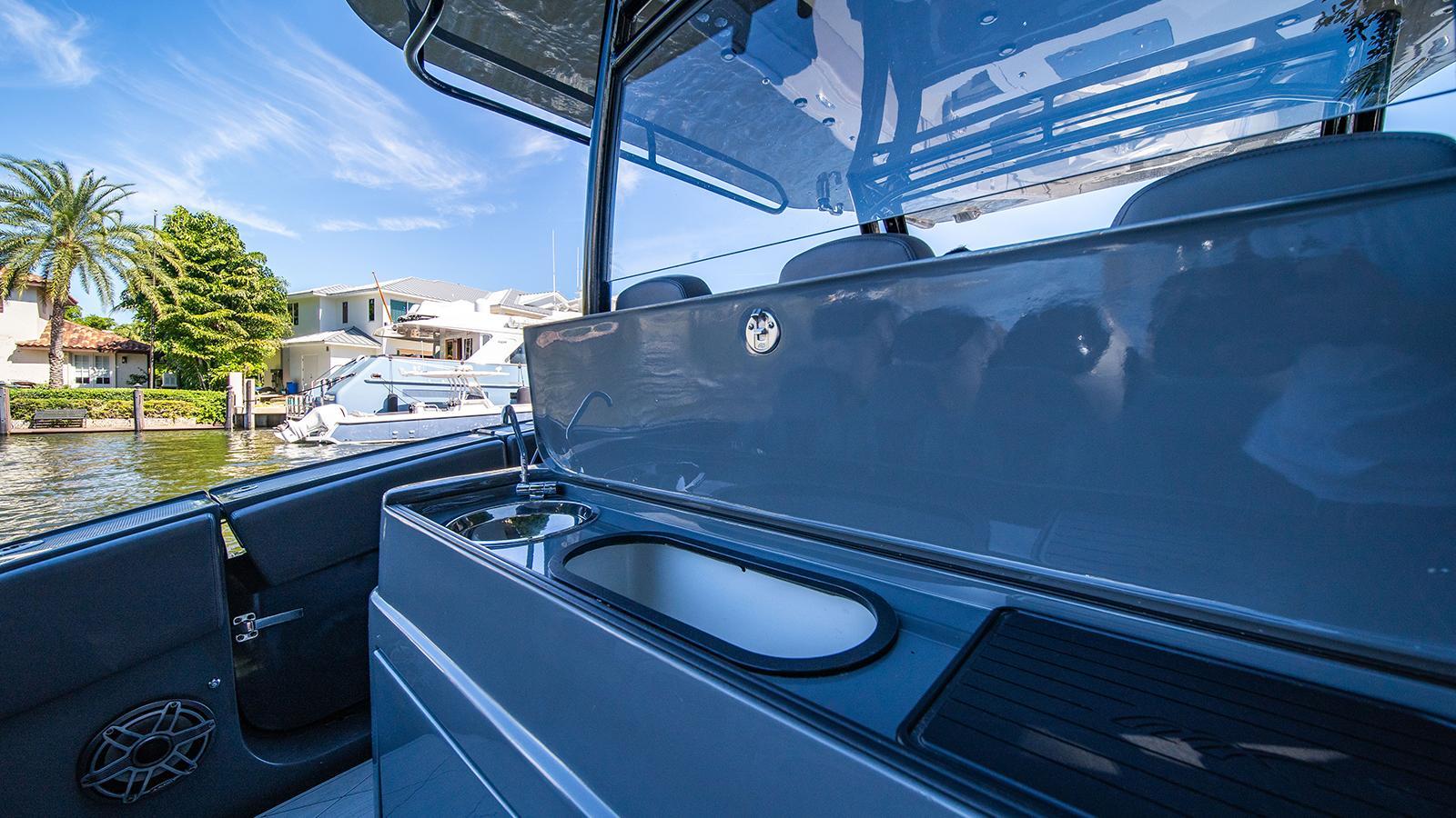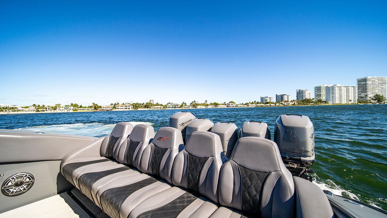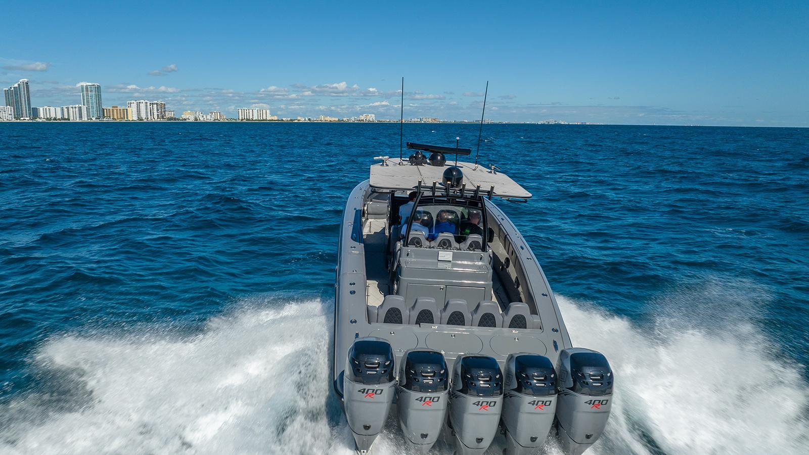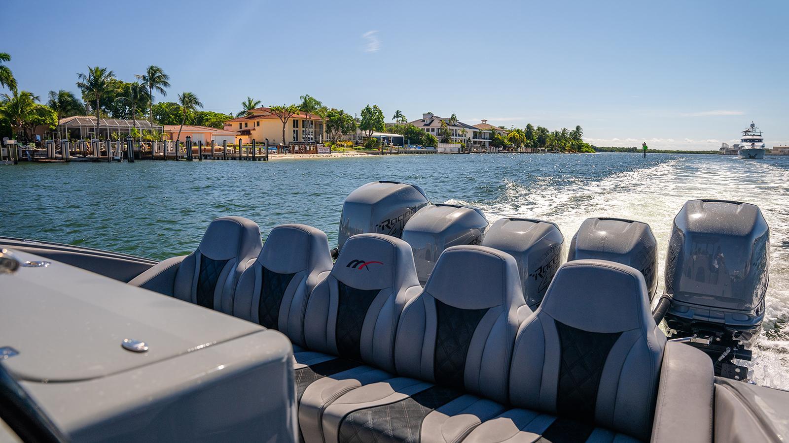 The stunning 43' (13.10m) Midnight Express DUCHESS seamlessly combines luxury and performance on the water. Her striking design and undeniable style immediately captures the eye with a sleek gray hull complemented by black accents, chrome finishes, and high-quality diamond stitching upholstery. The 43' Midnight Express is not only aesthetically pleasing but offers a thoughtfully designed deck layout ideal for entertaining. Her spacious bow area features triple forward-facing loungers, bench seating with built-in storage, and a hi-low table that converts to a sun pad, which can also be stowed away when not in use. The command center on board is equipped with three large 22' Garmin display screens, advanced electronics, and dual helm seating. Aft, you'll find an additional entertainment space in the cockpit with a summer kitchen that includes a sink, two refrigerators, an insulated cooler, and rear bench seating. Crafted with meticulous attention to detail, you'll find finishing touches throughout, such as her premium sound system, designated tackle storage, extra rod holders, and a dive door with a swim ladder for easy access to the water.Forward of the helm through the automatic doors is the interior cabin with u-shaped convertible seating that effortlessly transitions into a cozy sleeping area and a dedicated head that provides added convenience for extended excursions on the water or overnight stays.Her performance is truly exceptional, powered by five Mercury Verado 400hp outboard engines that deliver impressive speed and agility for cruising and water sports, making her a remarkable vessel that combines power, luxury, and versatility.KEY FEATURES:Quad 400RsHighly desired color scheme Air conditioning at the helm High/Low table at the bowNew Batteries and Battery charger 11/2023