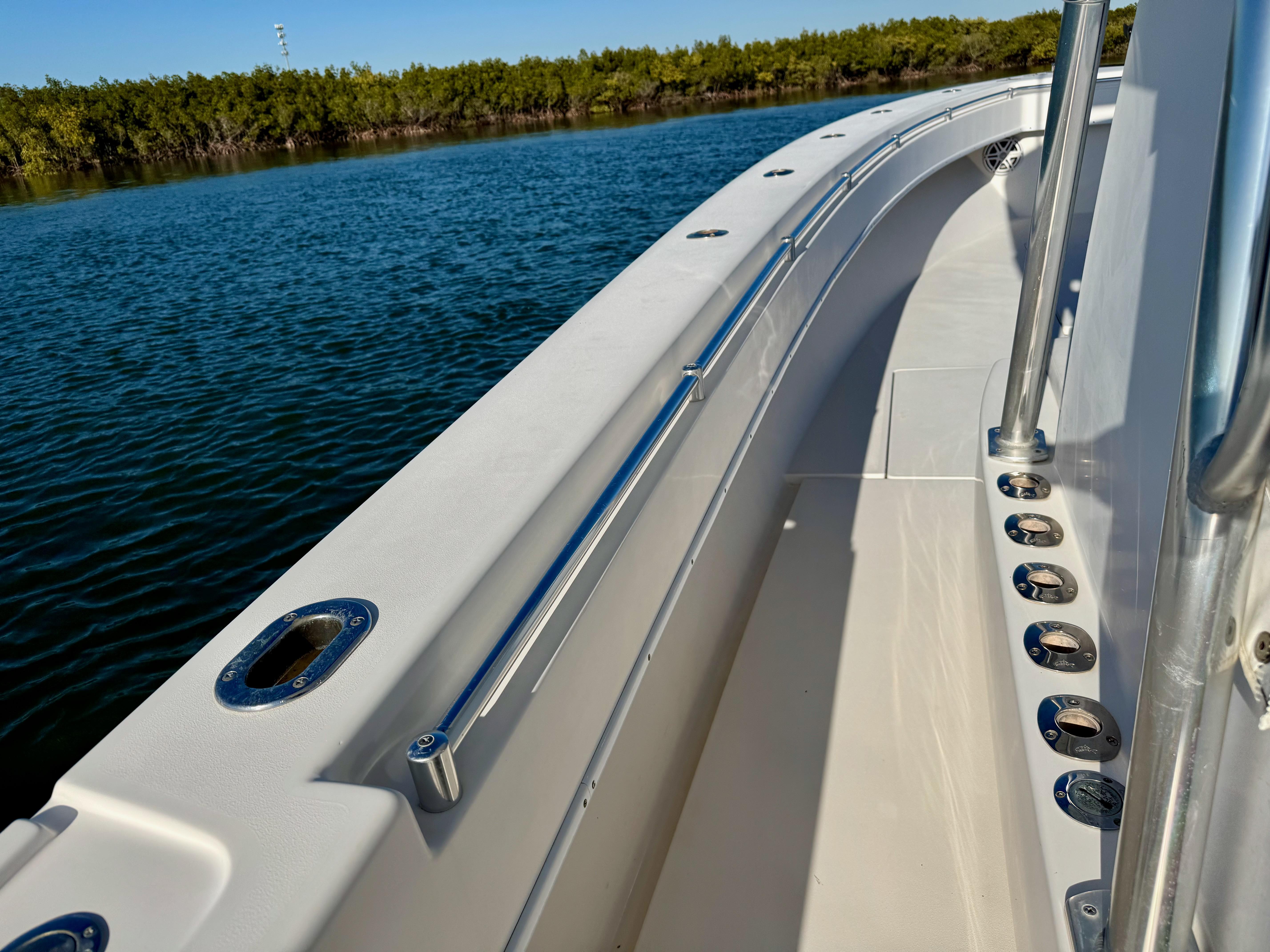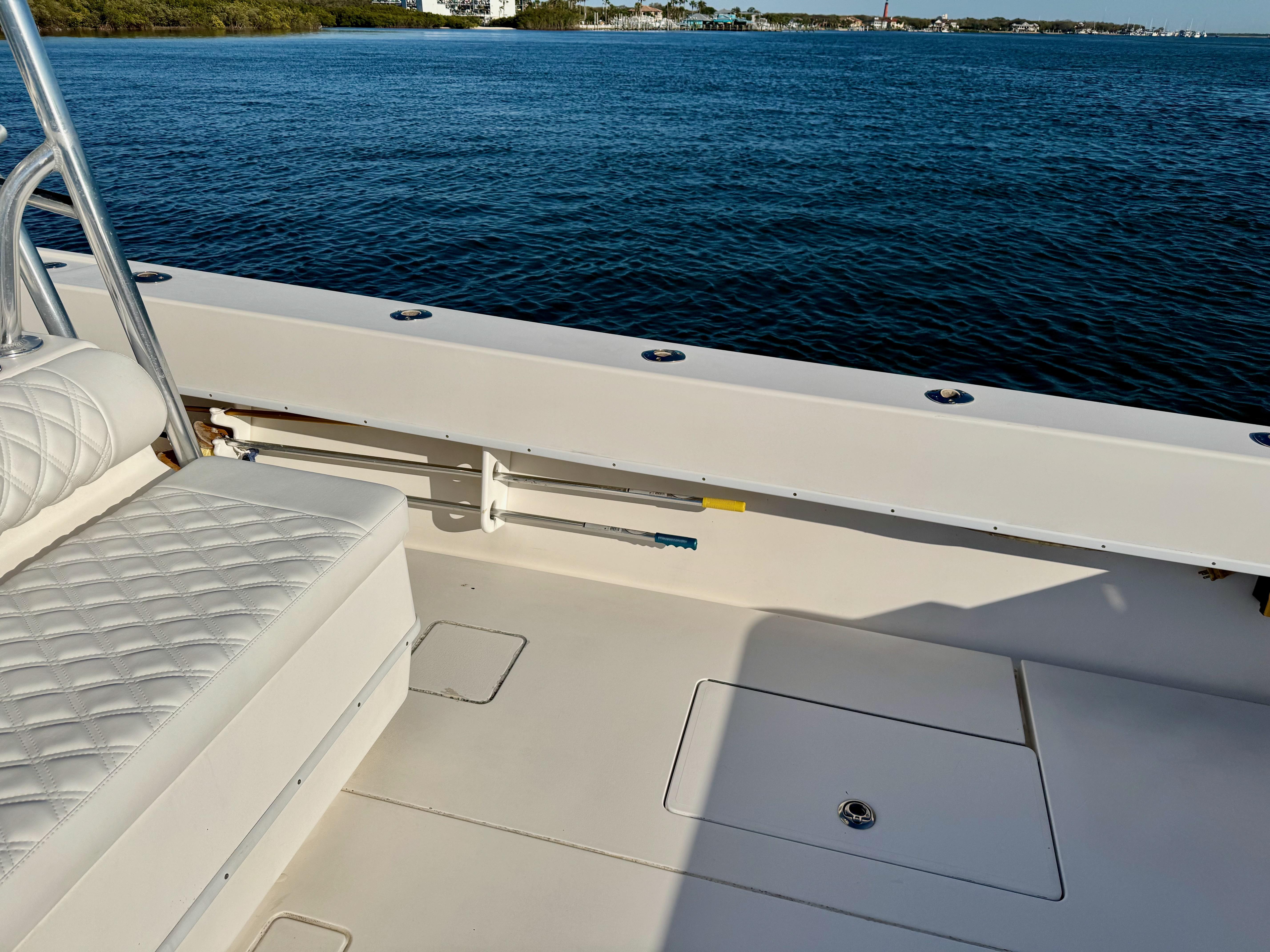 Perfect example of a well cared for 39st! She has been owned by the seller since 2011. Recently repowered with 2020 triple Yamaha 300s, only 425 hours and remaining warranty until march 3rd 2026! Vessel sports updated Furuno electronics, TZtouch 2 displays on lower station and a single TZtouch 3 on upper. Radar, Autopilot, and Rhodan GPS trolling motor. Vessels livewell system is robust! Factory rigged sea chest with twin transom wells and an additional 45 gallon well under rear-facing bench seat in cockpit.Other notable options:Under gunnel rod racksPop-up bow and stern cleatsDark blue painted livewellsSalt water wash downFresh water wash downTransom rod rack10 additional gunnel mounted rod holders10 console vertical hod holdersElectric head (removed but plumbed and available)Gemlux scoopsKiekaffer pumps and ramsPower assist steeringTilt helmBoarding ladderCustom hard top and tower with full controlsVessel has been wrapped since acquired in 2011 and was ordered as an all white boat. White hull side gelcoat has been protected her entire life and should show like new!2010 Ameritrail Trailer is road ready with recent refit.