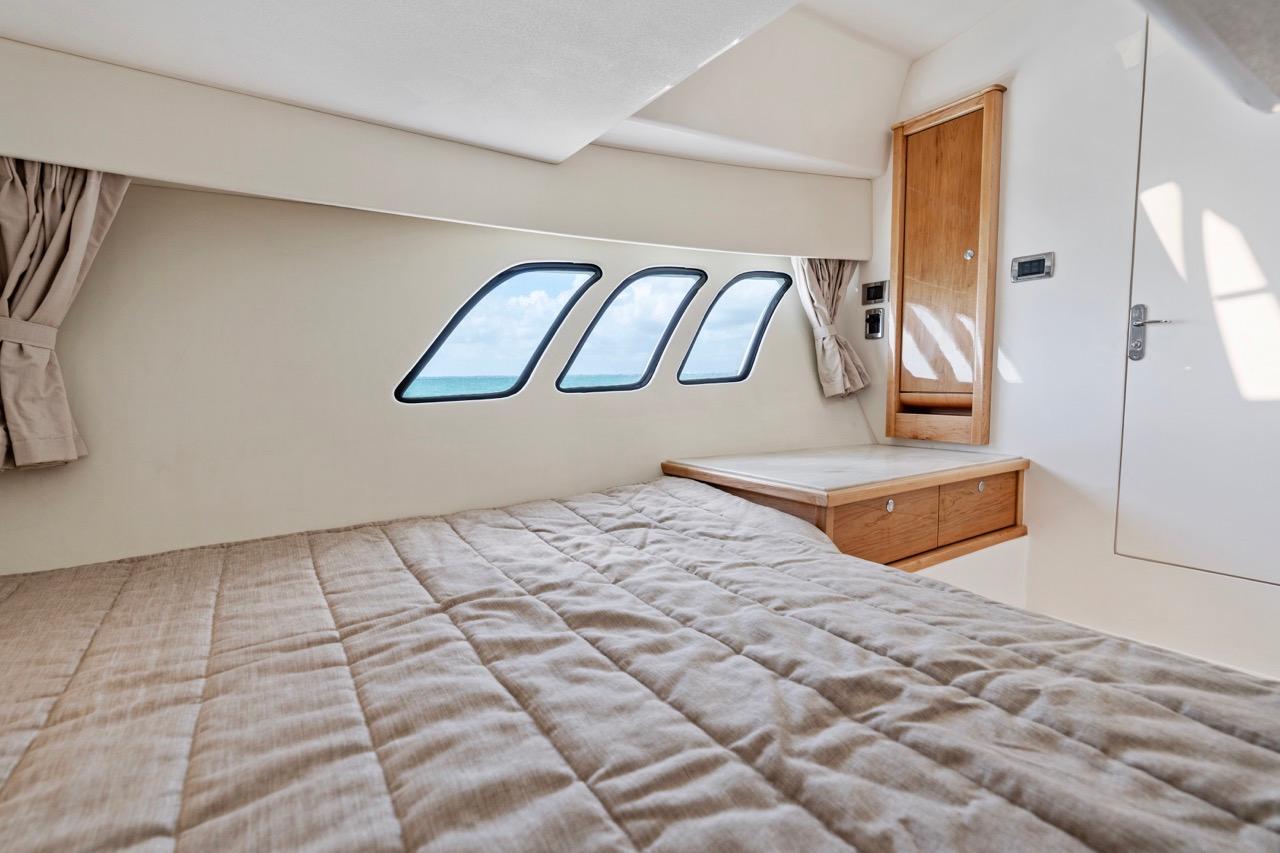 - Dual System Air Conditioning for Cabin (1 – 18,000 BTU Salon Area & 1 – 7,000 BTU Staterooms)