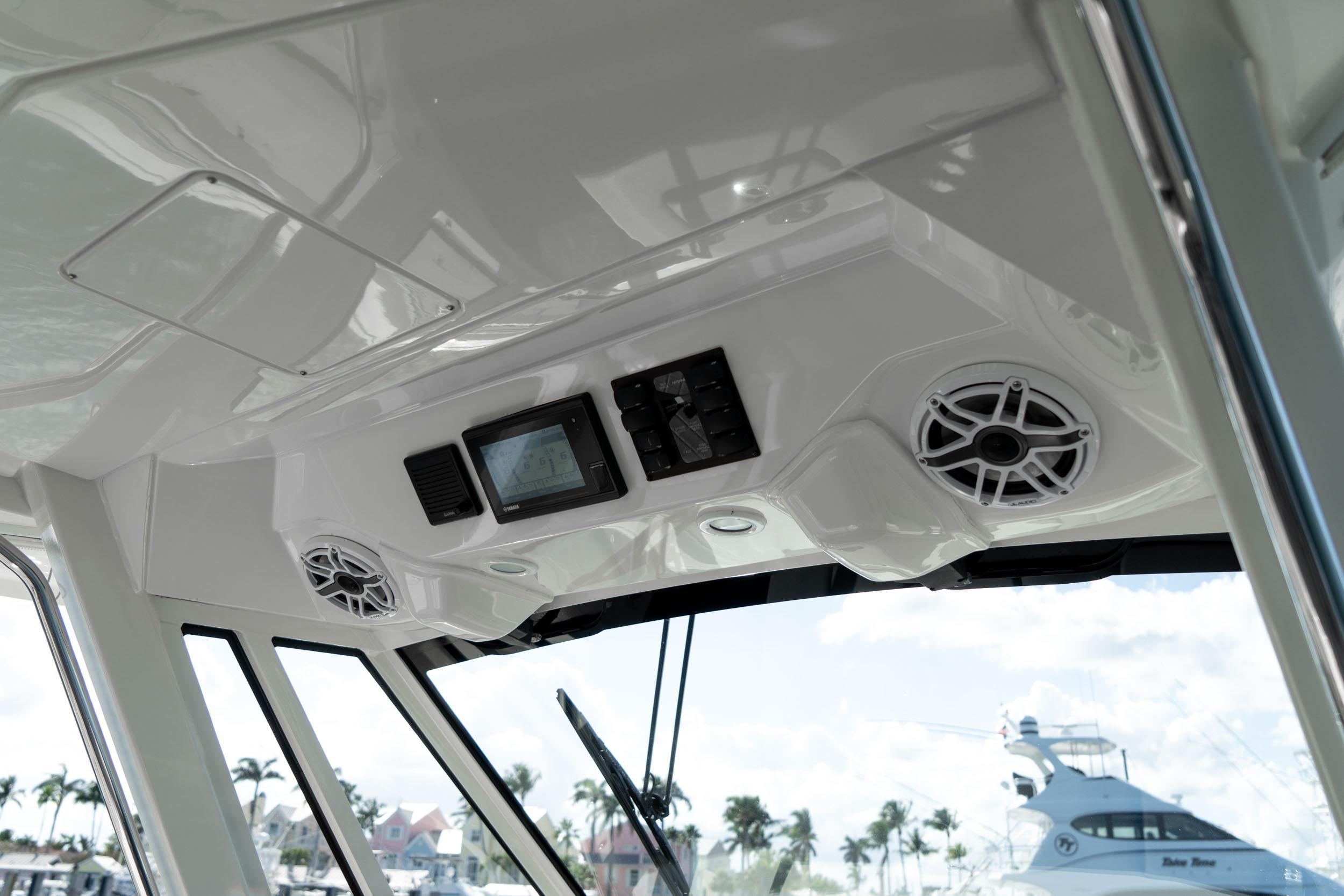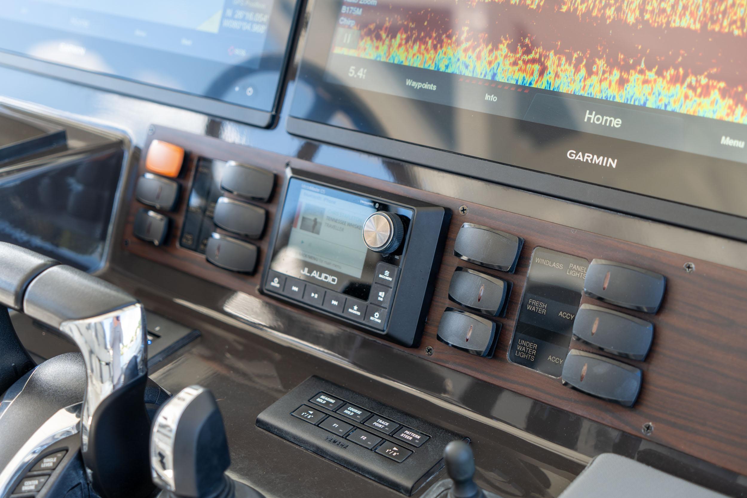 - Pursuit Cockpit JL Audio Custom Tuned Entertainment System: JL Media Master 12V Bluetooth® Compatible Stereo System, Premium JL Audio Speakers Eight (8) Total, Six (6) 7.7" Exterior and Two (2) 10" Subwoofers, Two (2) Amplifiers, Remote at Bow and Ext Antenna