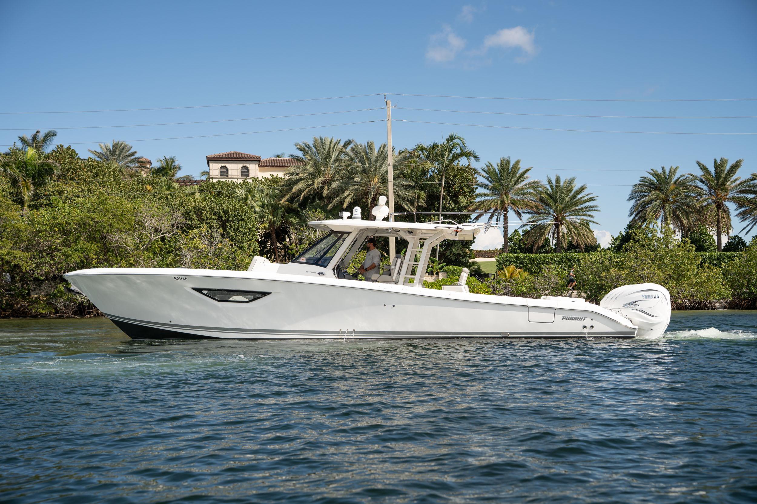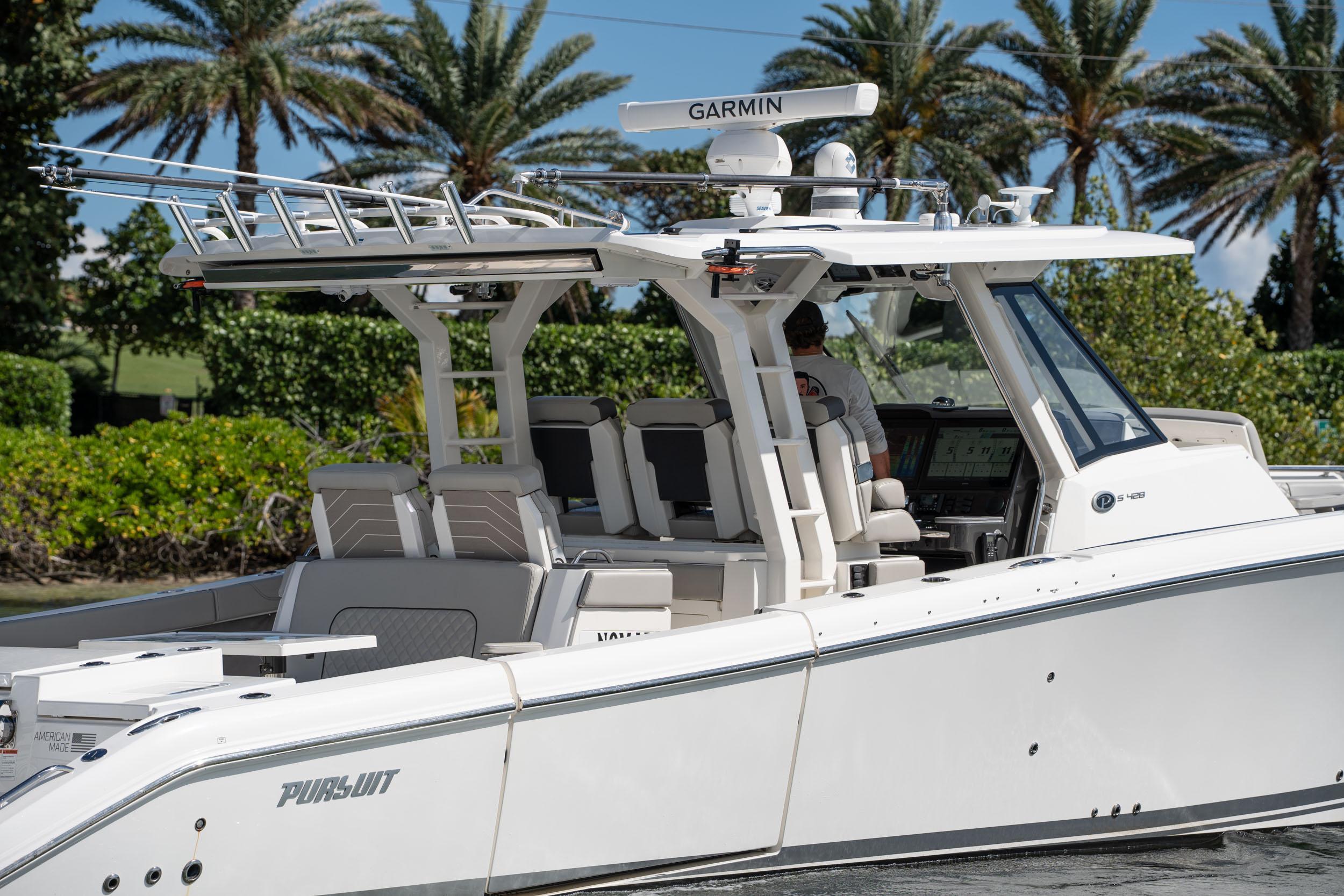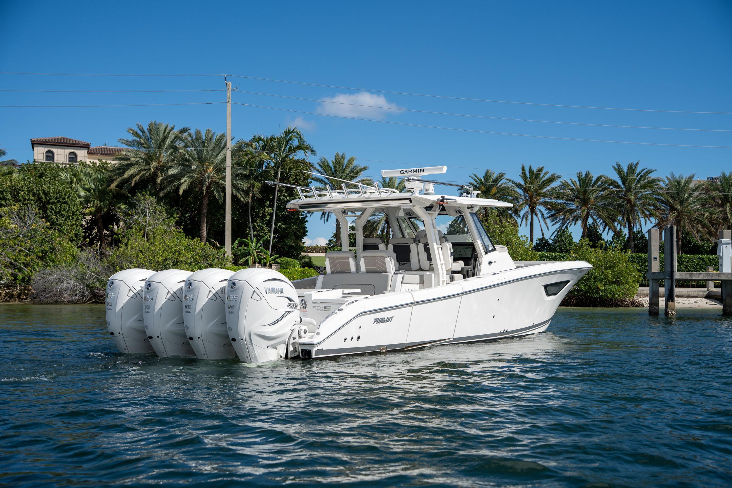 Freshly listed 2022 Pursuit S 428 Sport in excellent condition. Powered by quad Yamaha 425 XTO's with 310 hours complete with the Helm Master system (Joystick and Set Point). The Sea Keeper 6 allows guests on board to enjoy trips offshore, even on rough days. When not connected to shore power, the boat's systems are powered by a Fisher-Panda 9KW diesel generator. The electronics package on the S 428 features dual 22" Garmin screens with Sirius weather, 72-mile open array Fantom radar, FLIR thermal camera, aft facing Garmin camera, and much more! When you need a break from the sun, an electric retractable sunshade deploys from the hardtop as well as a forward Med shade. Custom covers for all the seats are included along with a cover for each one of the four engines. Photos do not do this vessel justice, must see it in person! JUST REDUCED! $745,195 The size, power and amenities built into the S 428, deem it the epitome of a legend—with the ability to fish, cruise and entertain in unrivaled style and comfort. Remarkably, not only is the S 428 the largest Pursuit we’ve ever built, it’s also the most powerful and the most spacious. Quad Yamaha 425 XTO engines work in perfect unison, becoming the driving force behind your adventures. With the largest aft cockpit in its class, you can haul in record-breaking catch through either of its hull side doors.Within this grand footprint, you’ll find an abundance of rod holders, three fishboxes, ample tackle storage and bait prep areas, plus extra-large fridge and freezer boxes. There’s even an industry-first second row of powered, convertible seats under the oversized hardtop. Because there isn’t anyone who won’t be begging to tag along for the day.When it’s time to entertain, your crew will have plenty of social zones to choose from, whether it’s our multi-function forward lounge seating or the plush aft-facing seat. A spacious and tastefully designed cabin features plenty of light and great views, thanks to the innovative cabin and hull side windows. Trying to decide what to do first. The S 428 sport boat is brimming with amenities so you and your family really can do it all. Whether that’s swimming up to the electro-hydraulic hull-side beach platform, fishing from the generous cockpit or getting ready to grill in the well-appointed entertainment center, every detail was designed to go beyond your wildest expectations.
