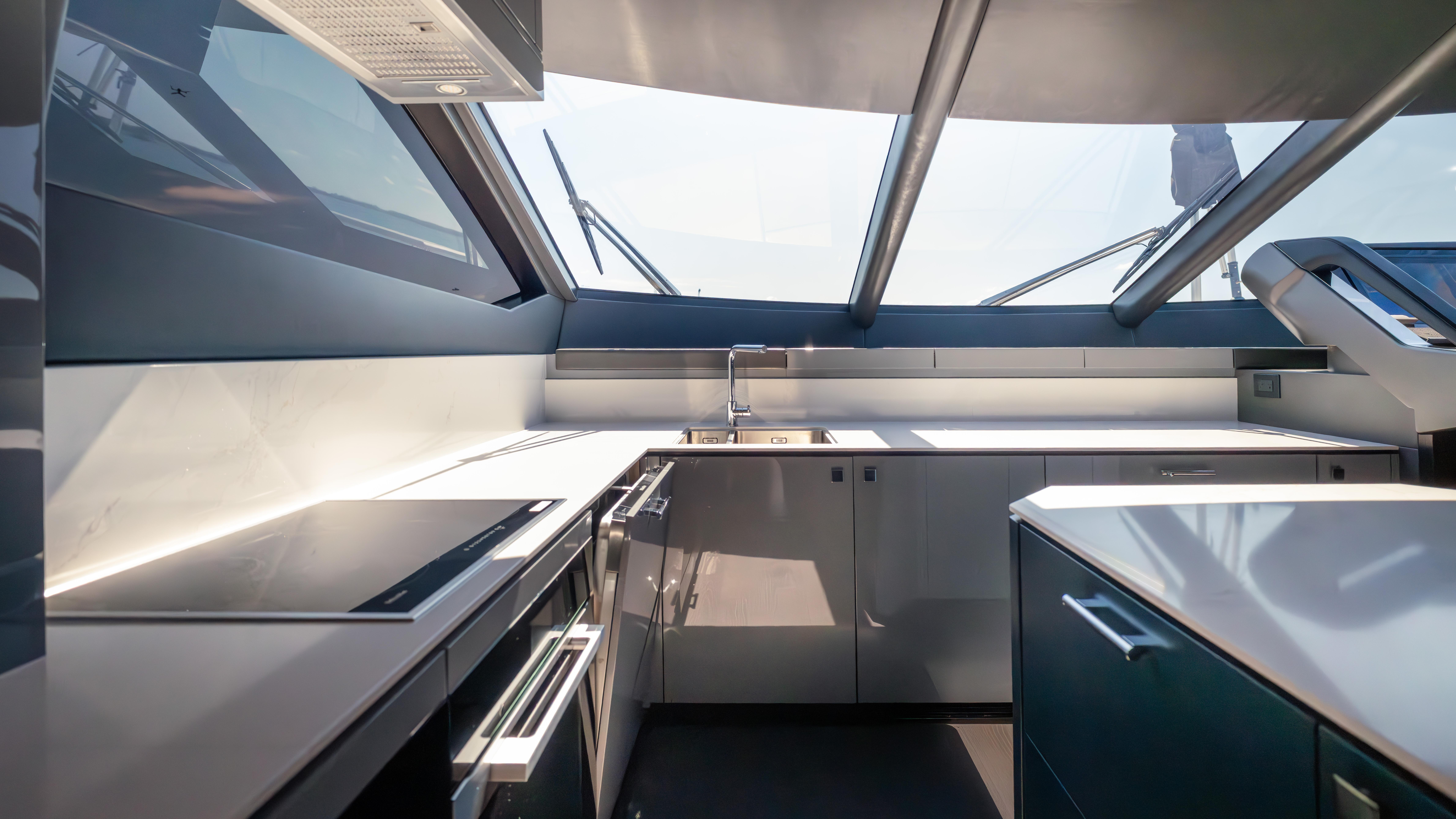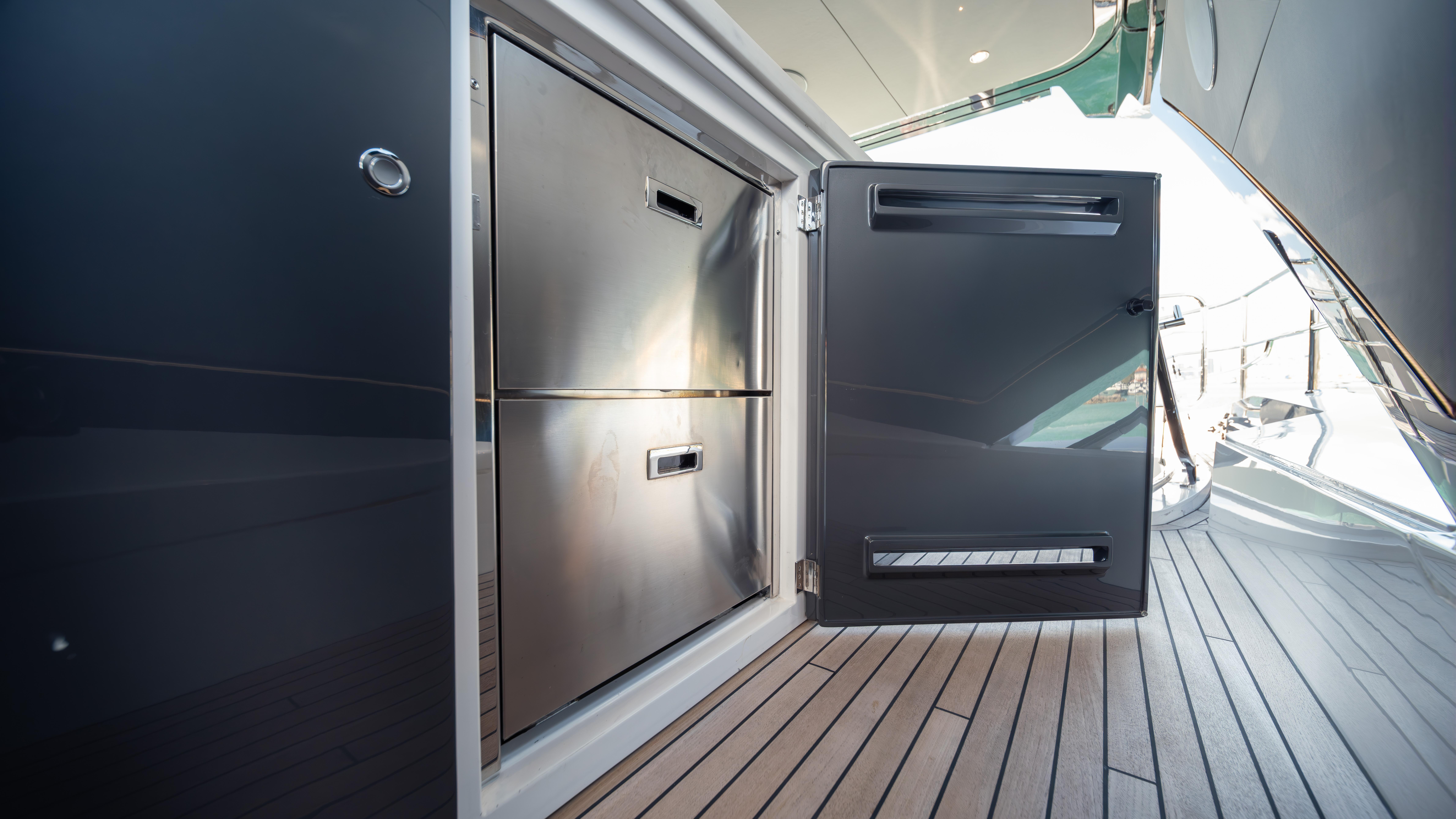 Flybridge Wetbar mouldings and doors spray paint finished Standby freshwater pump 24Vdc self-priming, pressure controlled. Standby