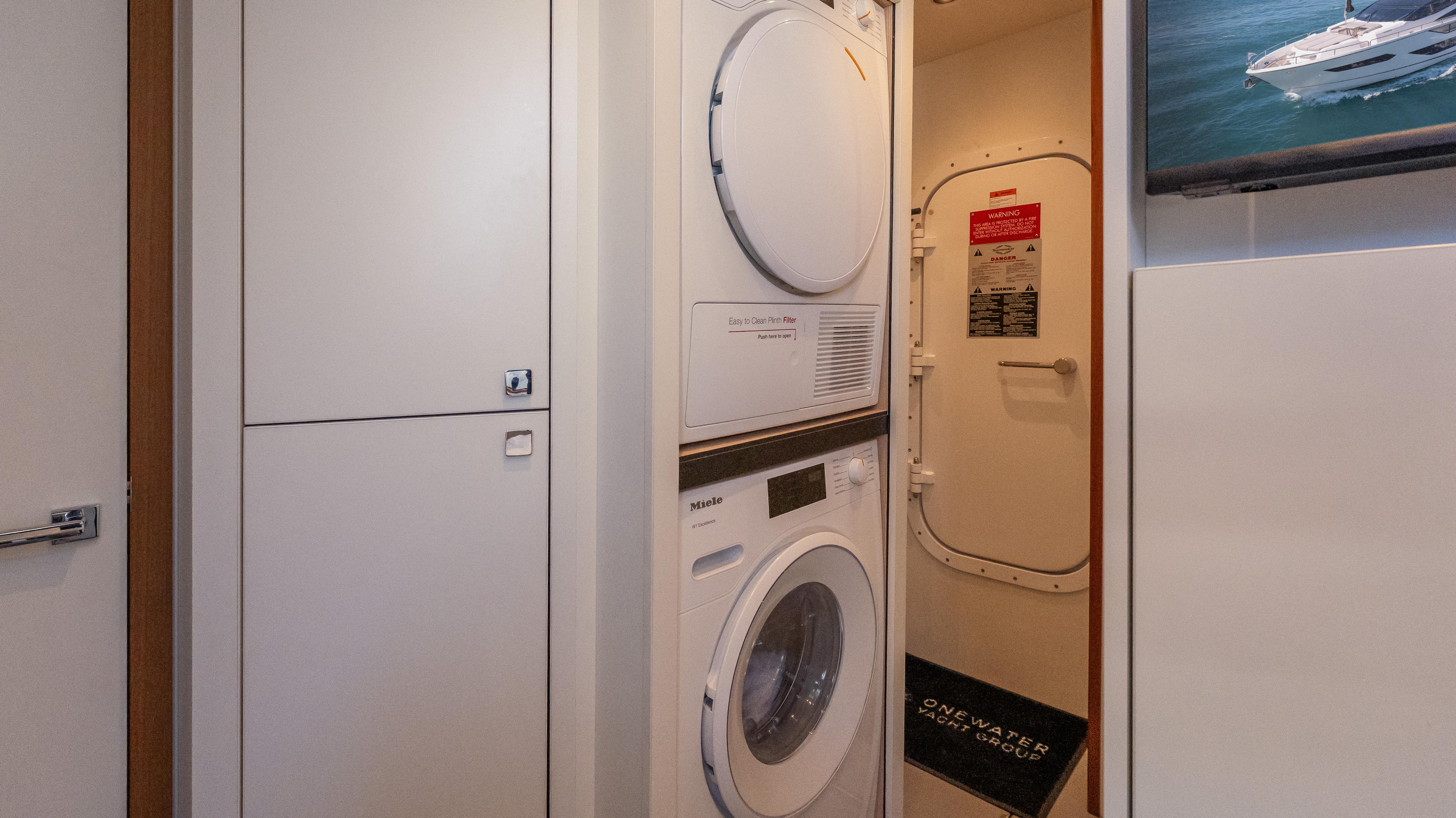 Separate Miele washing machine and Miele tumble dryer in the Crew Mess
