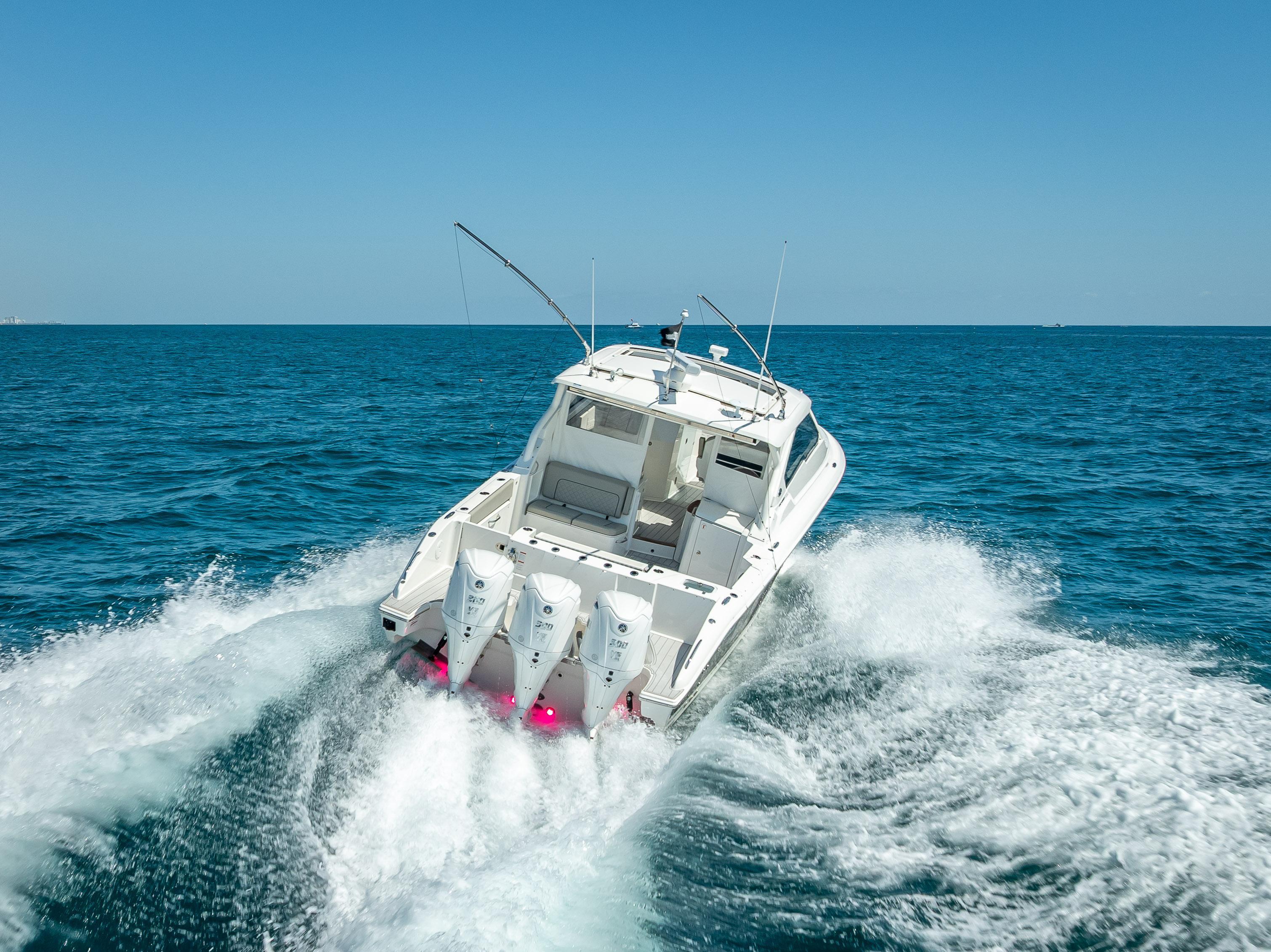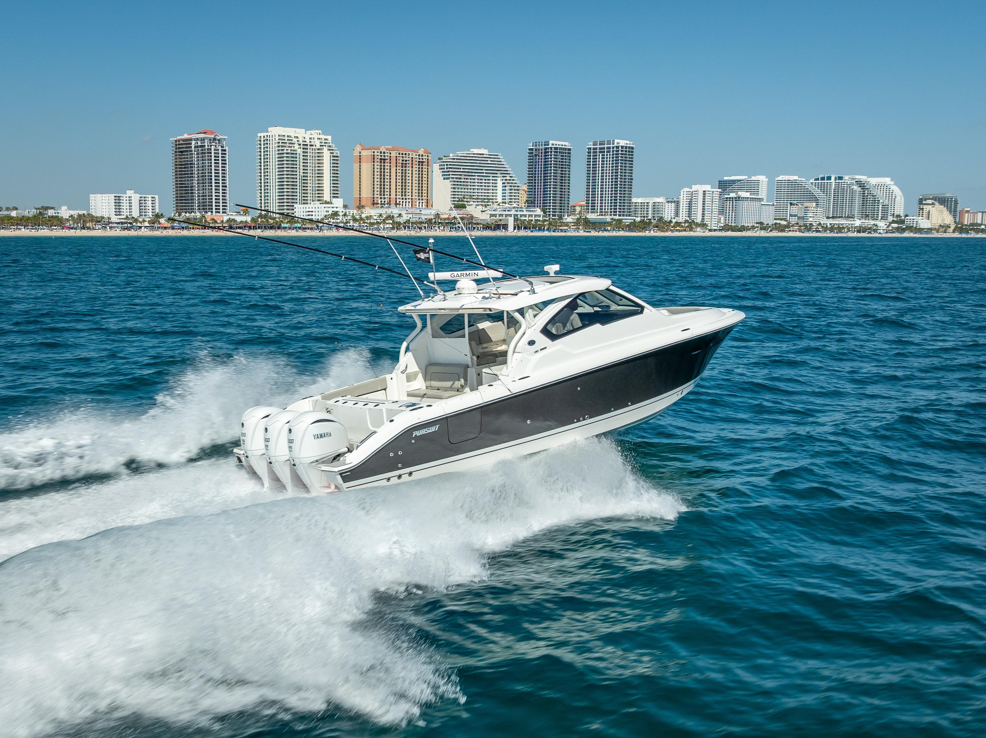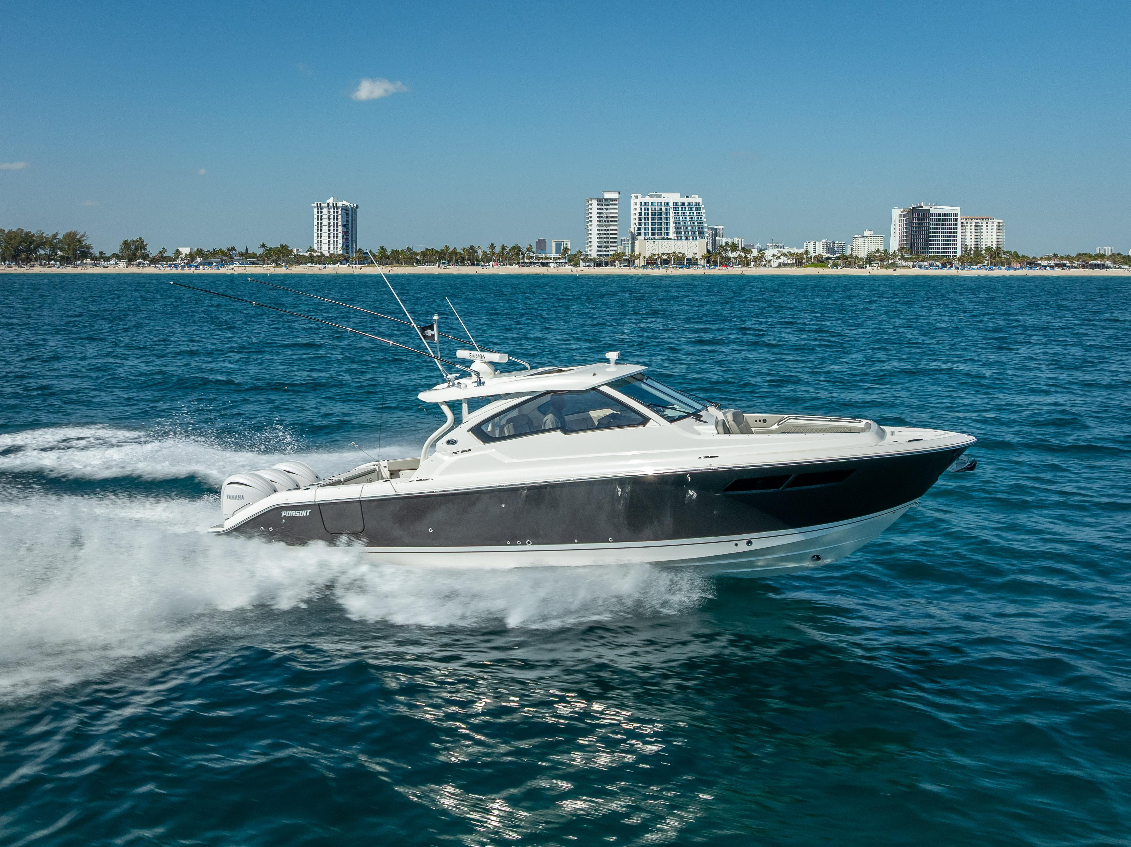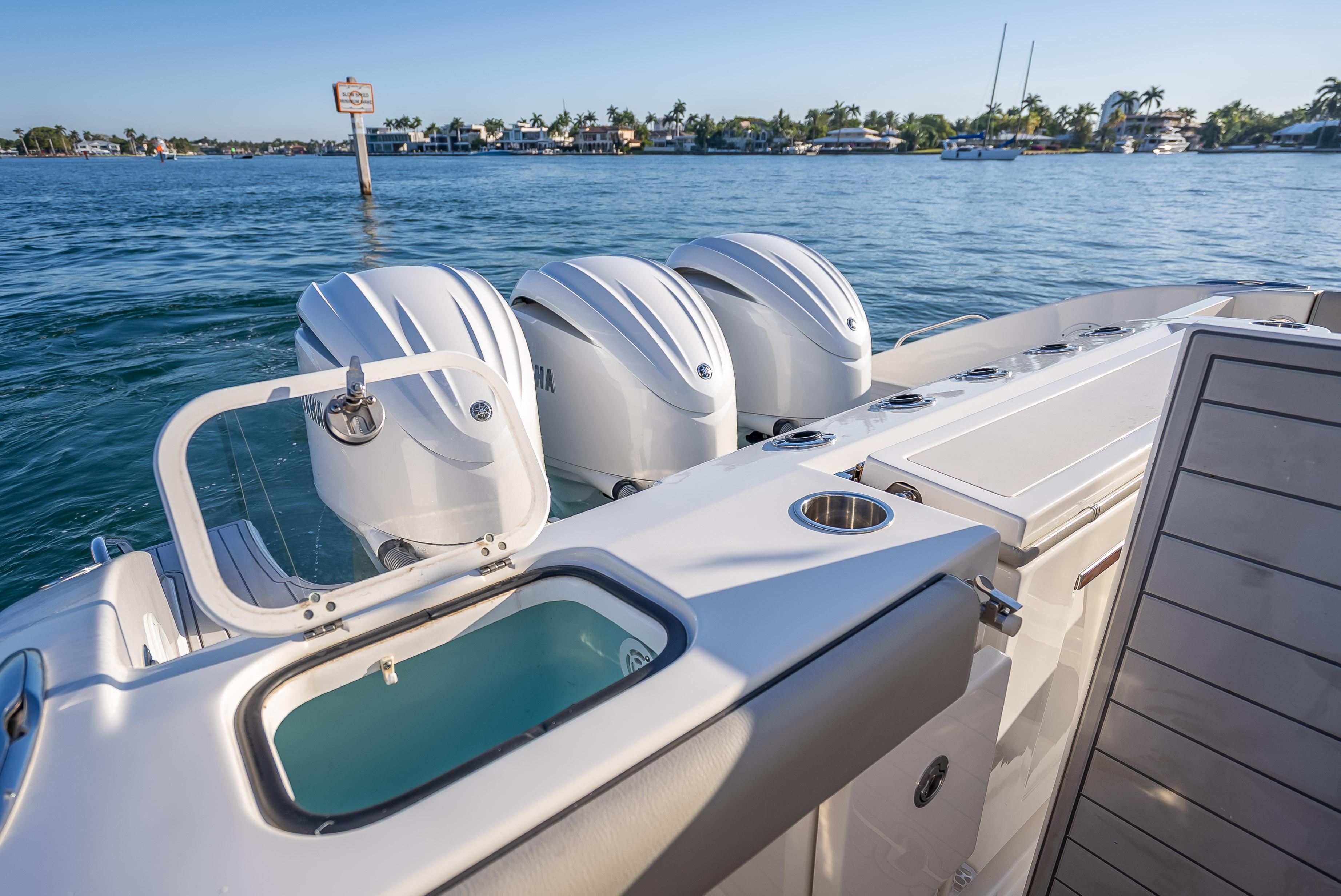 We are delighted to announce the listing of a 2022 Pursuit DC 365, featuring a range of premium manufacturer-installed options. This exceptional yacht is powered by triple Yamaha F300 V6 Offshore engines, offering outstanding performance with integrated digital steering and joystick control. Key features include: Triple Yamaha F300 V6 Offshore (Pearlescent White) Approximately 420 hoursIntegrated Digital Electric SteeringHelm Master EX Digital Electronic ControlYamaha Joystick Control with Full Maneuverability (Set Point and Autopilot)CL 7 DisplayOutriggers (Taco Grand Slam-390)18' Telescoping PolesSeaKeeper 3 Gyro Stabilizer240v/60hz Cockpit Air Conditioning System (16,000 BTU)Underwater Lights (4)Sea Blaze X2 SpectrumPremium Stereo UpgradeBridgedeck Teak Table with Storage12v, 2.3 cu. ft. Cooler with Chill PlateLocated under Aft Facing SeatGarmin Radar Open Array GMR Fantom 54Custom Retractable SunshadeOne-Touch OperationStowable Forward Mediterranean Sun ShadeWhite Stamoid Drop CurtainBlack Aft CurtainSpot Light (ACR RCL-100 LED)Remote Control at HelmGarmin Electronics PackageBlack Bow Tonneau Cover2nd 16" Widescreen DisplayNautilus Interior PackageHelm/Footrest - CarbonBootstripe - Arctic White, Quartz GrayHull - CarbonUpgrade Standard Side & Drop Curtain Stamoid with MakralonSiriusXM Receiver for Weather(Subscription Required)