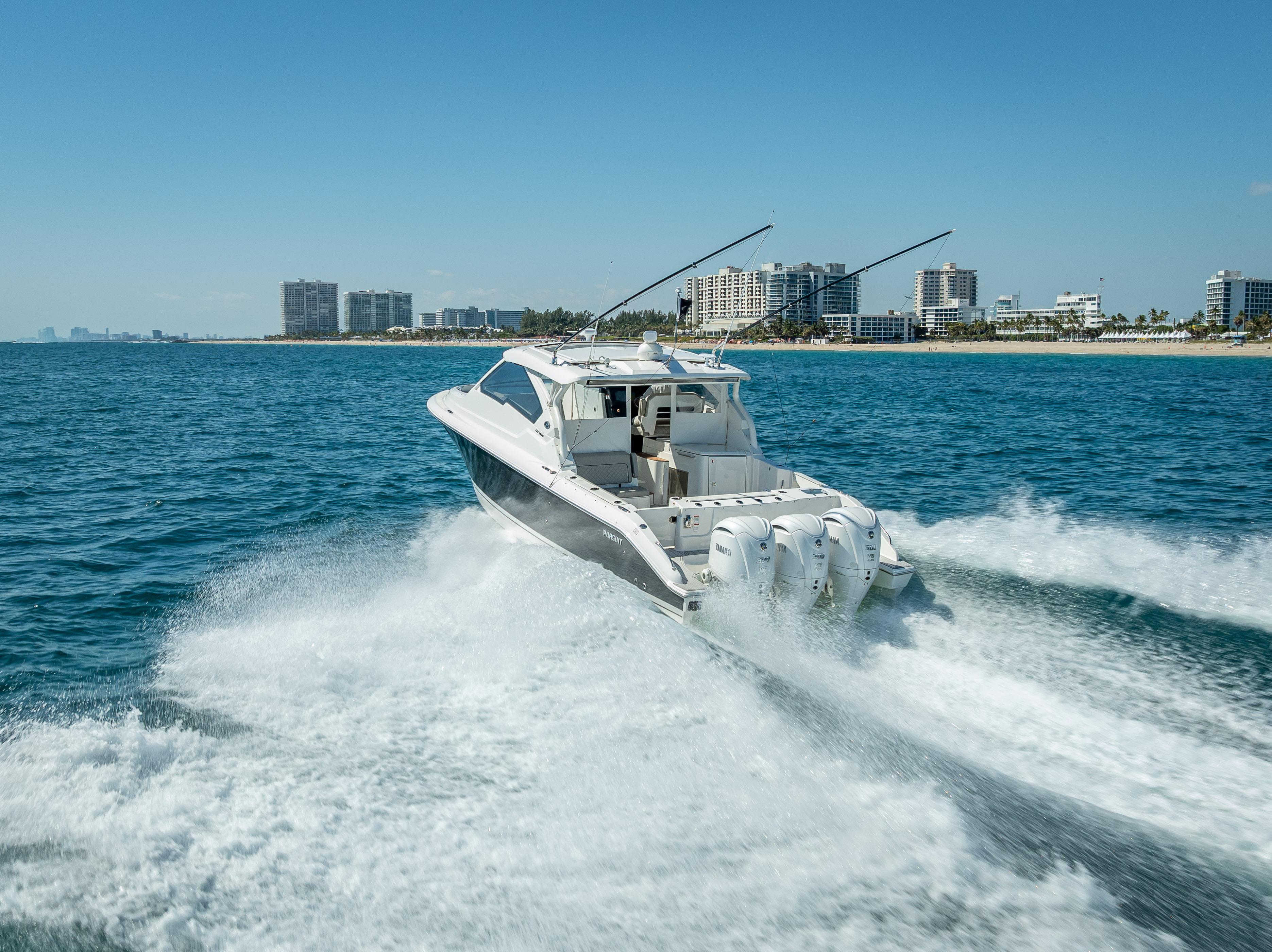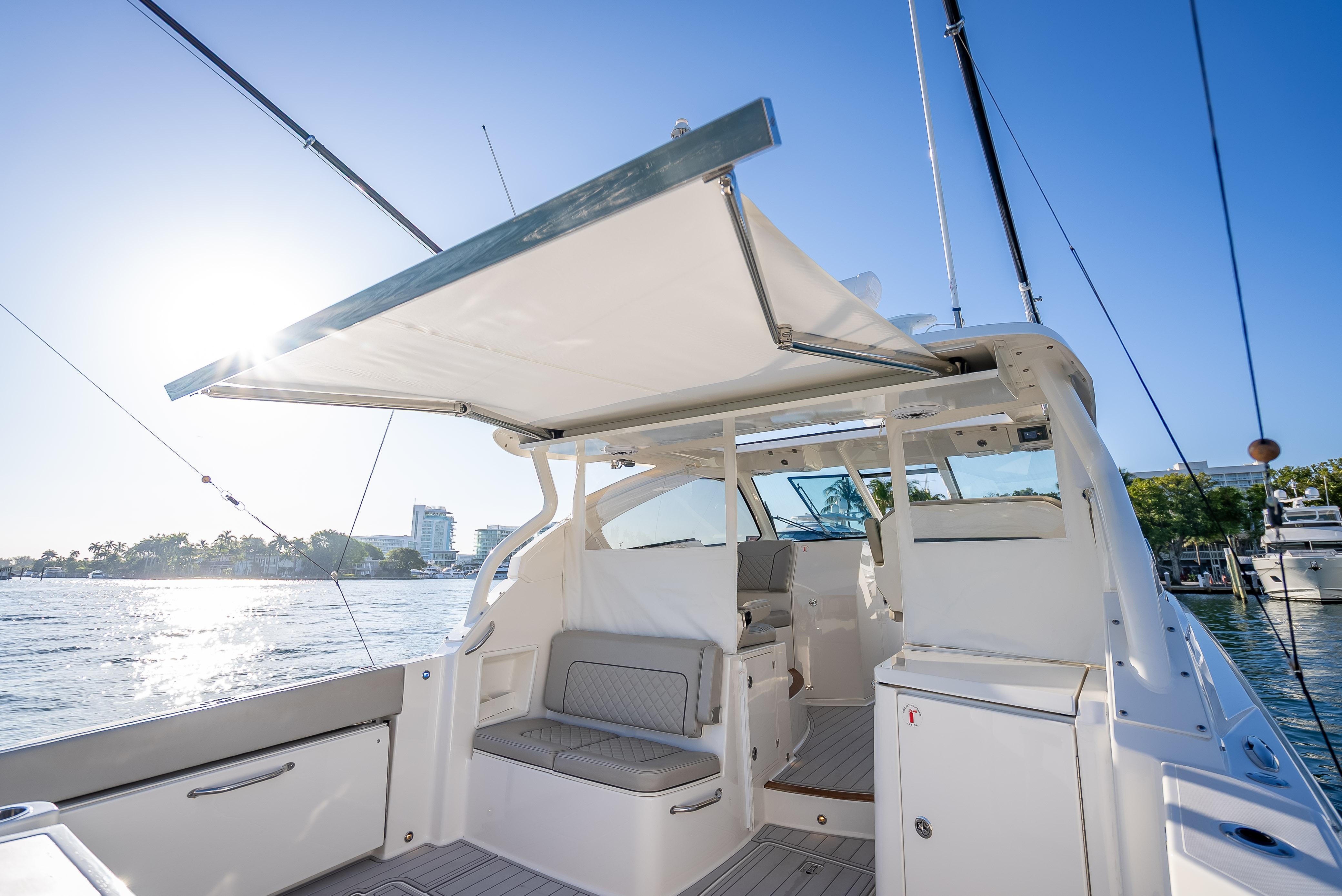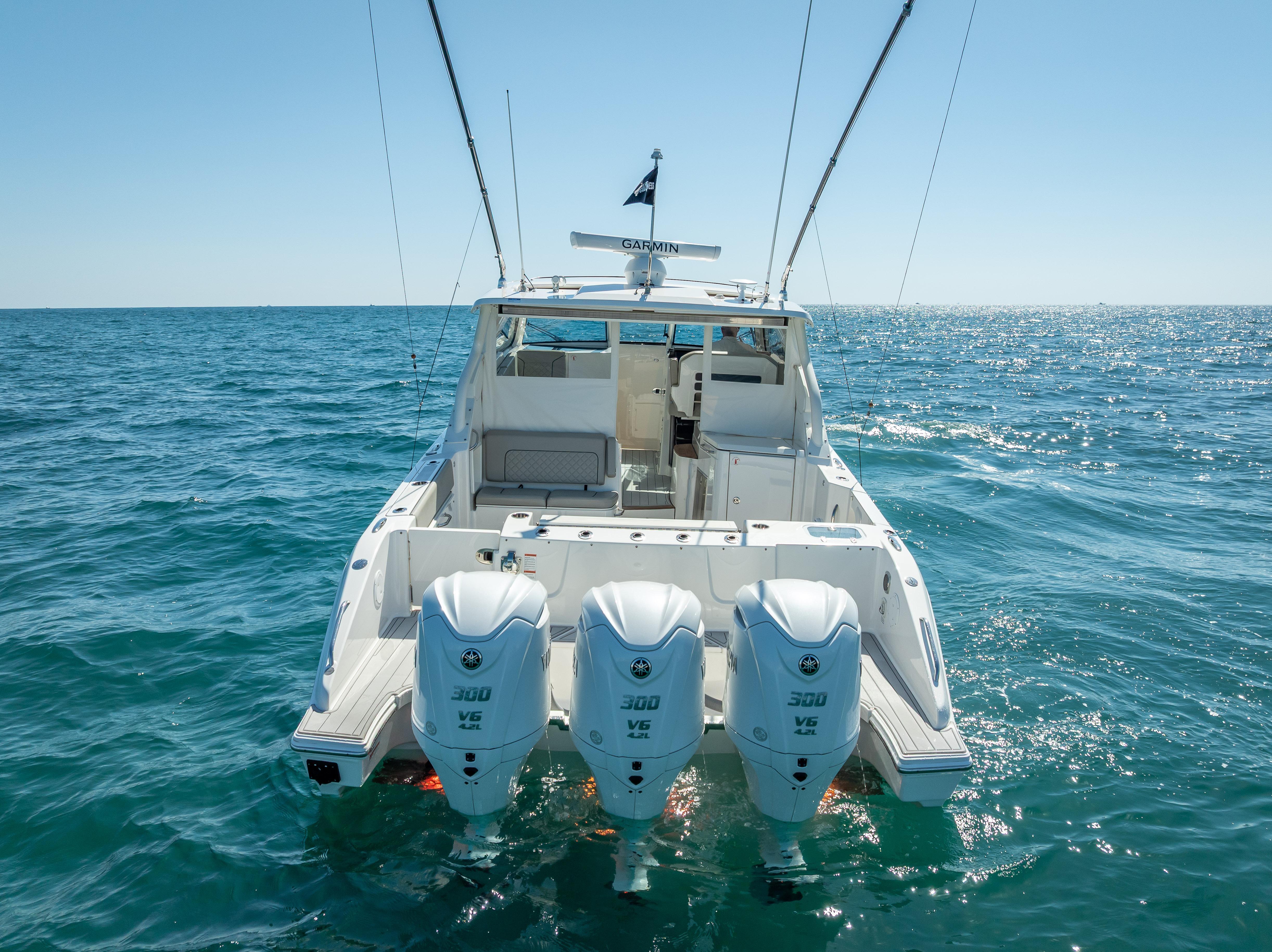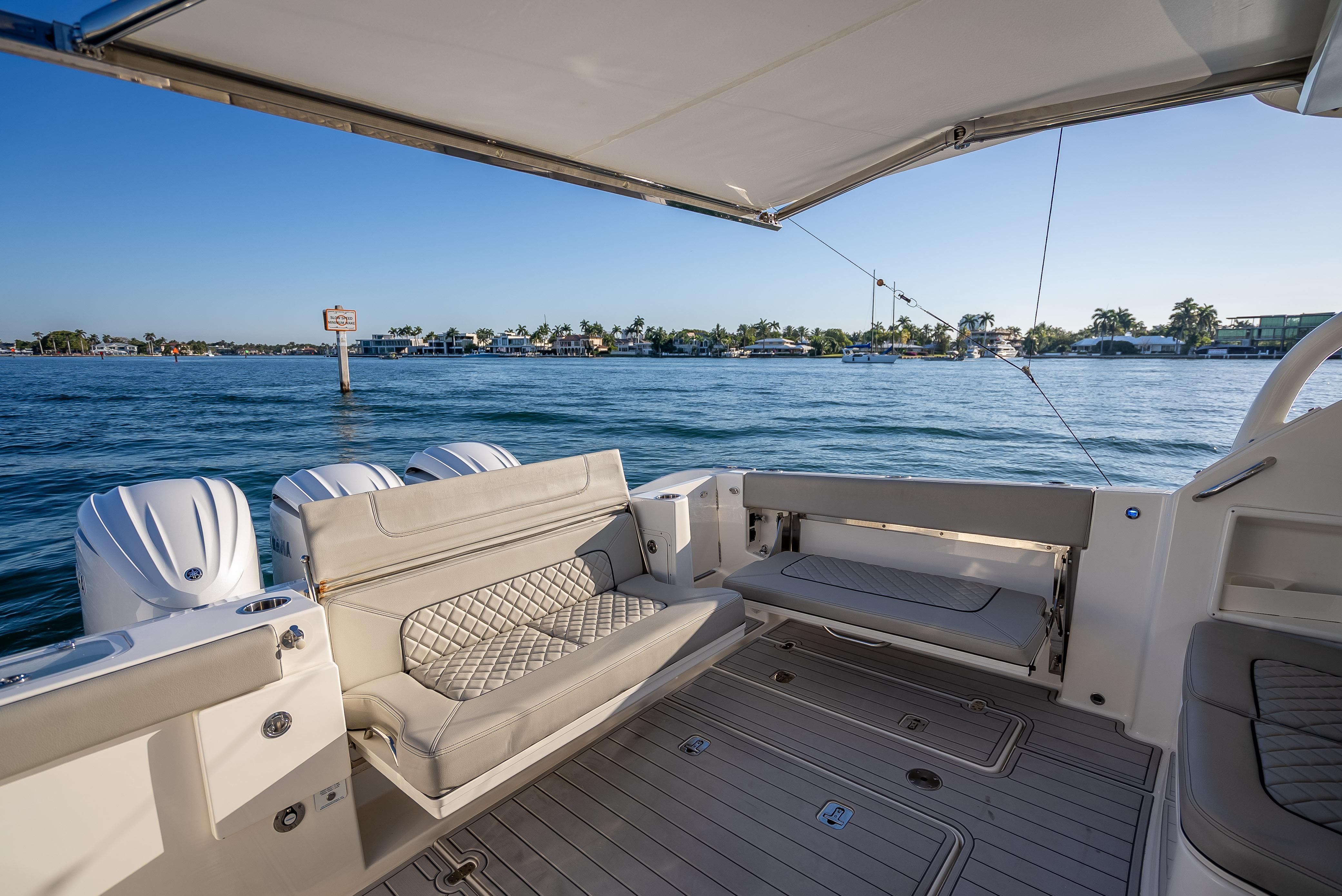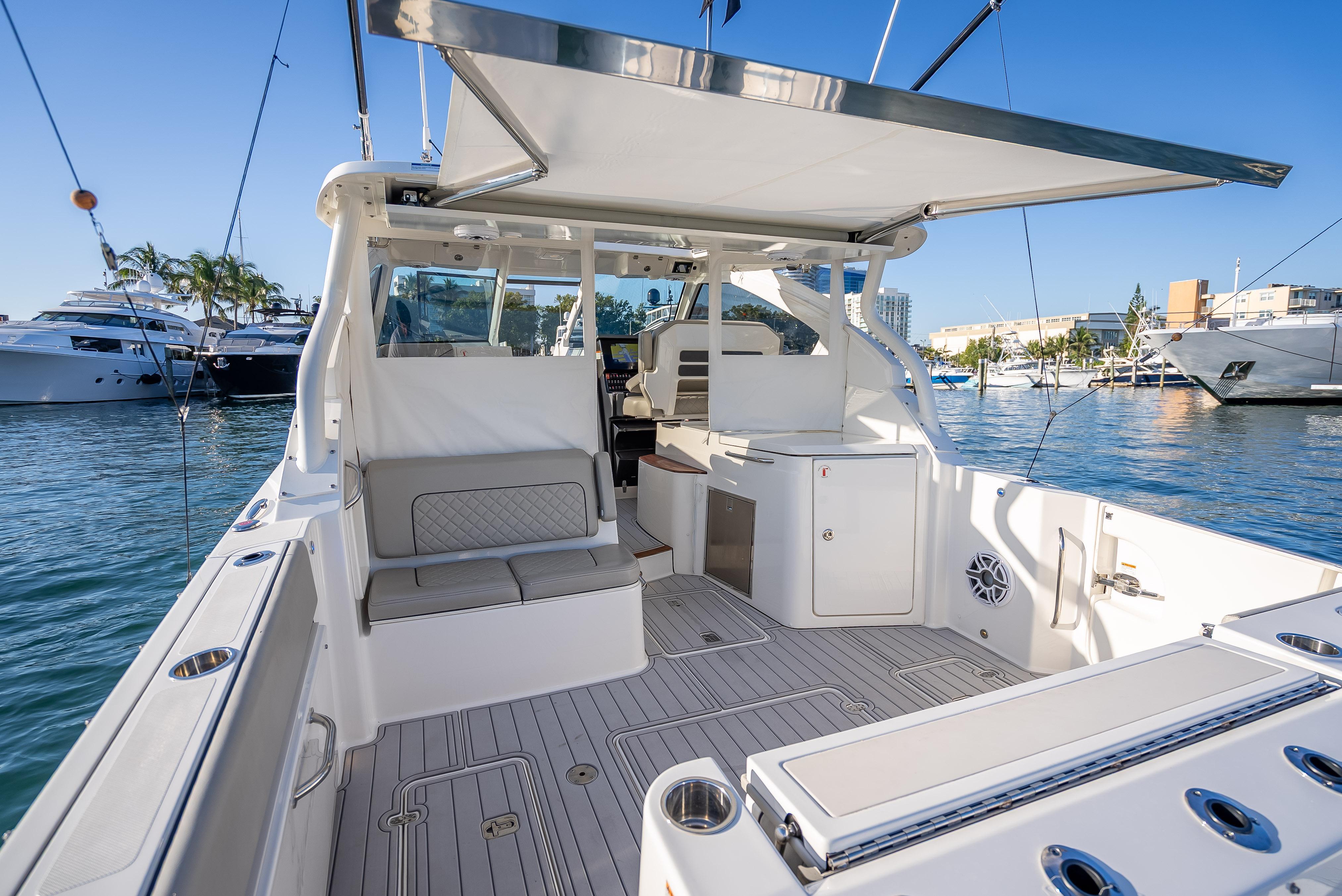 We are delighted to announce the listing of a 2022 Pursuit DC 365, featuring a range of premium manufacturer-installed options. This exceptional yacht is powered by triple Yamaha F300 V6 Offshore engines, offering outstanding performance with integrated digital steering and joystick control. Key features include: Triple Yamaha F300 V6 Offshore (Pearlescent White) Approximately 420 hoursIntegrated Digital Electric SteeringHelm Master EX Digital Electronic ControlYamaha Joystick Control with Full Maneuverability (Set Point and Autopilot)CL 7 DisplayOutriggers (Taco Grand Slam-390)18' Telescoping PolesSeaKeeper 3 Gyro Stabilizer240v/60hz Cockpit Air Conditioning System (16,000 BTU)Underwater Lights (4)Sea Blaze X2 SpectrumPremium Stereo UpgradeBridgedeck Teak Table with Storage12v, 2.3 cu. ft. Cooler with Chill PlateLocated under Aft Facing SeatGarmin Radar Open Array GMR Fantom 54Custom Retractable SunshadeOne-Touch OperationStowable Forward Mediterranean Sun ShadeWhite Stamoid Drop CurtainBlack Aft CurtainSpot Light (ACR RCL-100 LED)Remote Control at HelmGarmin Electronics PackageBlack Bow Tonneau Cover2nd 16" Widescreen DisplayNautilus Interior PackageHelm/Footrest - CarbonBootstripe - Arctic White, Quartz GrayHull - CarbonUpgrade Standard Side & Drop Curtain Stamoid with MakralonSiriusXM Receiver for Weather(Subscription Required)