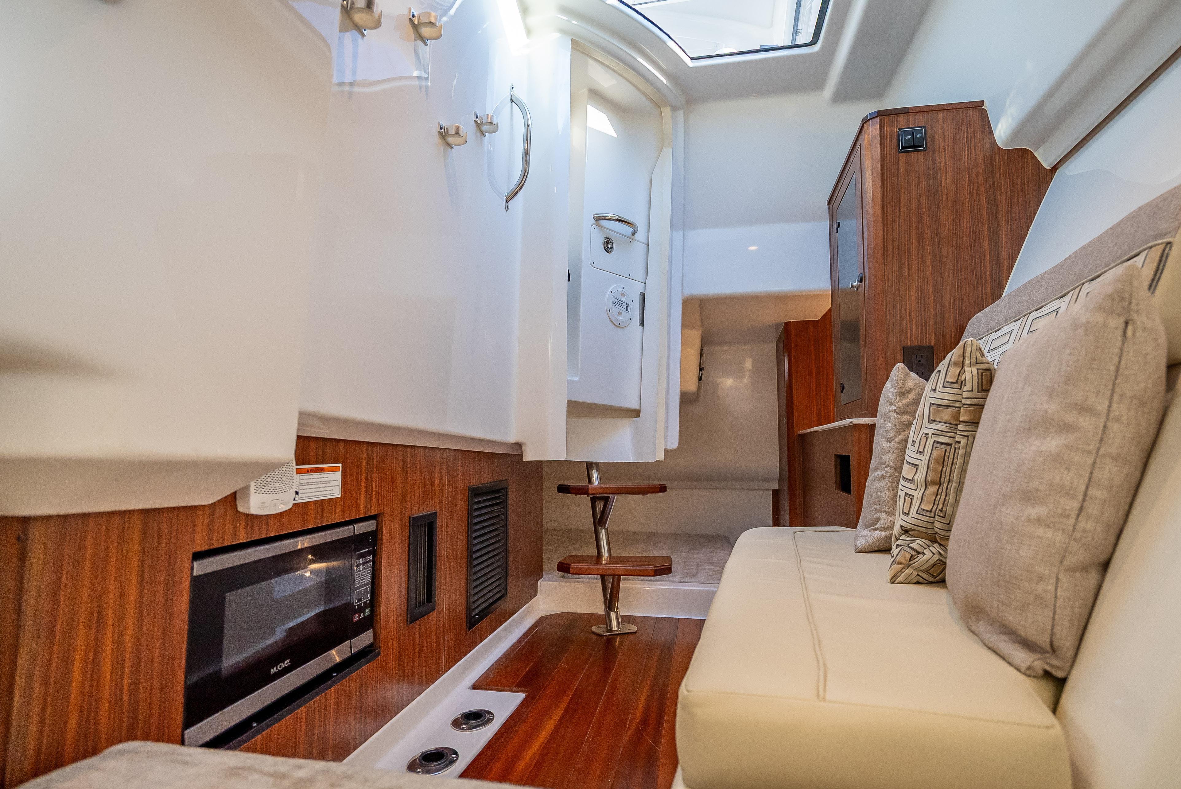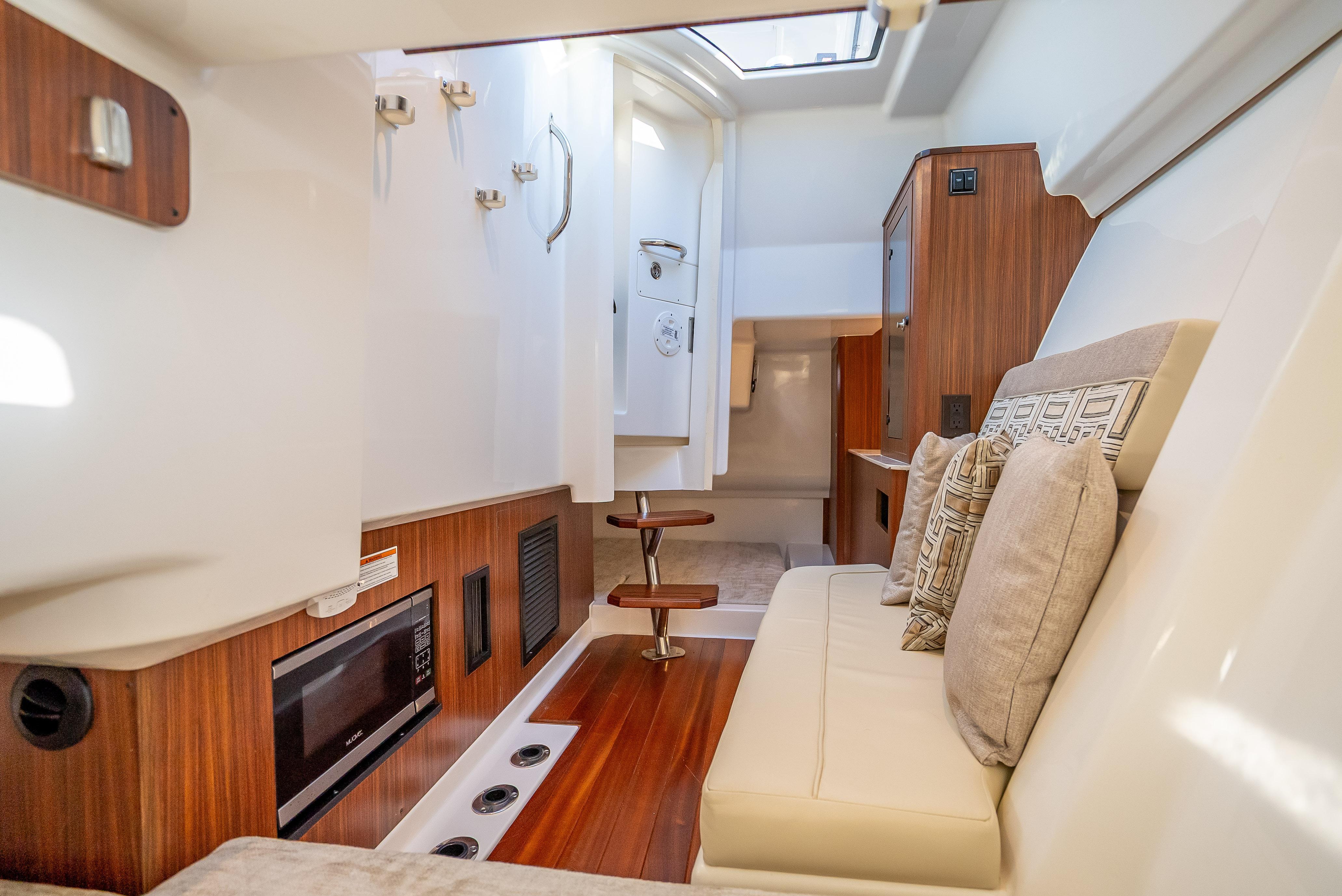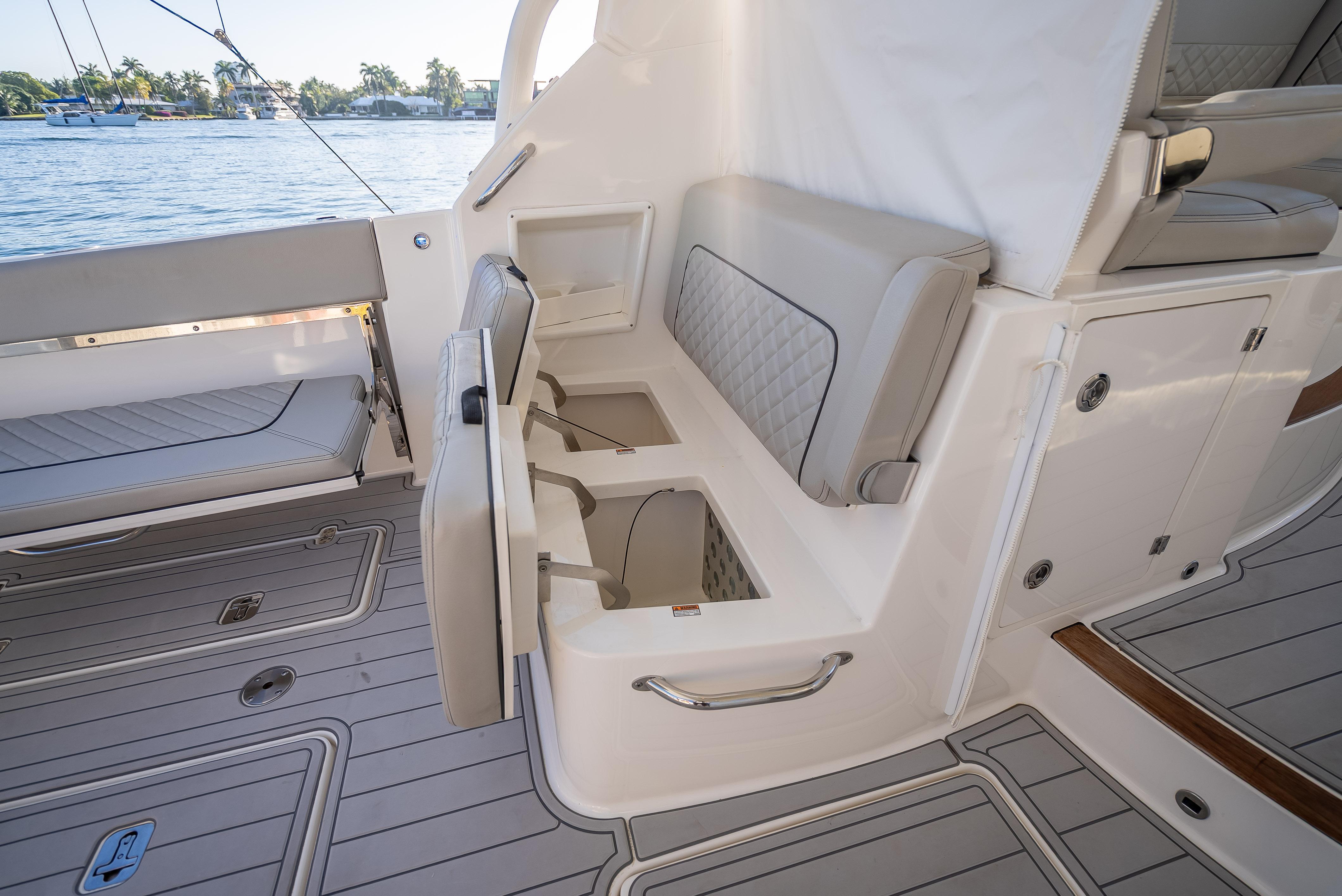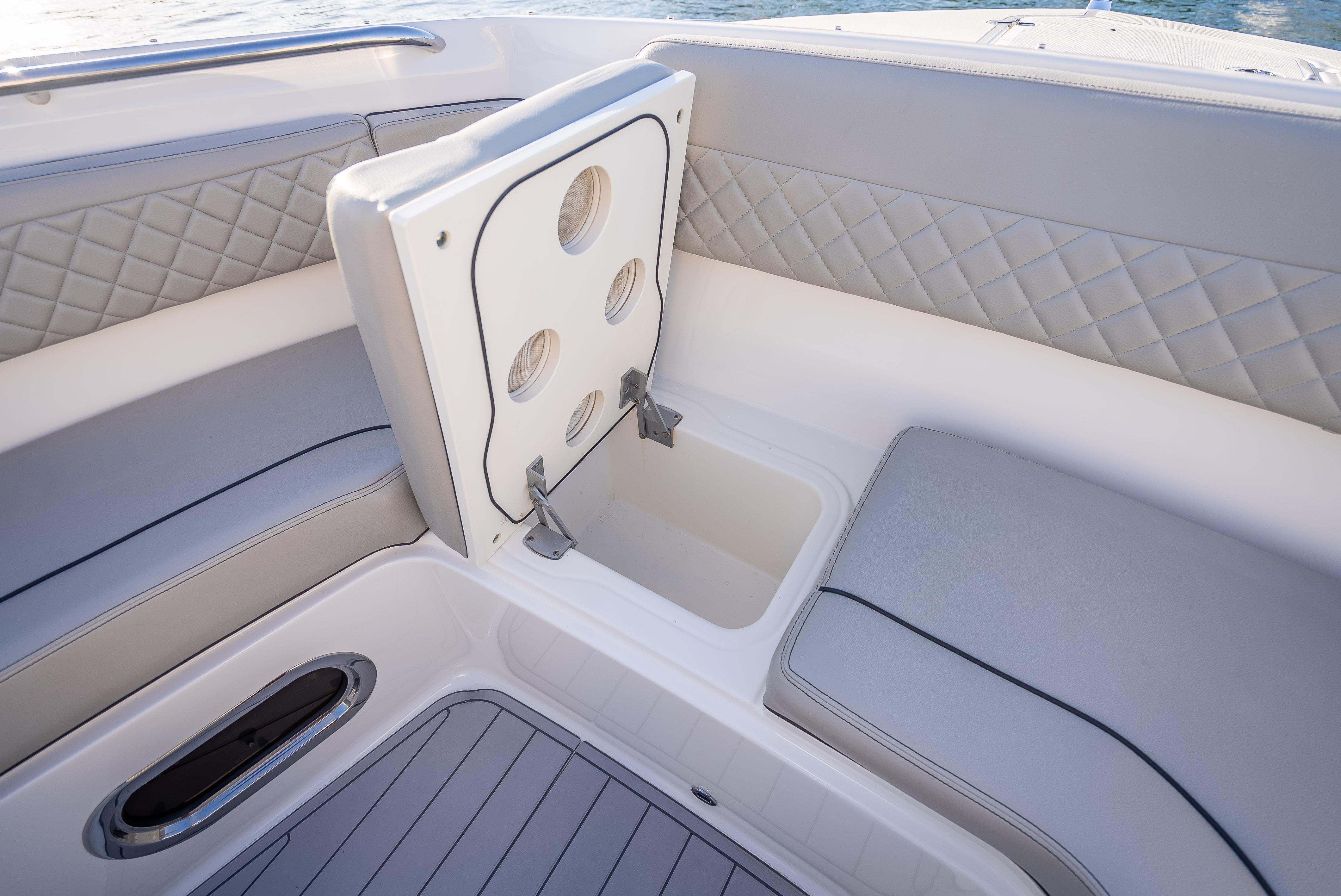 - Molded Port Aft Facing Seats with Insulated Storage (2) Below and Armrest