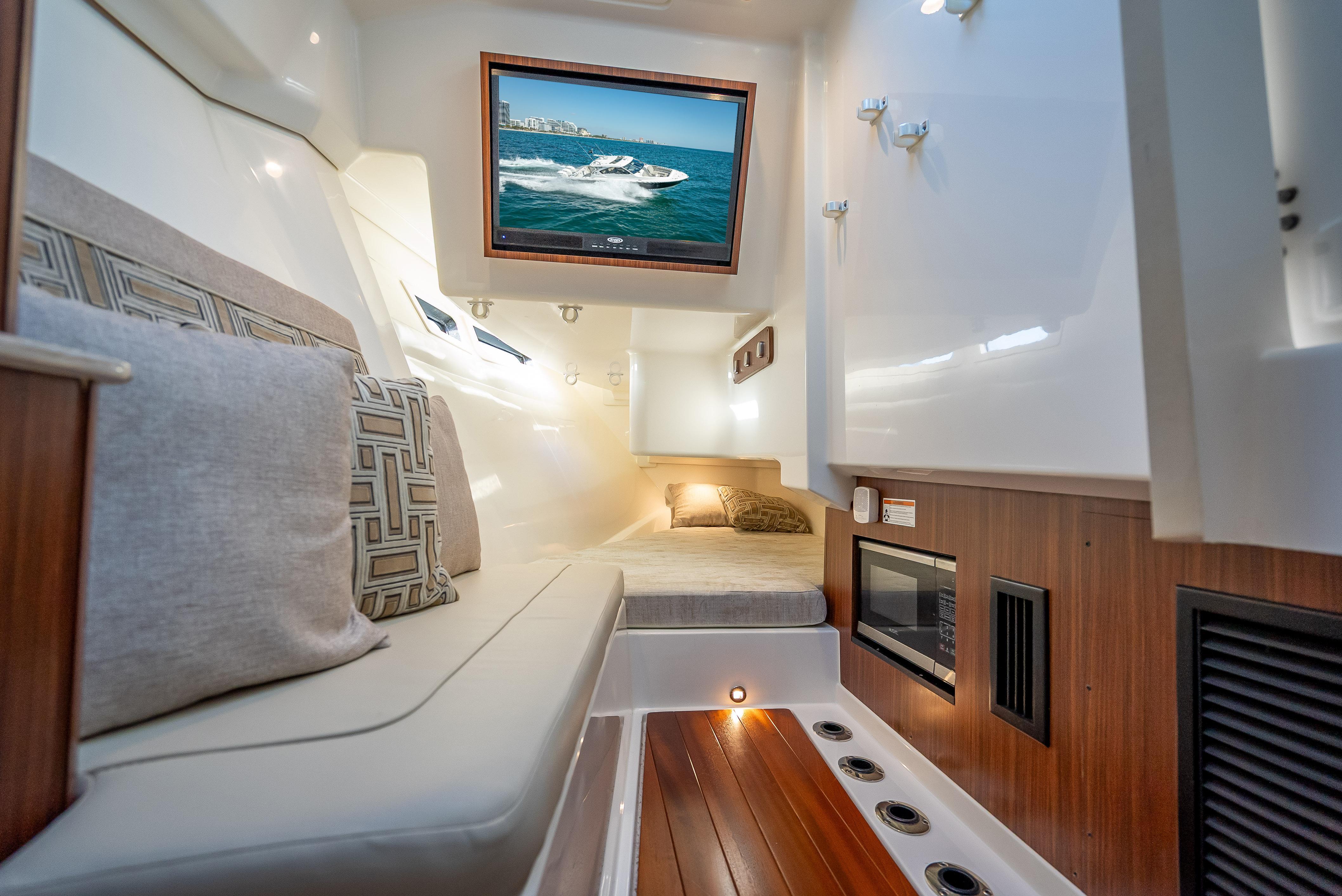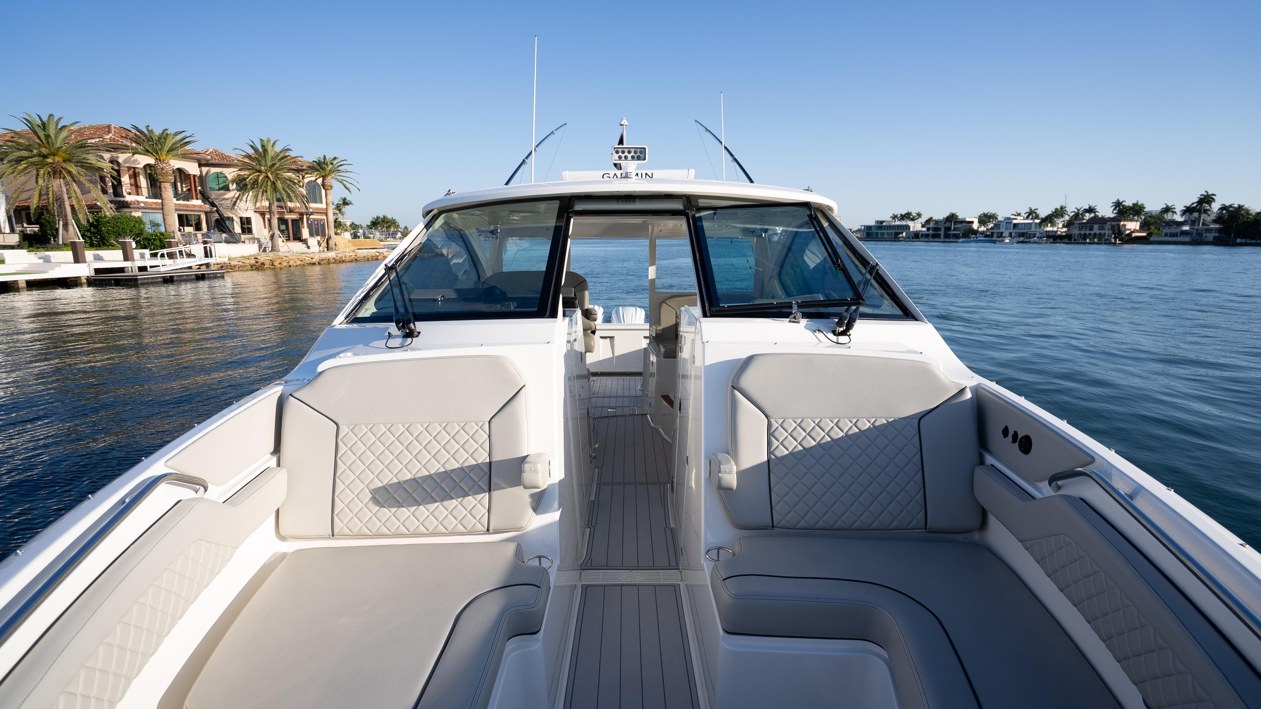 - Molded Port Forward Bow Seating with Flip-down Armrest, 12V, (2) USB and Stereo Remote