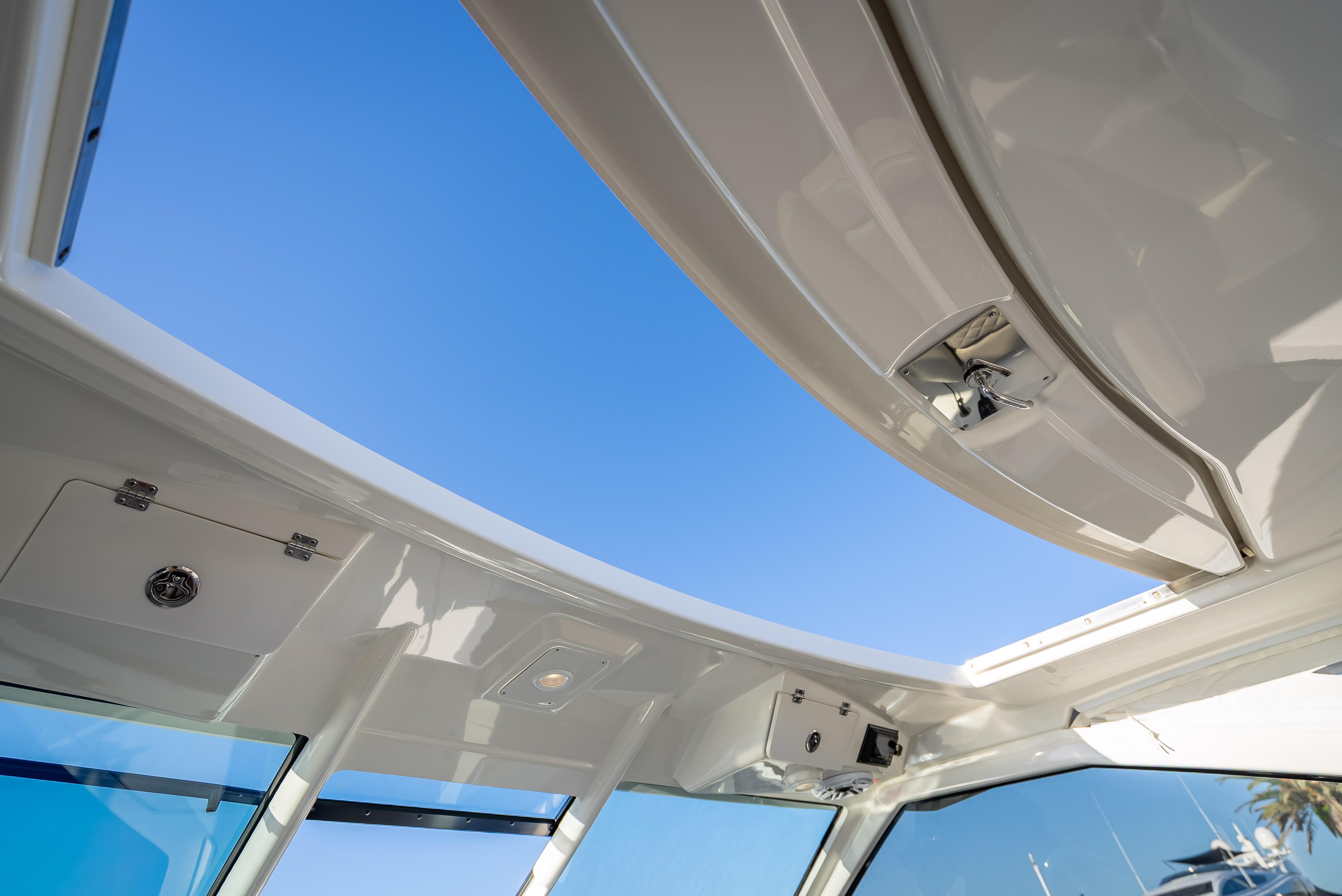 - Custom Tempered Glass Windshield System with Fiberglass Side Frame, Fwd Aluminum Bow Access Walk-thru