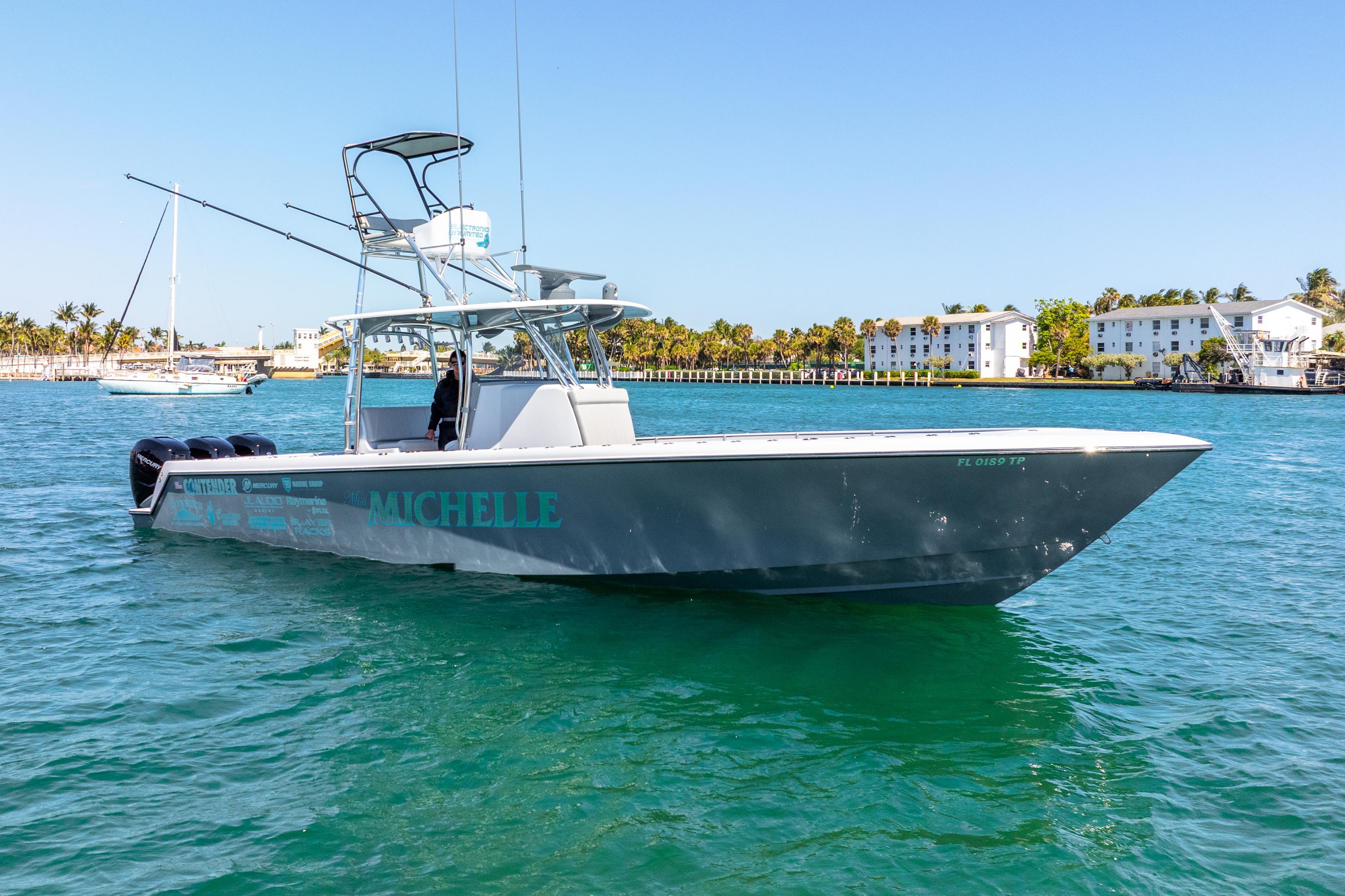 Enter a realm of unmatched elegance and thrilling performance with this extraordinary 39ST Contender, expertly crafted by Contender and Raymarine pro team members who possess an in-depth understanding of these vessels. Meticulously maintained and presented in immaculate condition, this boat embodies Contender's legendary reputation in the fishing world. With no compromises made and every conceivable option included, this stunning vessel is a proven tournament-winning powerhouse, eagerly awaiting your command. Whether you're a passionate angler, a family in search of adventure, or a luxury enthusiast, this boat is sure to surpass all your expectations. We invite you to explore the outstanding features and immaculate condition of this extraordinary yacht, setting the stage for endless memorable adventures on the water. This 39ST Contender, adorned in Awlgrip dark gray with a whisper gray cap / interior and ceramic coating, is truly a sight to behold, having been meticulously maintained with no expense spared.Console / Leaning Post:M series console with side entry door.2 tone hard top.• Enclosure Polycarbonate.Small port and starboard Glove Boxes.Boca tech Switches mounted on dash.Mercury controls and joystick.Hardtop with 4 additional speaker pods.Tilt steering helm with hydraulic cylinder.2 glove boxes on m series console (additional option).4 cup holders on M series console (additional option).7 rod holders across top of console.Sink/Shower.Head on electric Y valve, on slide.Ignition keys inside of console.M series lounge (with electric lift).2 LED puck style lights.5 Lumitech spreader lights (Forward, aft, starboard, and port).4 Hard top, speaker boxes slant cut speaker boxes on hard top.King fish style rod holders mounted on hard top.Coffin box (XL) as lounge on console.6 Gemlux rod holders down the side of console.M series leaning post.6 15-degree Gemlux rod holders in leaning post.M series extra-large leaning post.2 pull out drawers in leaning post.1 flip up drawer in leaning post.Frigid ridged slide out cooler.ELECTRONICS2 Raymarine AXIOM PRO 16RVX.1 Raymarine AXIOM PRO 9RVX (in tower).Raymarine MAGNUM 12KW/ 4FT/15M Radar.SIRIUS/ WEATHER Antenna.2 Raymarine AIS VHF radio.FLIR MD-625 fixed thermal camera.FUSION MS-RA770 Touch screen stereo.Sunshine marine plate in deck for rocket launcher.Upgraded Bilge switch to ultra JR.Light in bilge.4 Batteries.Upgraded House battery to PF 1800.2 USB Outlet (port side glove box, starboard side glove box).30-amp shore power.Under gunnel lighTng.4 multi color under water lights.6 electric reel outlets.Mercury Vessel view display (on console).Wireless Raymarine VHF in tower.14 JL audio Sport grill speakers.4 JL audio amplifiers.Running lights recessed in rub rail.MotorsTriple Mercury Verado L6 400s (560 hours).Freshly painted cowlings (painted on decals).LivewellsStainless steel 4 pump best marine pump box.4 3,700 gph Rule livewell pumps.Best marine Manifold system.2 Gemlux mounted high speed pickups.2 standard transom livewells.1 livewell under deck (44 well, 110 gallons) XL lid.Forward above deck Livewell connection and discharge for forwardwell.Light in each livewell.Factory Split fish box hatch (allows for larger forward on deck well while still using full amount of forward fish box).Forward live well fill for additional 4th well.Other Features• 52 Gemlux rod holders in cap (26 on each side of the cap, 8 cup holder rod holders).Pop up cleats.Garelick ladder built into transom.Recessed grab rail on bow.Freshwater system.Livrosi model 950 trim tabs (similar to K planes).Collapsible second station built by Contender.Black buggy top.Mercury controls in tower.Joystick controls in tower.2 rod holders in tower.Removable backrest in tower.Inner gunnel rod holders (port and starboard).Black rub rail with stainless steel inset.SeaDek pad at console and tower controls.Baseball style stitching threw out interior.