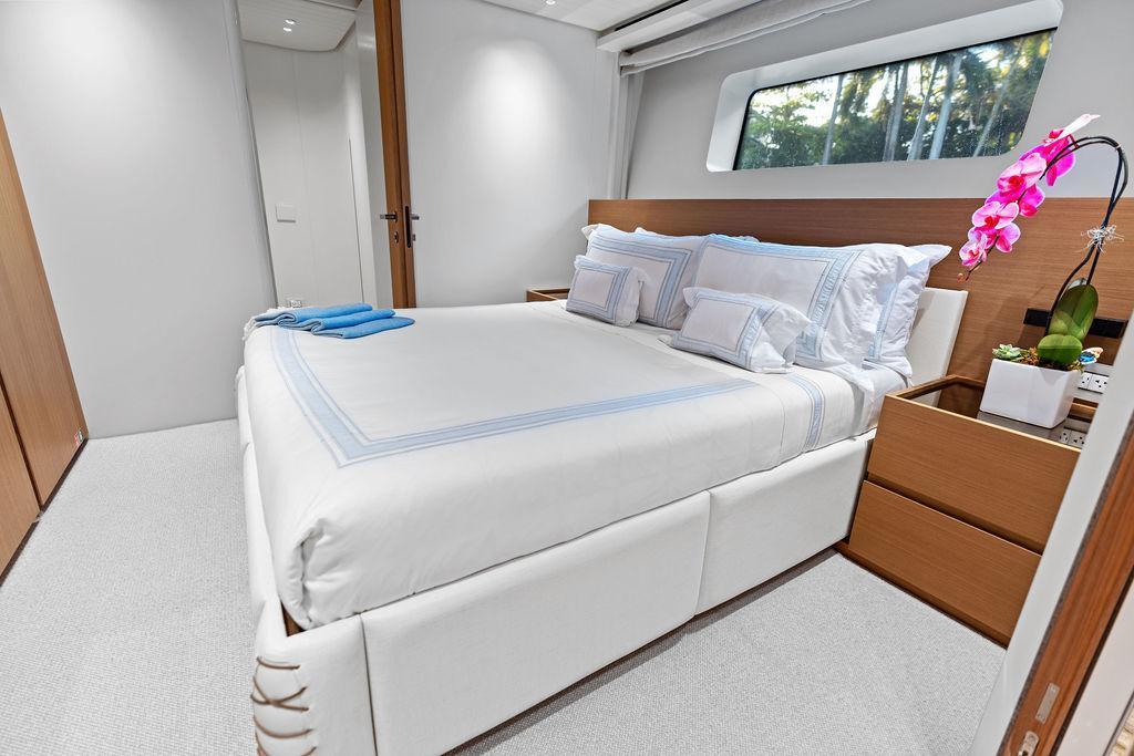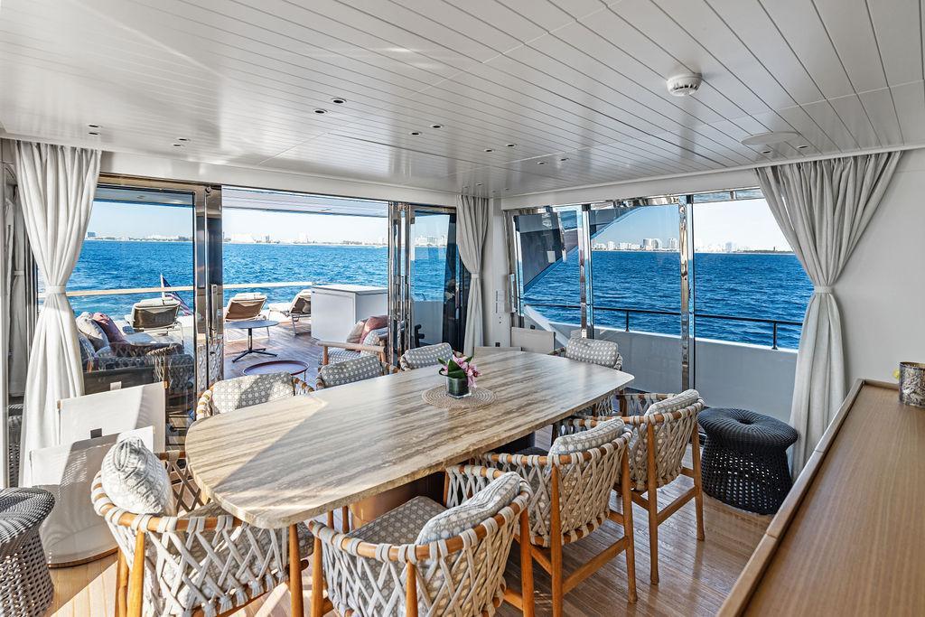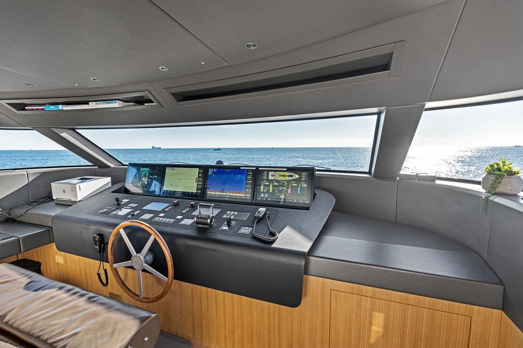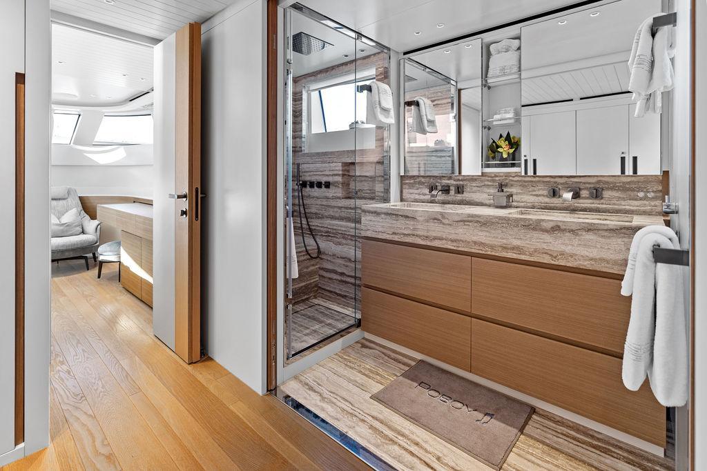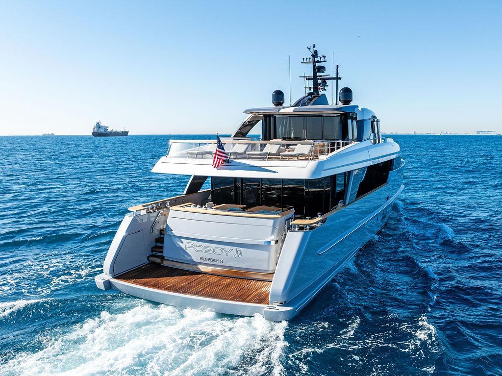 POBOY is a “like-new” 2021 tri-deck motoryacht delivered by Sanlorenzo and now recently refitted and painted in 2025. Top speed of 17 knots and comfortable cruising speed of 12 to 14 knots delivered by her CAT C18 engines with under 1700 hours.POBOY’s elegant layout and interior was the creative and masterful design of Marty Lowe Interiors. It showcases a blend of style and comfort afloat. This layout includes a main salon with a walk-up bar, powder room on the main deck and master suite with ensuite bath on the main deck.The lower deck incorporates three ensuite cabins including a full-beam VIP forward and two double cabins. The upper bridge deck has a dining area, alfresco, with sliding doors to aft and side decks. Forward of the wheelhouse there is a hot tub and additional forward seating. The sundeck has bar/grill along with seating and lounging.