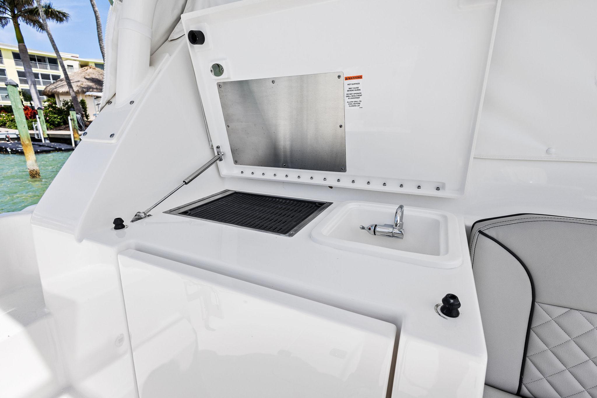 - Stainless Steel Sink with Cutting Board Cover, Overboard Drain and Stainless Clad Composite Thru Hull Fitting