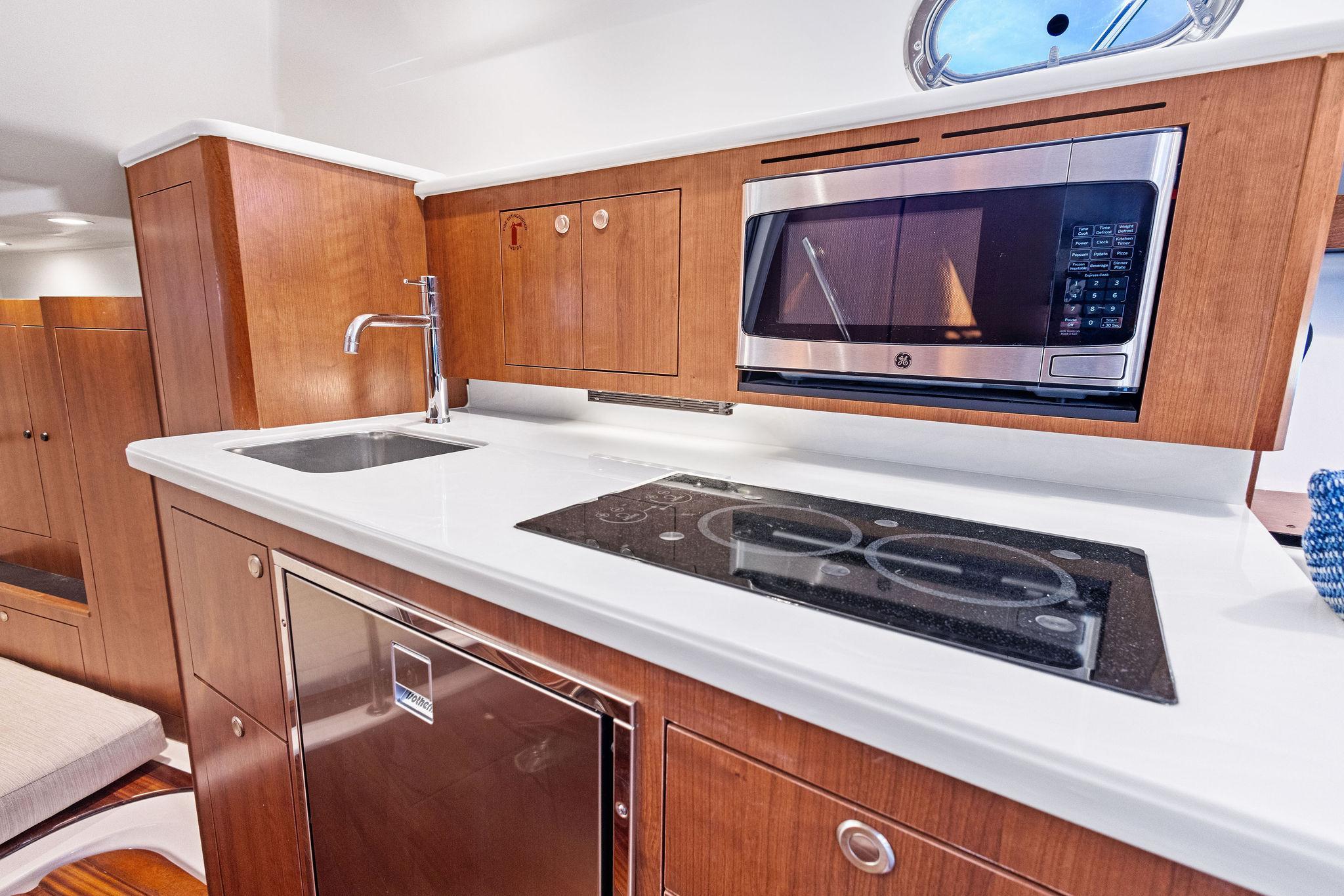 - Corian® Galley Counter Top with Backsplash and LED Cabinet Surface Lighting
