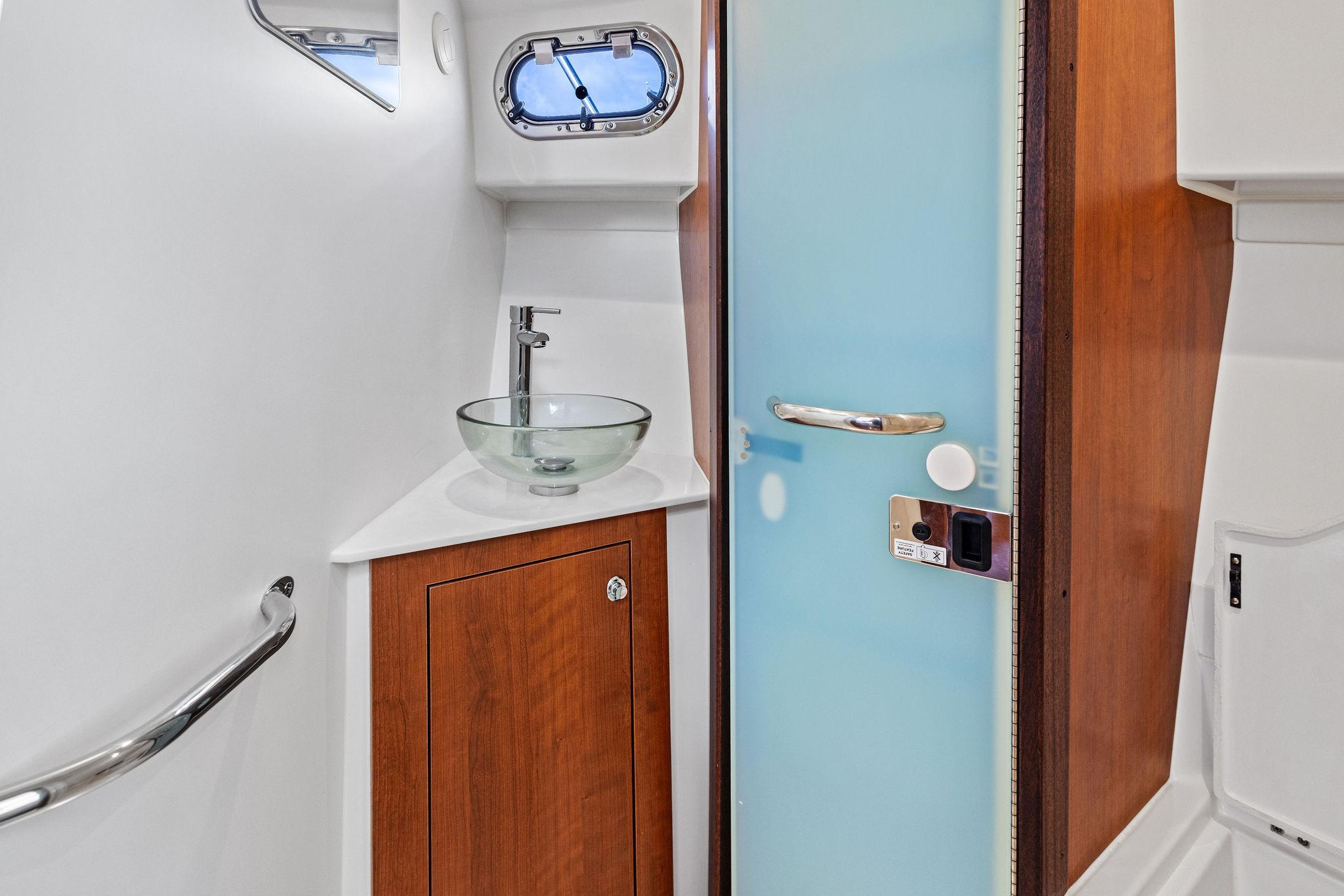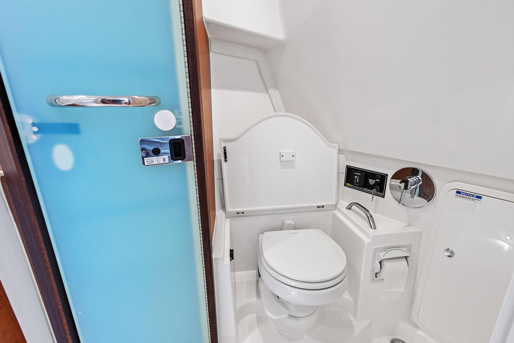 - Fiberglass Enclosed Head Compartment with Non-Skid Pattern Area